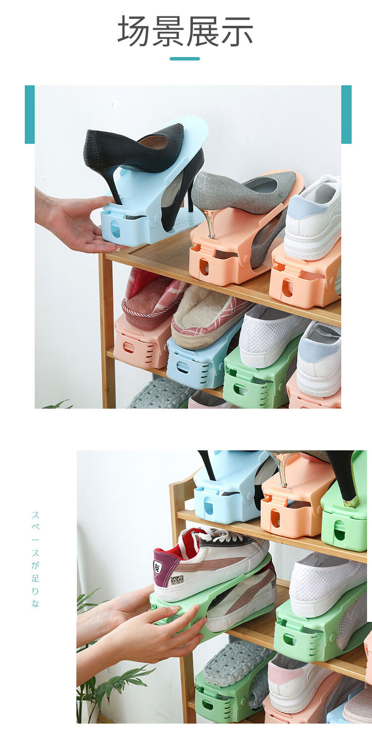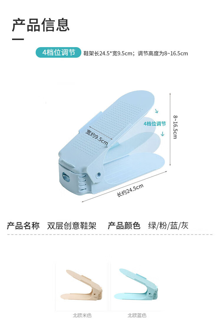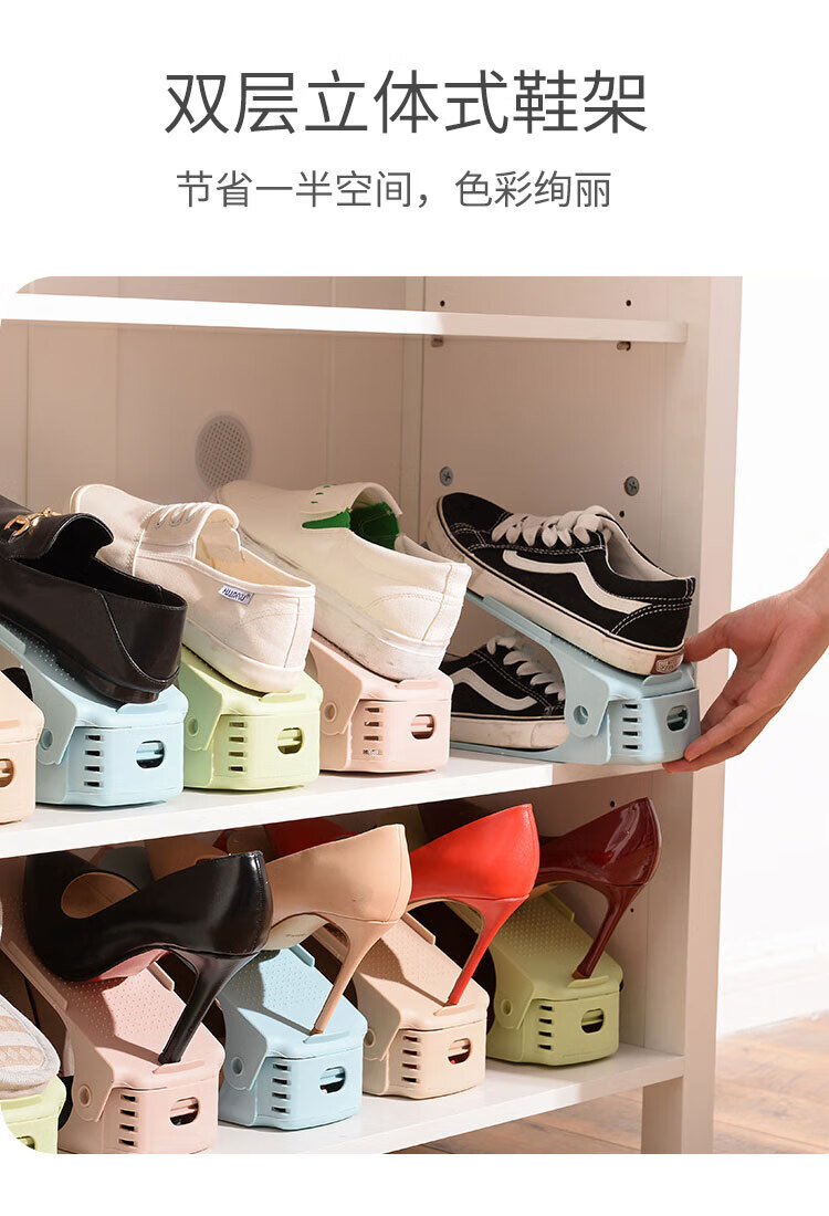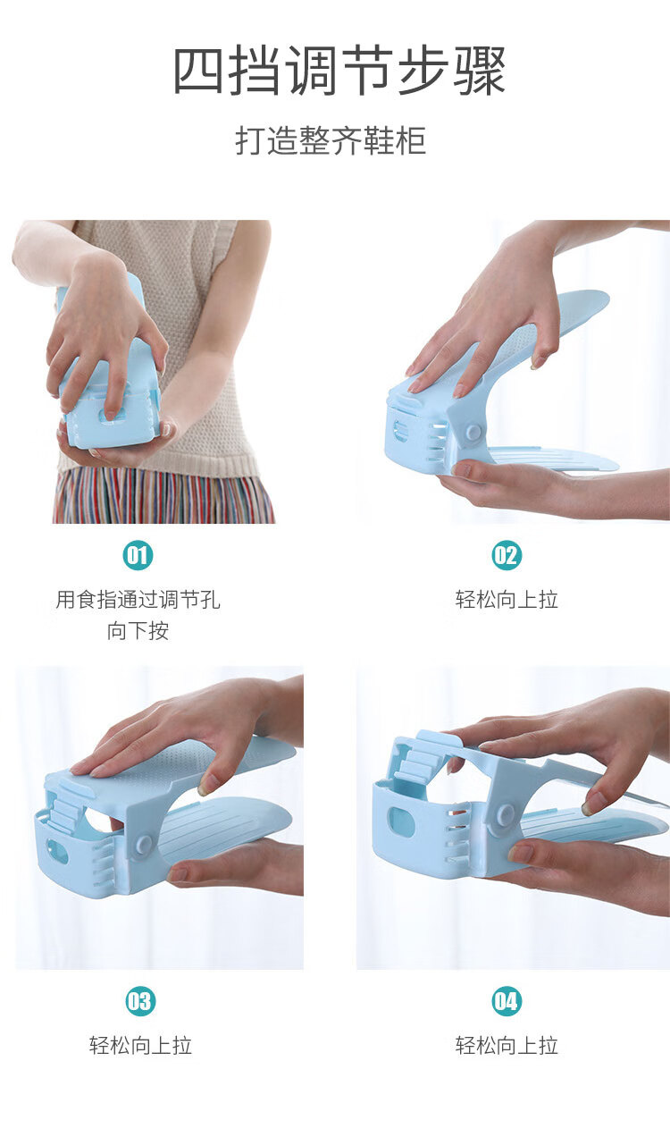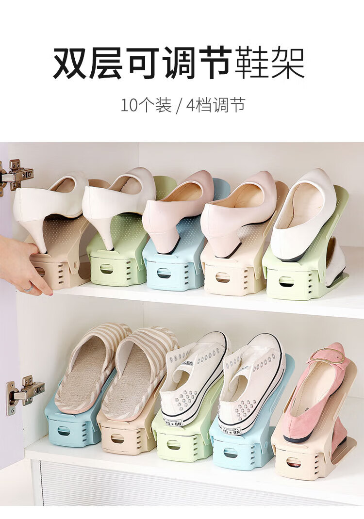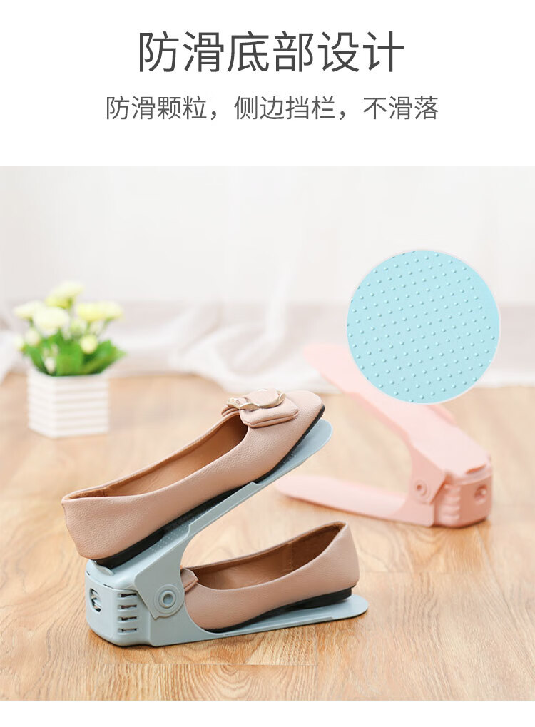 百易特鞋子收纳架四档可调节上下双层鞋托家用宿舍鞋柜置物鞋架 灰色【3个装】放6只鞋子