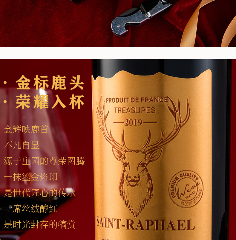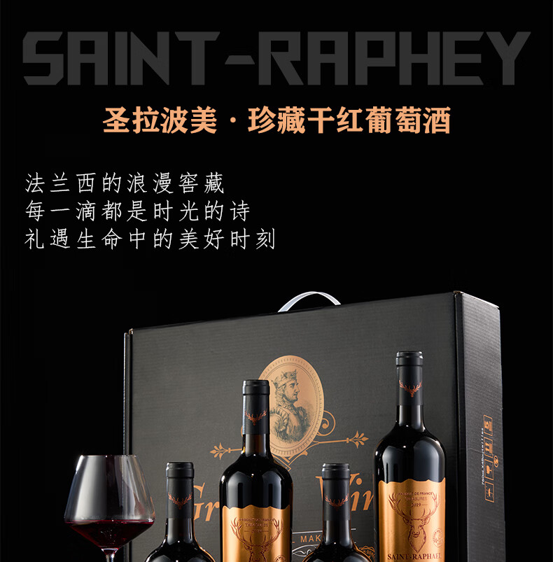 圣拉波美 SAINT-RAPHEY干红葡萄酒15度礼盒装法国原酒正品礼盒送礼 750ml*2支+手提袋