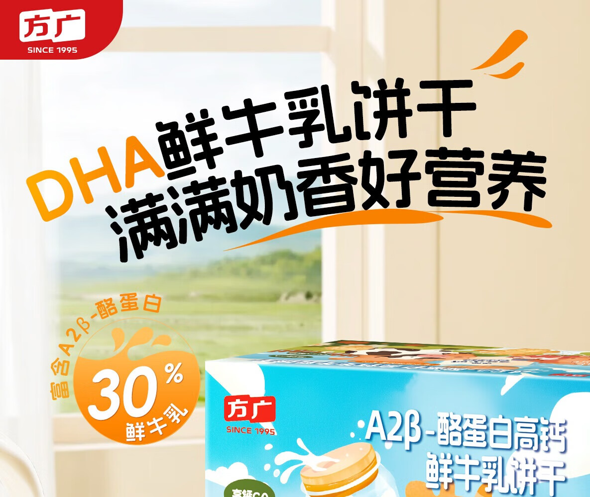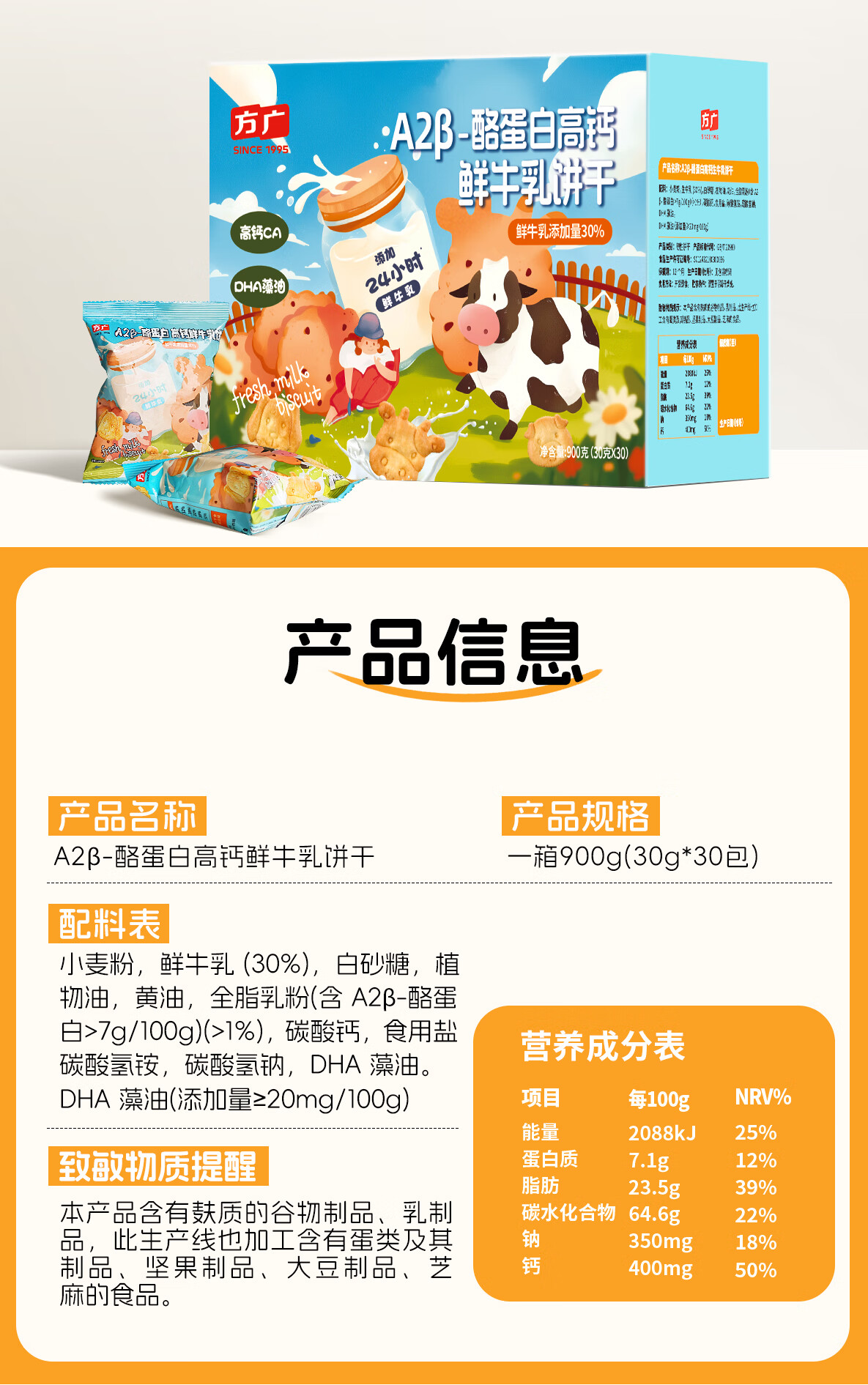 方广A2β-酪蛋白牛乳饼干900g儿童磨牙零食0反式脂肪酸鲜牛乳含量30% A2β-酪蛋白牛乳饼干900g