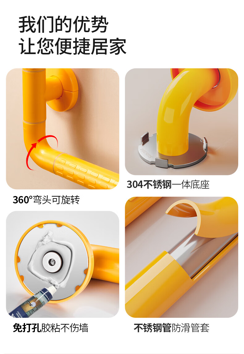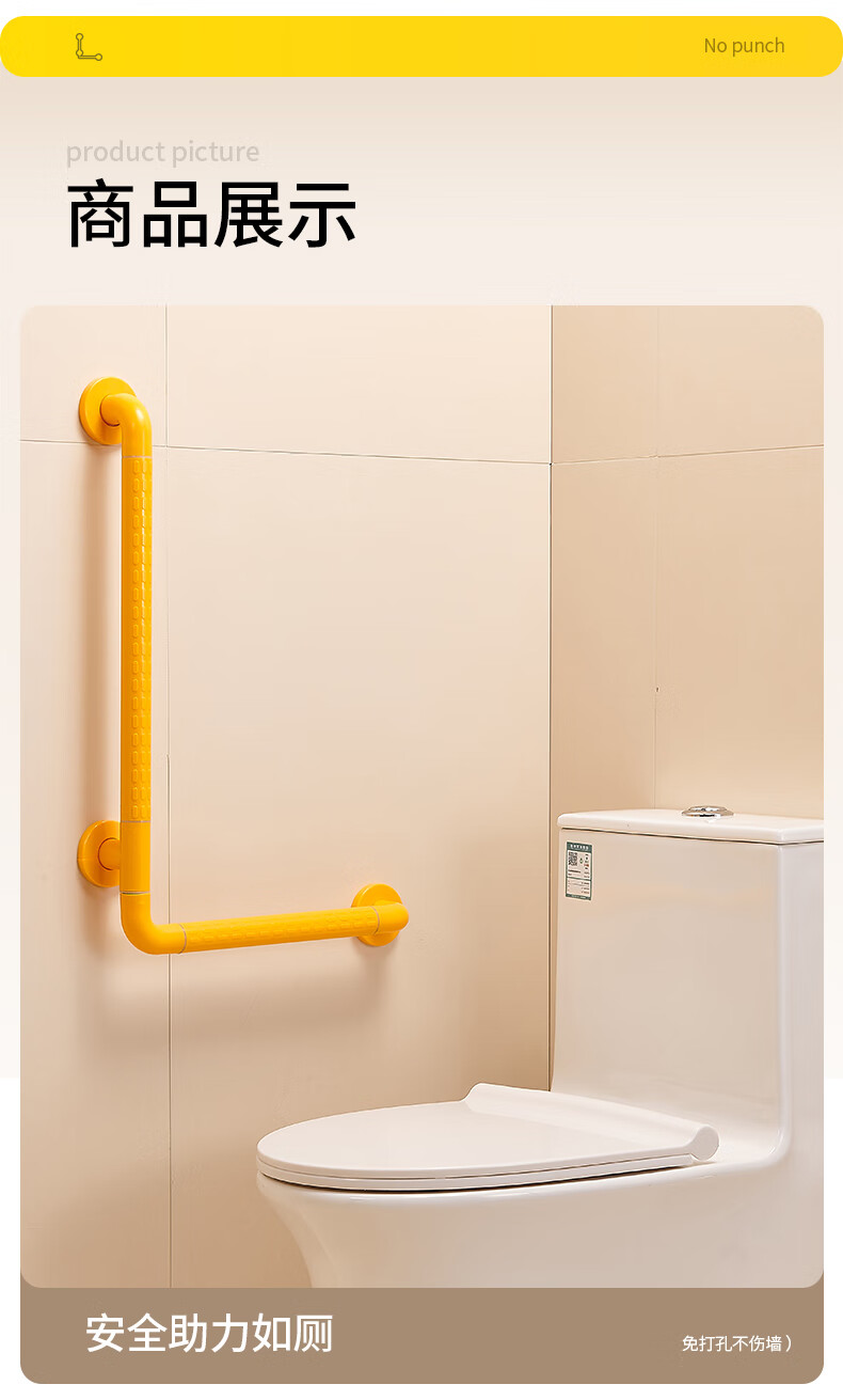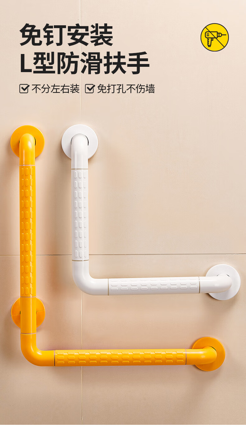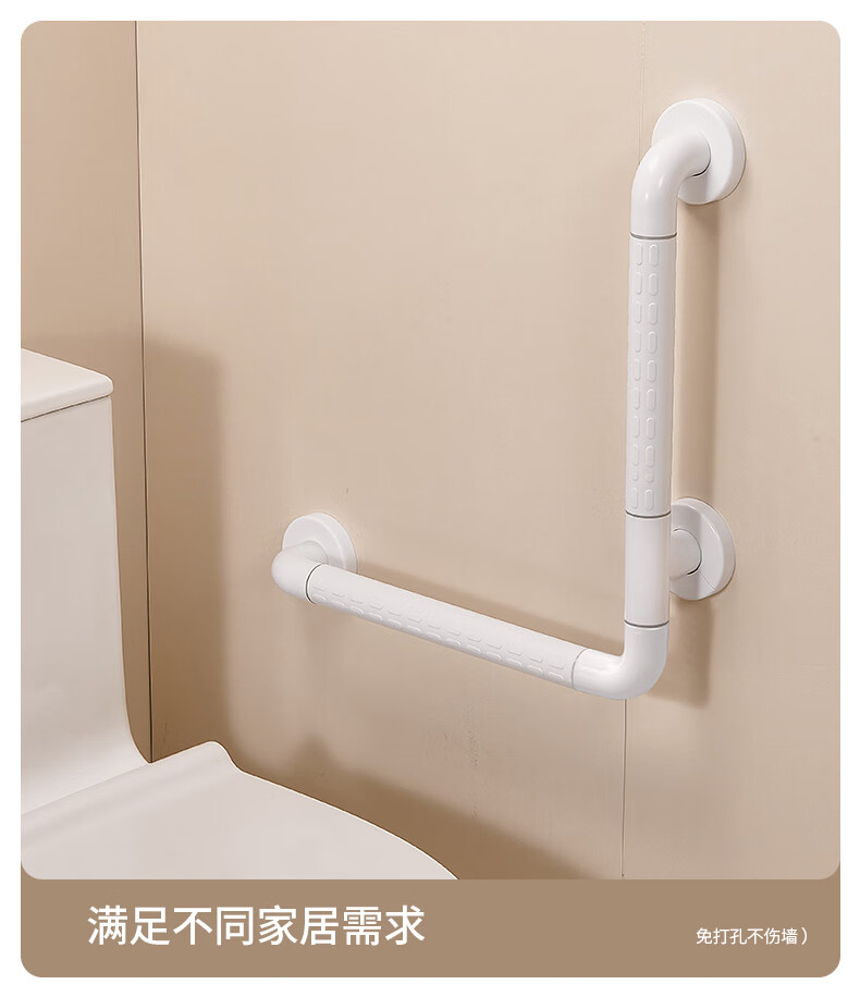 家文化浴室不锈钢扶手卫生间厕所免打孔把手老年人安全防滑马桶栏杆拉手 【免打孔安装】35cm*35cm-白色