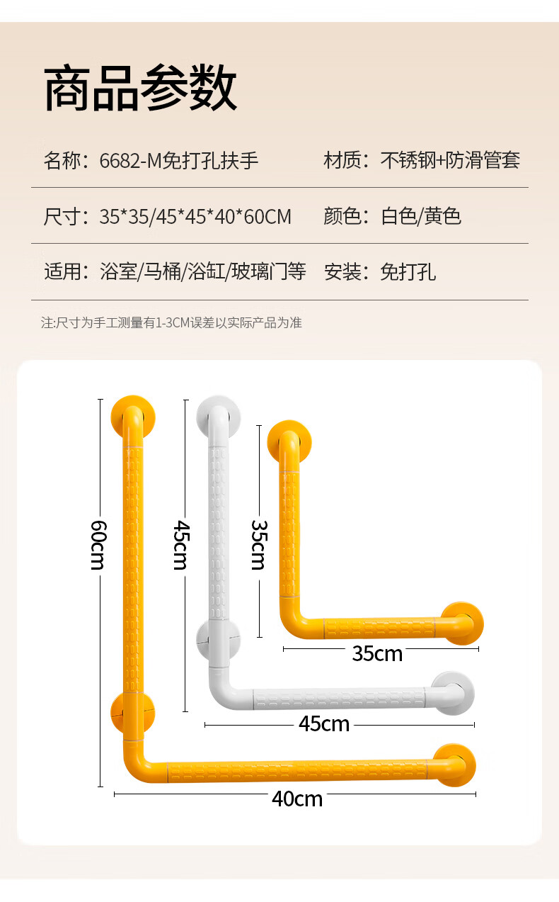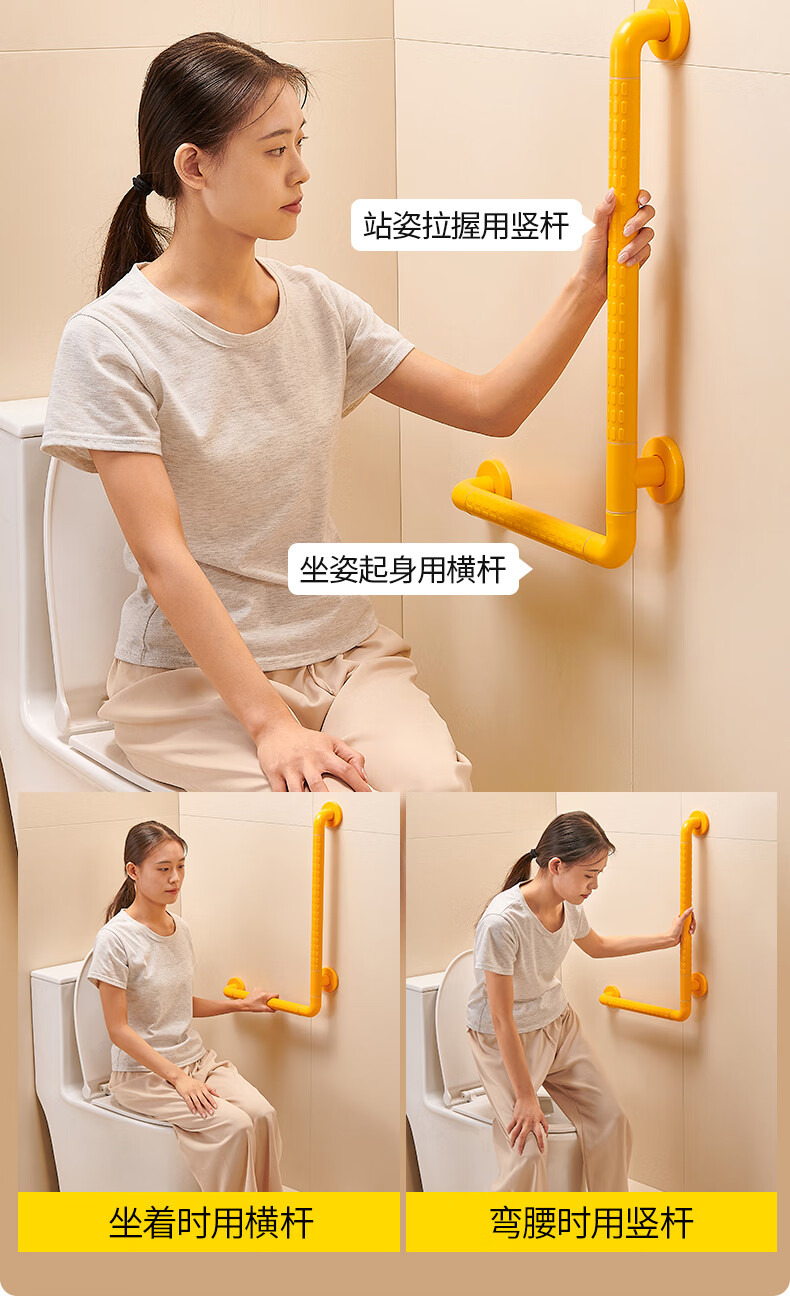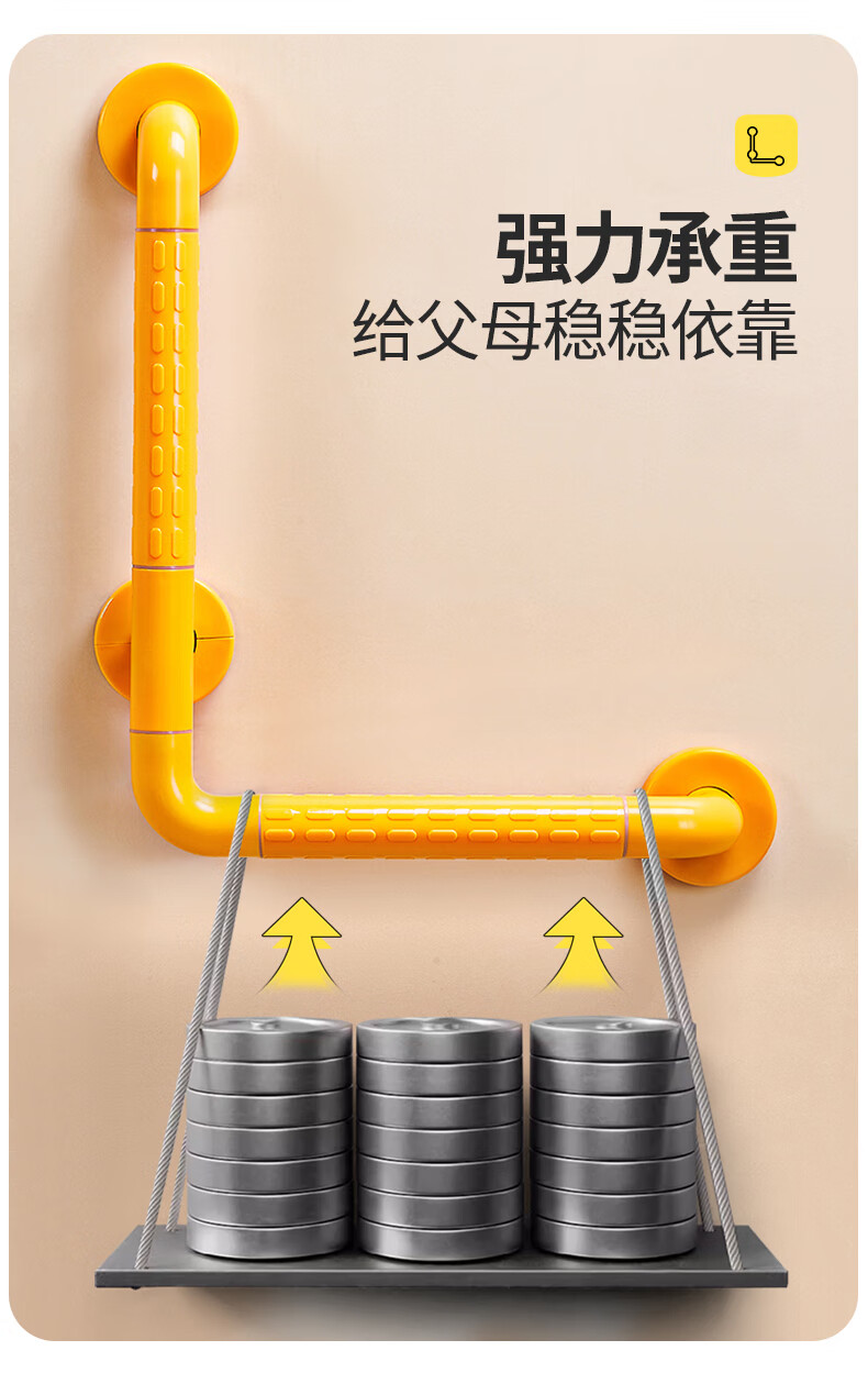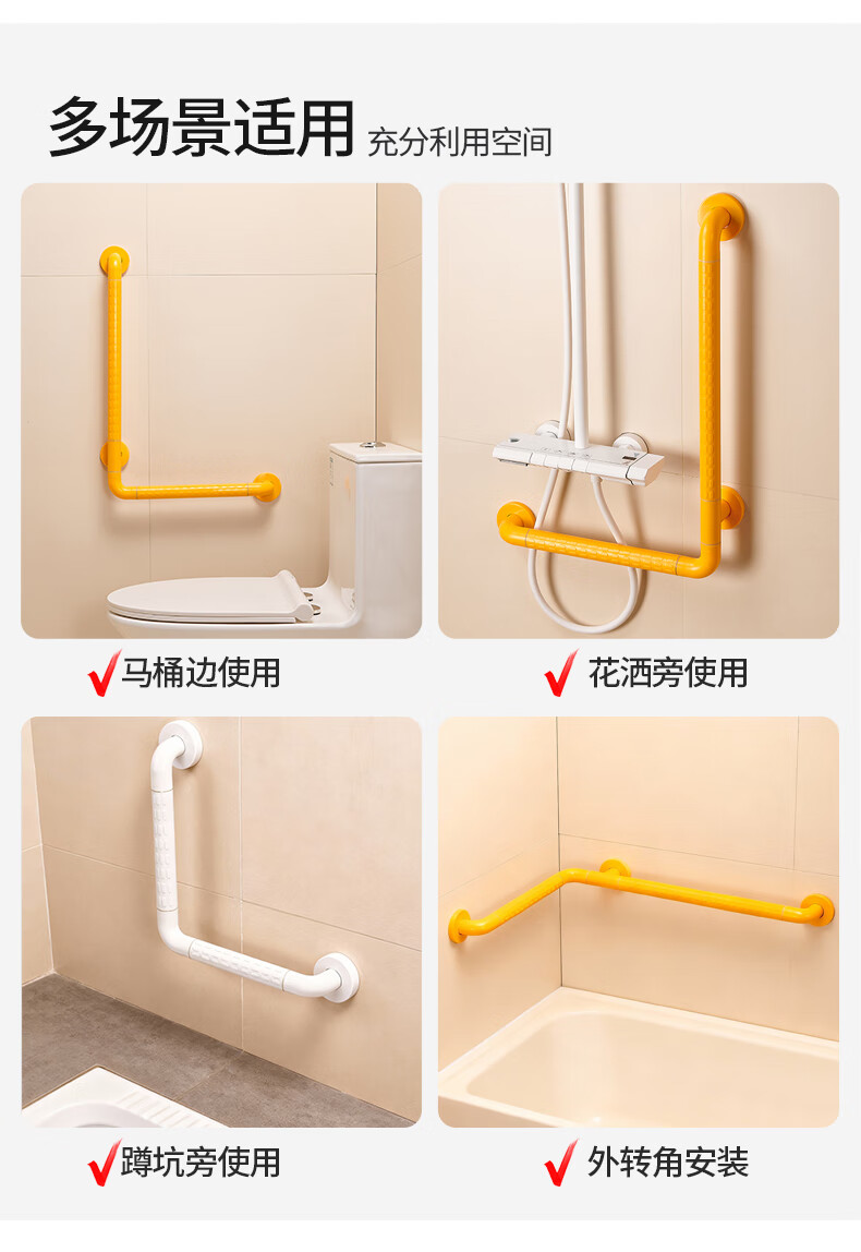 家文化浴室不锈钢扶手卫生间厕所免打孔把手老年人安全防滑马桶栏杆拉手 【免打孔安装】35cm*35cm-白色