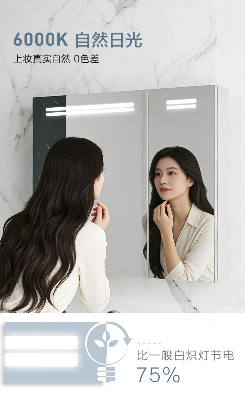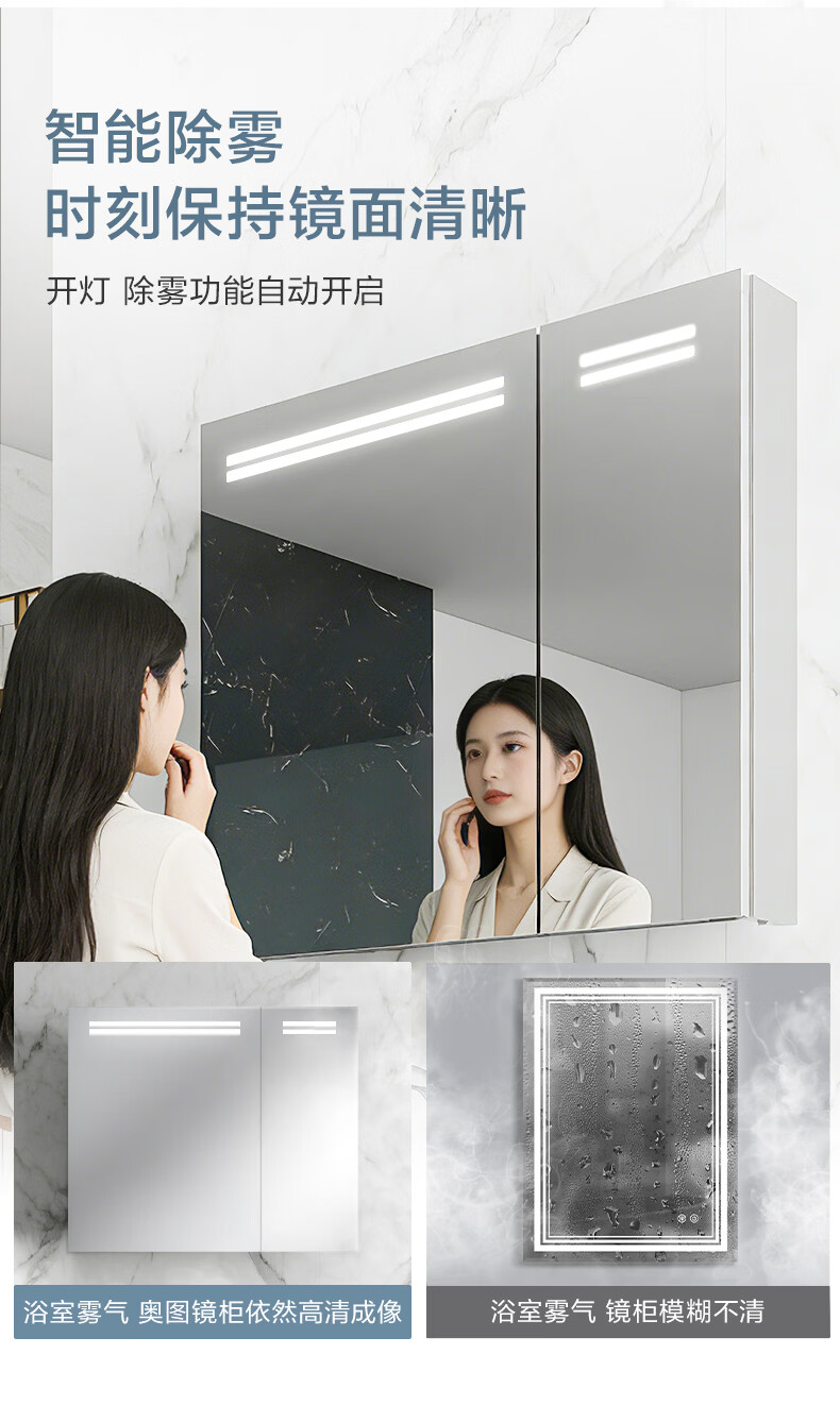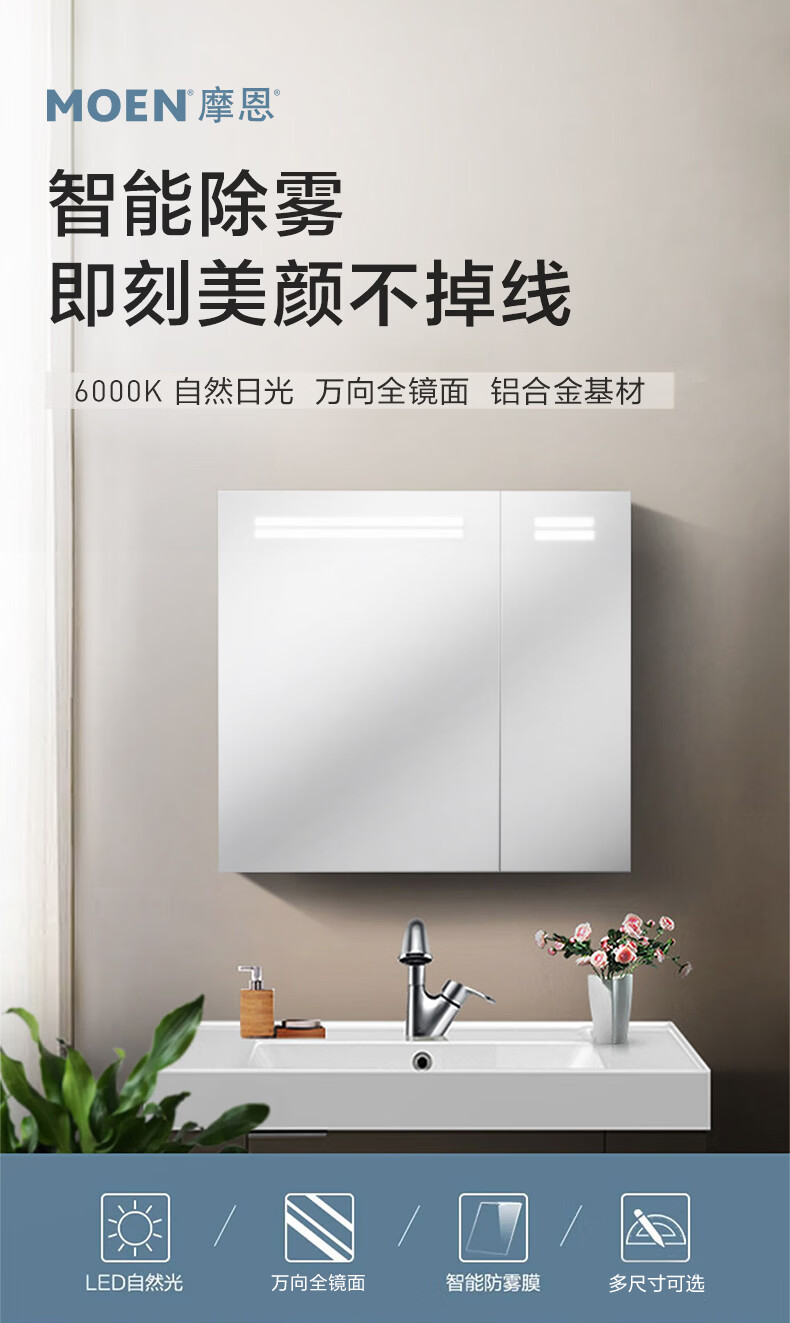 摩恩(MOEN)奥图系列浴室镜柜镜子卫浴挂墙式收纳一体柜带灯智能除雾自然美光 奥图500镜柜(亚银)(自然白光)