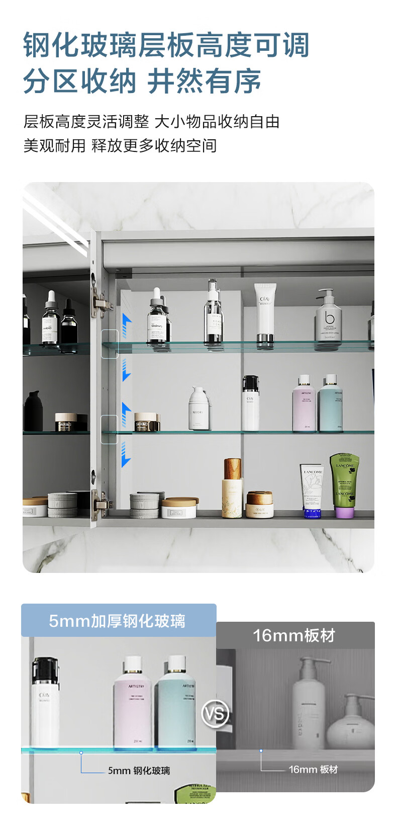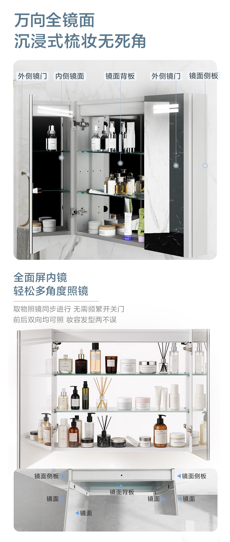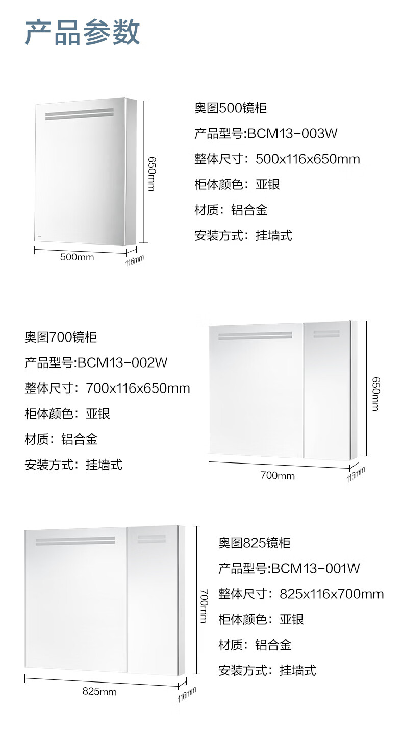 摩恩(MOEN)奥图系列浴室镜柜镜子卫浴挂墙式收纳一体柜带灯智能除雾自然美光 奥图500镜柜(亚银)(自然白光)