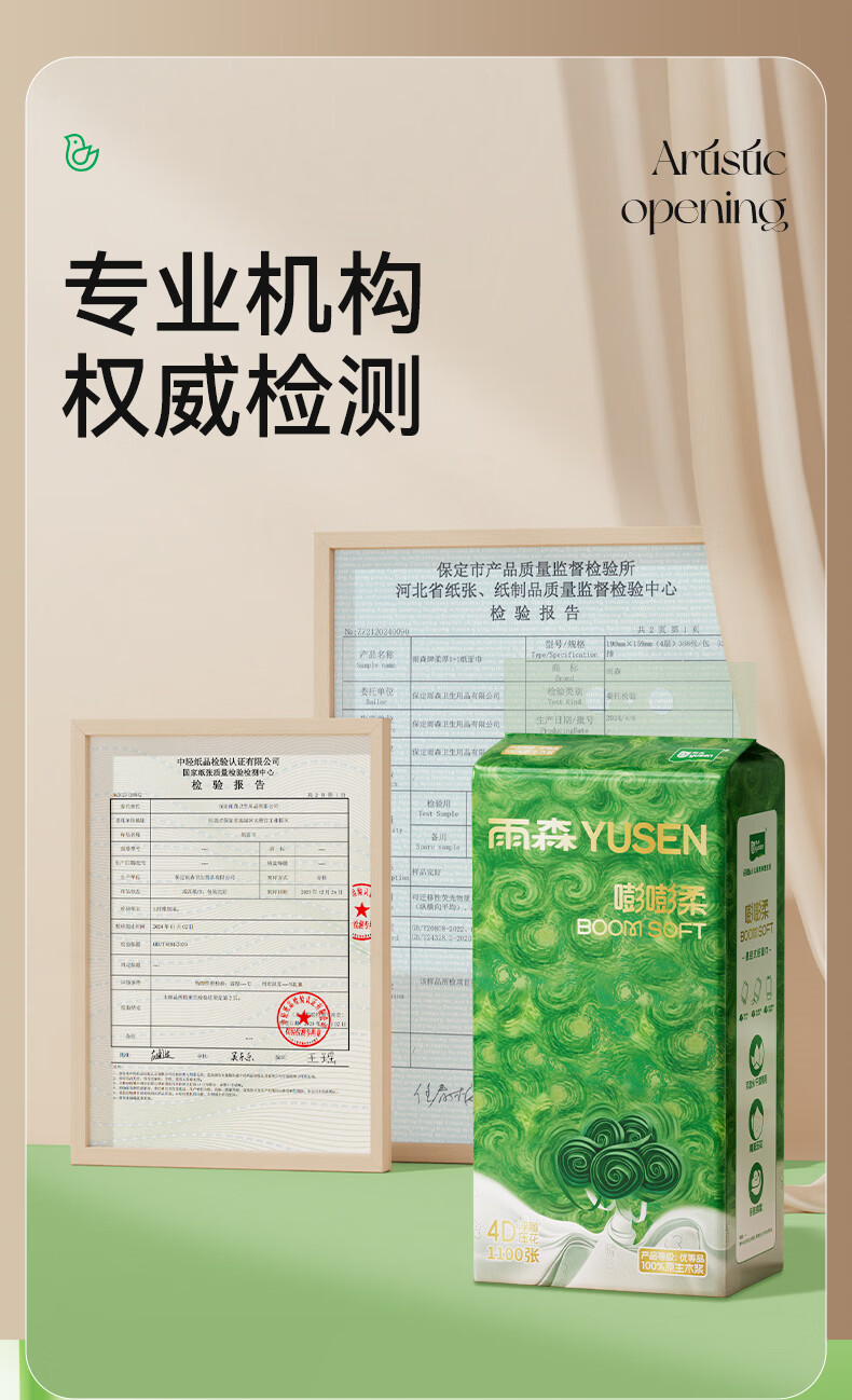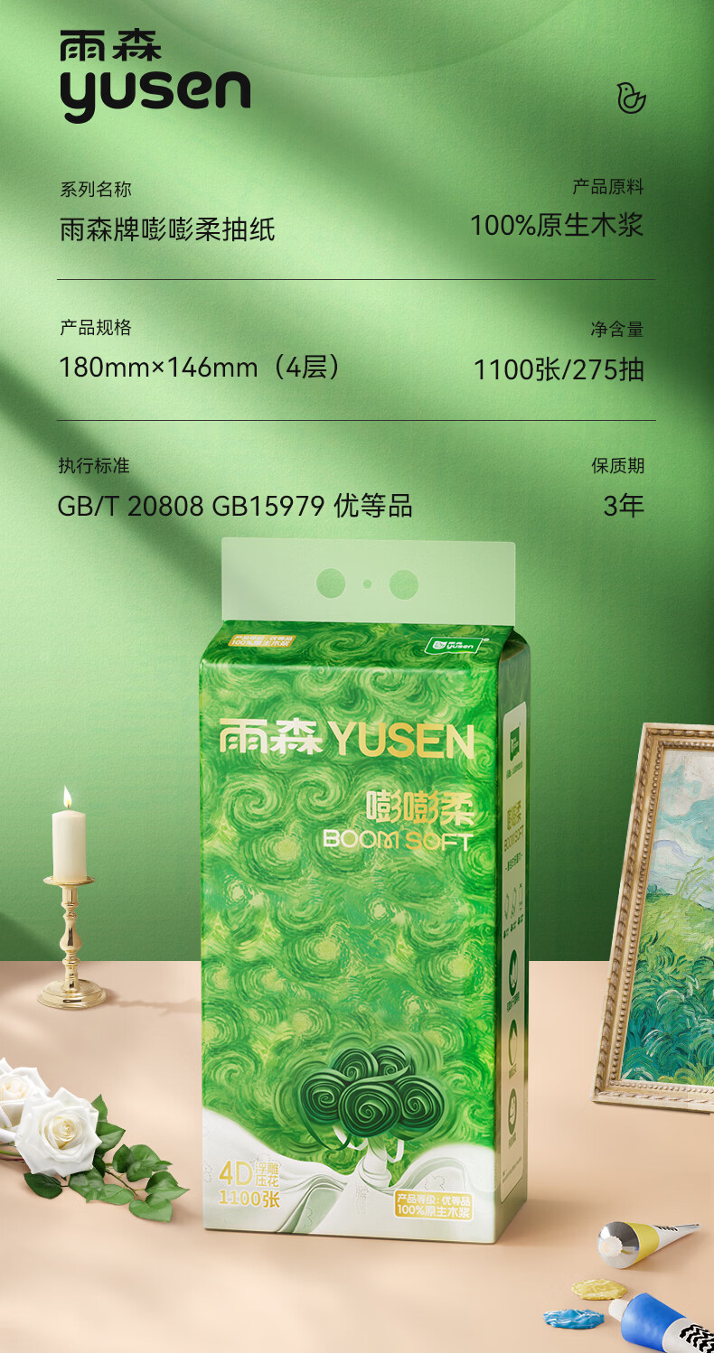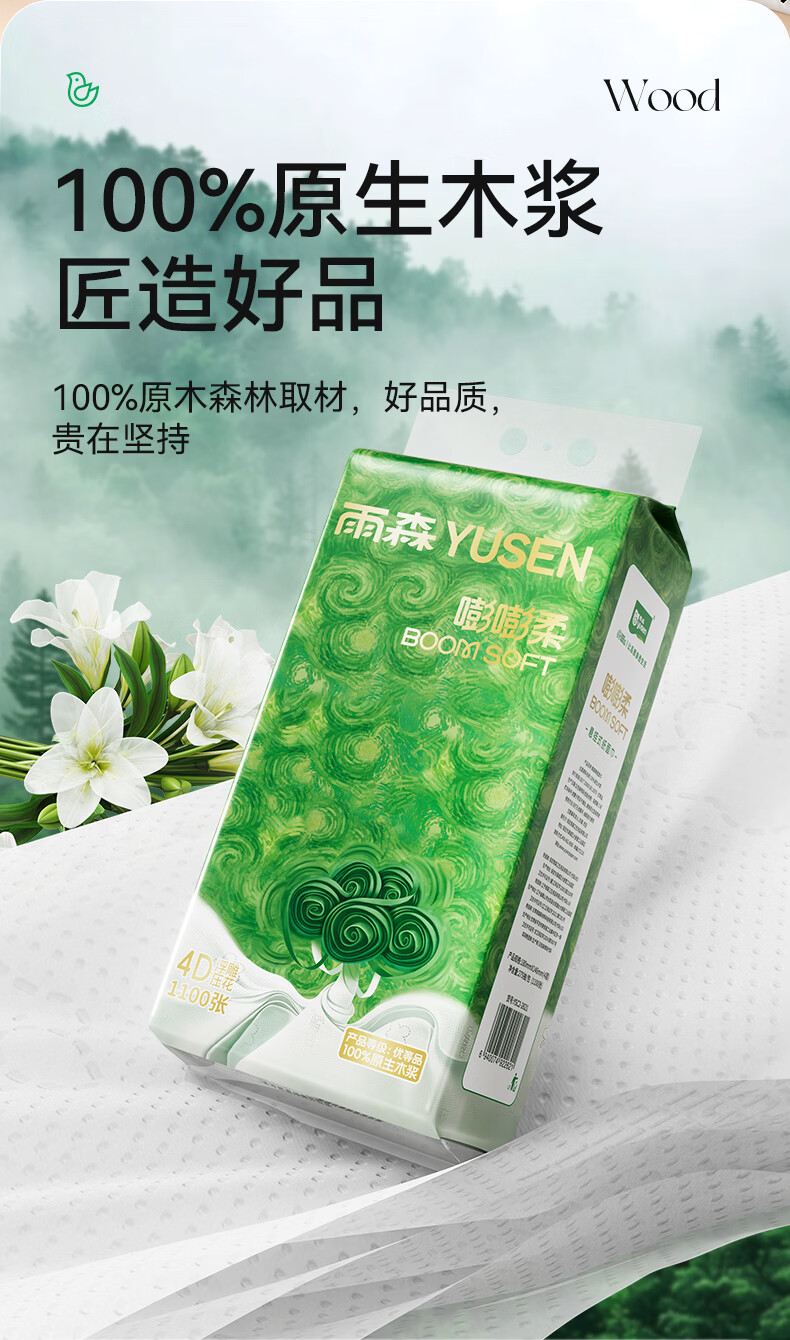 雨森悬挂抽纸4层1100张100%原生木浆纸巾家用纸抽宿舍面巾纸餐巾纸 1100张*6提