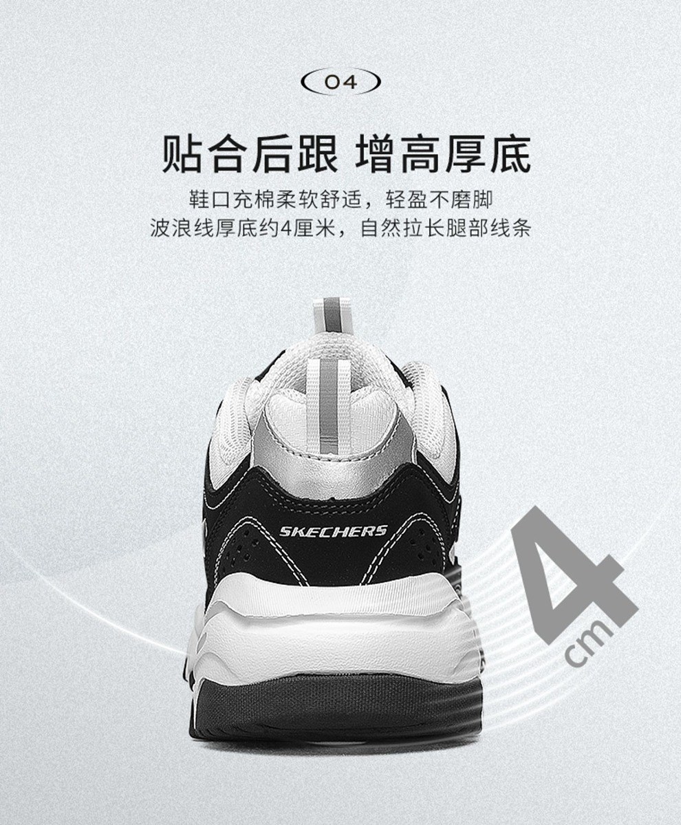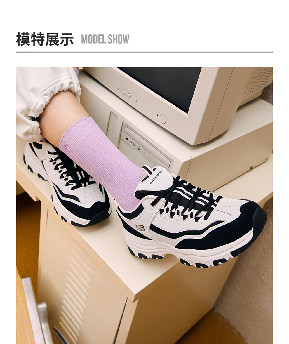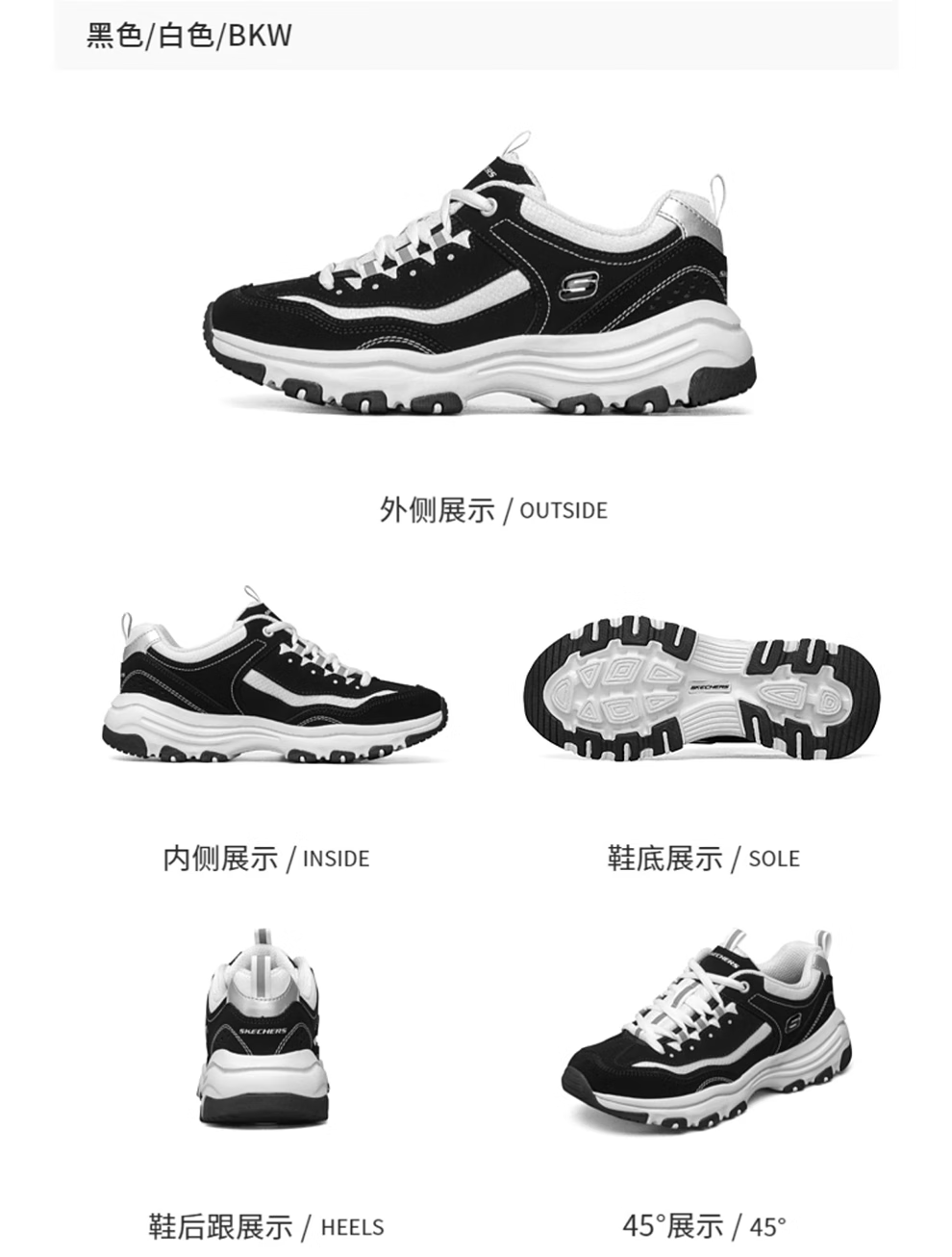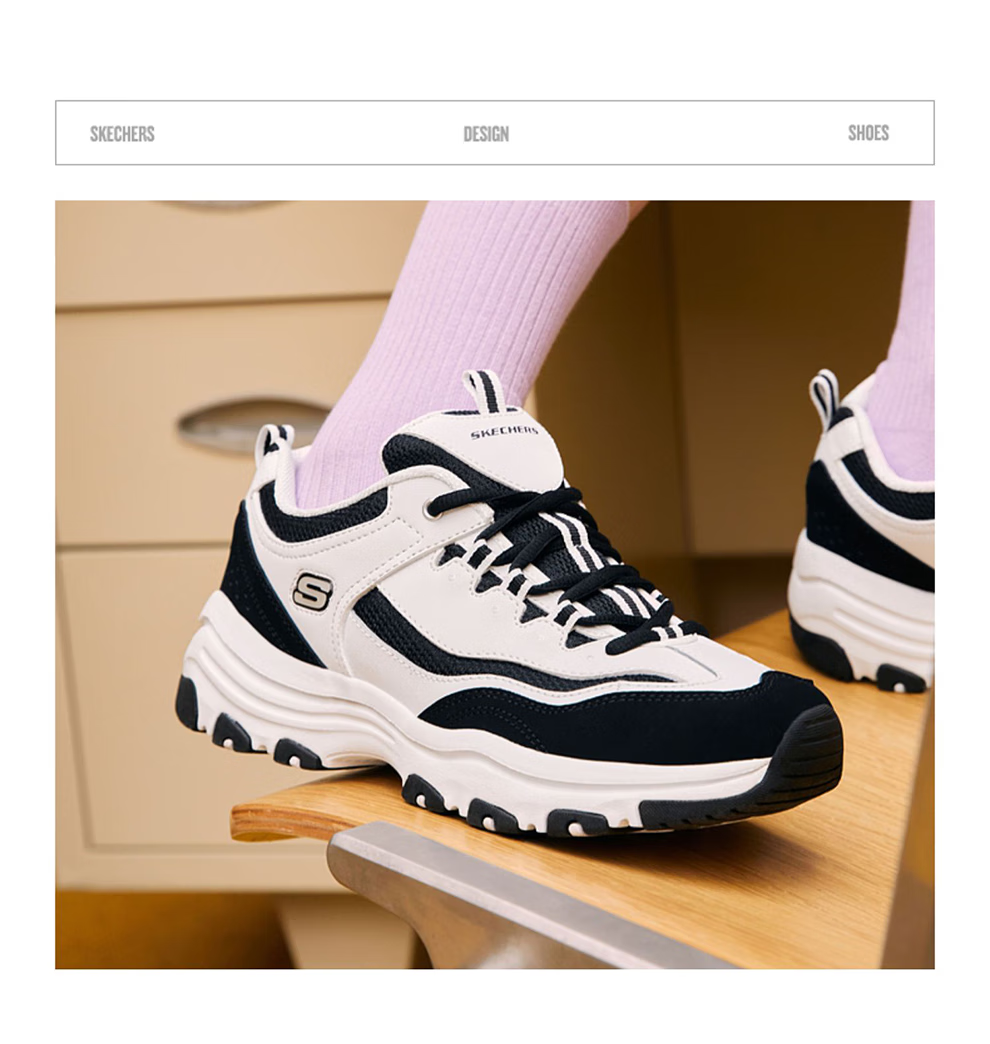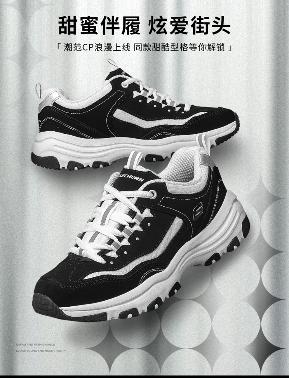 斯凯奇(Skechers)奥利奥熊猫鞋丨老爹鞋女经典黑白复古秋冬轻便潮流增高运动休闲鞋 【女款】黑色/白-BKW 39