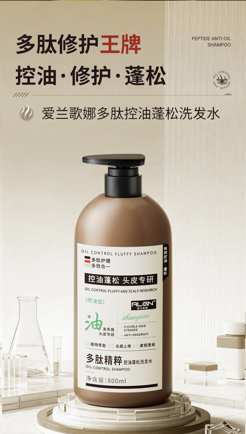 爱兰歌娜多肽洗发水控油去屑止痒持久蓬松柔顺留香男女士第洗头膏露金榜1 【柔顺蓬松】多肽蓬松洗发水800ml