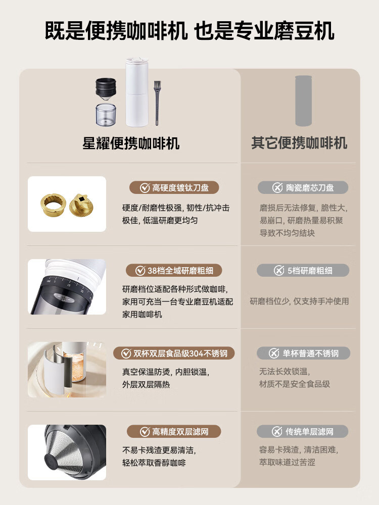 SCHNEIDER星耀便携式咖啡机家用小型半自动意式手冲咖啡滴滤一体电动磨豆机办公室户外旅行露营充电生日礼物 便携式咖啡机【镀钛刀盘】
