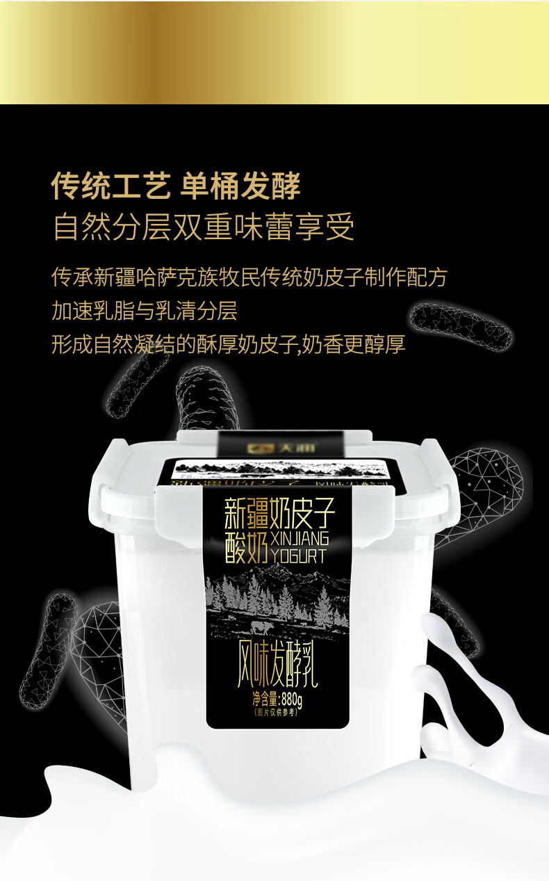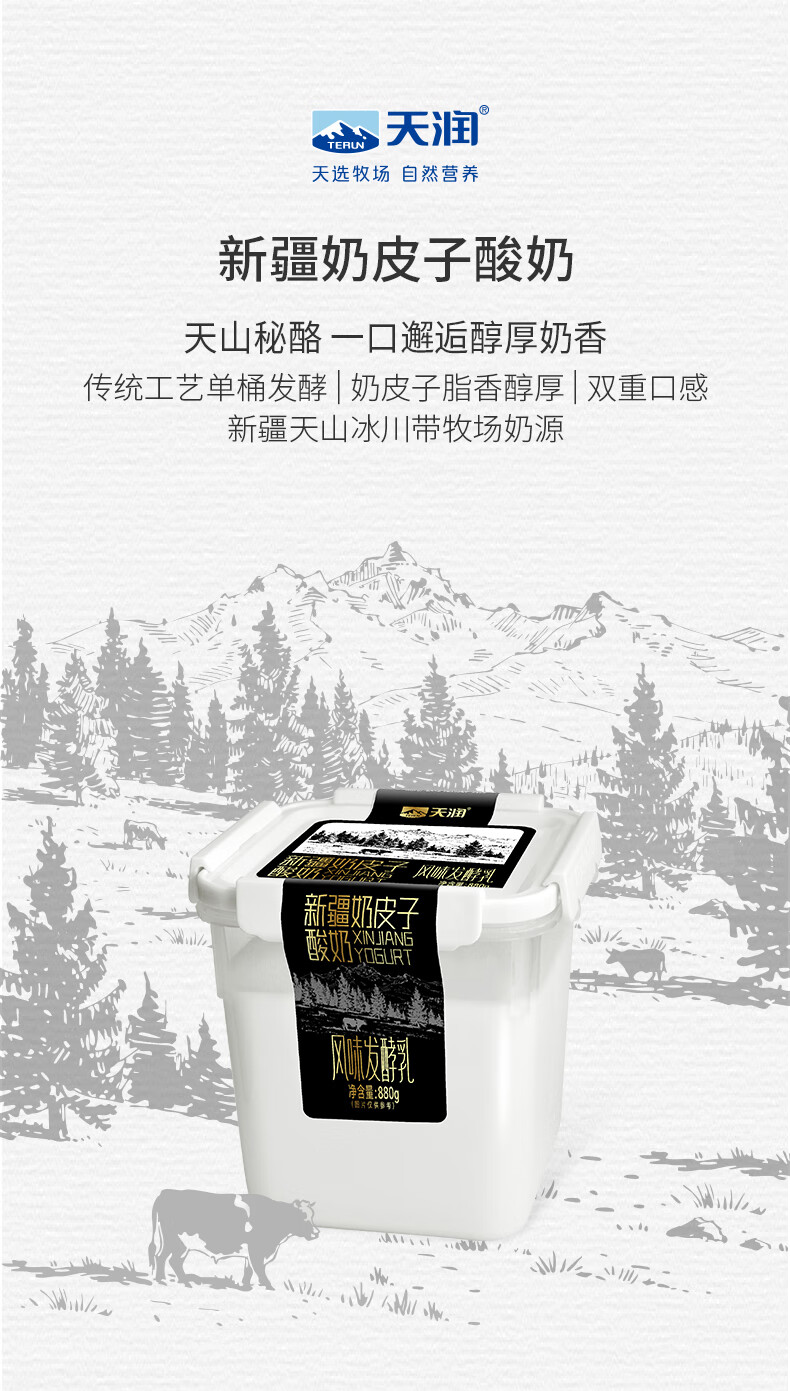 天润X PLUS会员联名款 新疆奶皮子桶装酸奶 低温风味发酵乳 880g*1桶