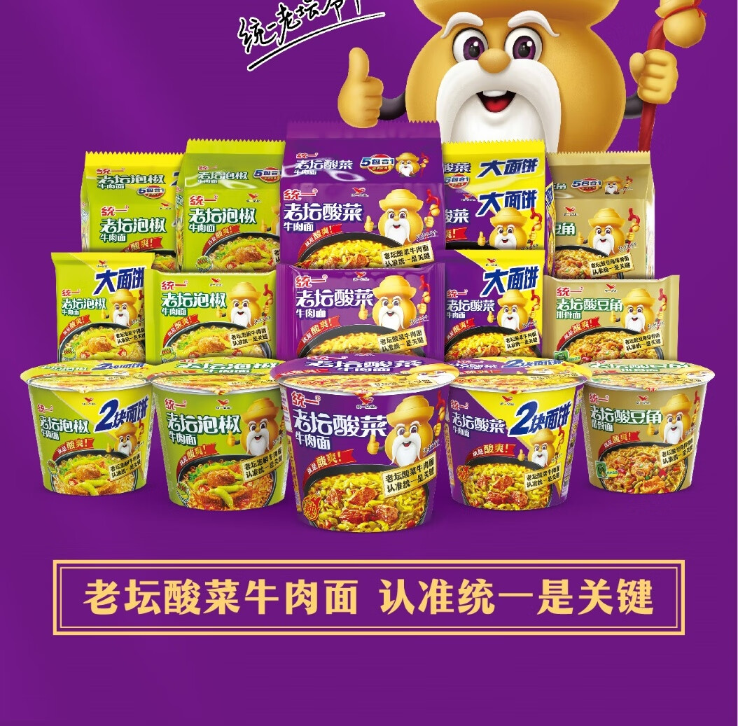 统一 老坛酸菜牛肉面 121g*5袋 真正老坛酸菜(新老包装随机发货)