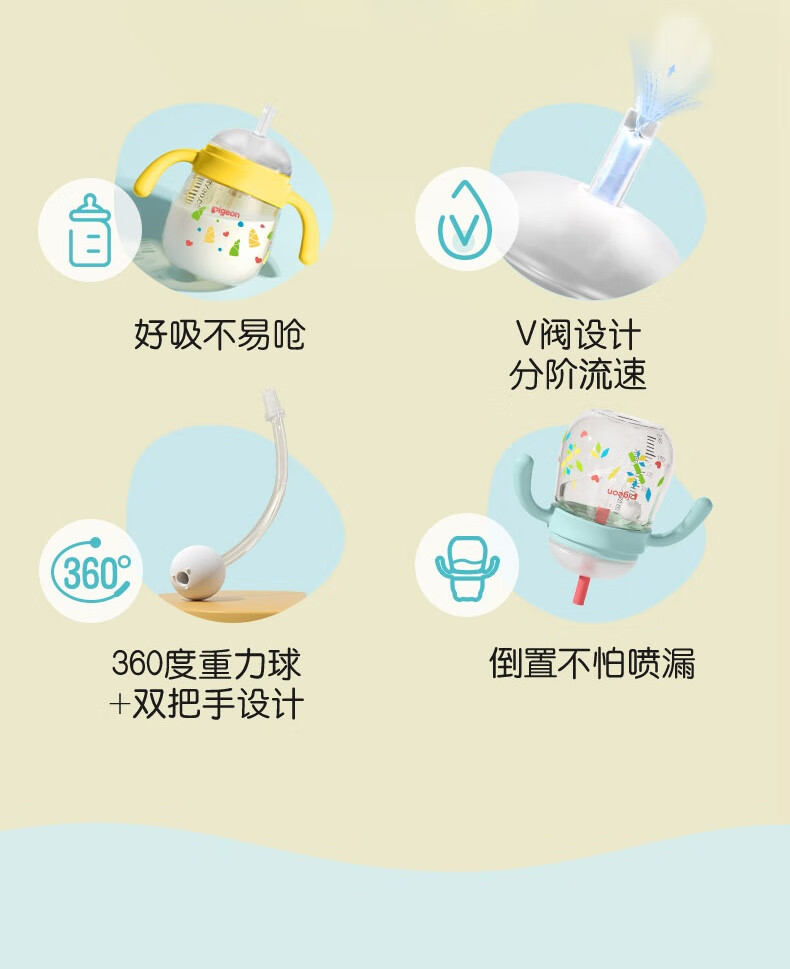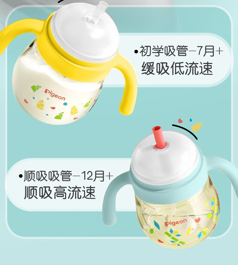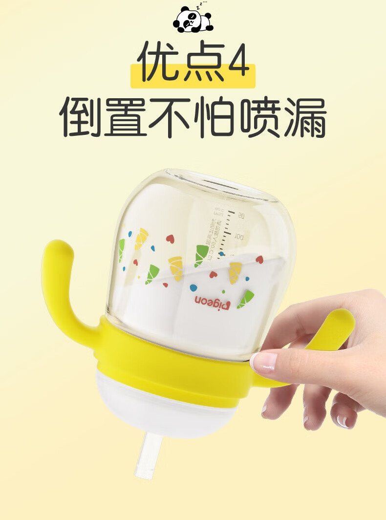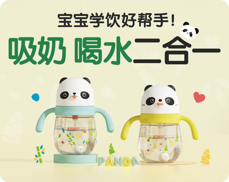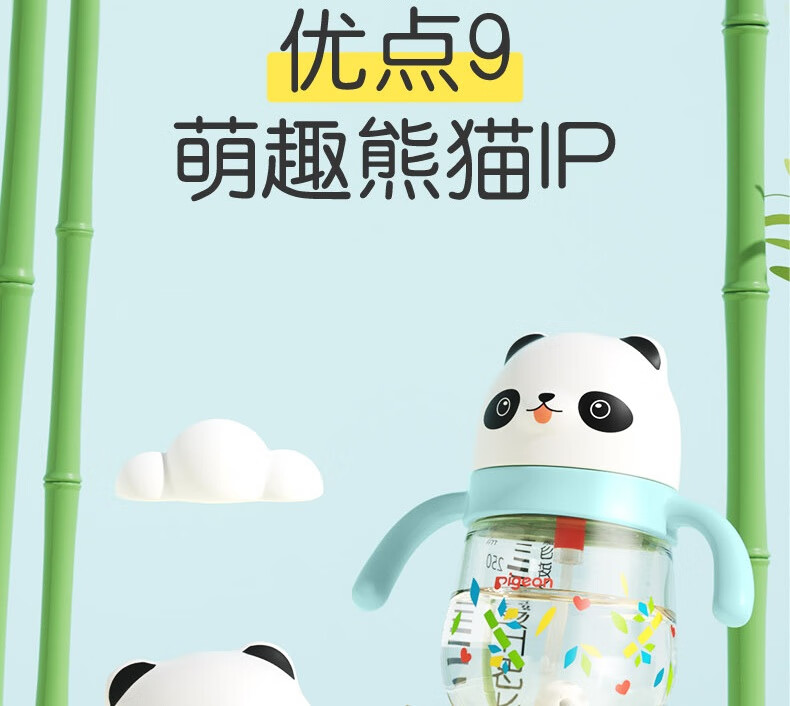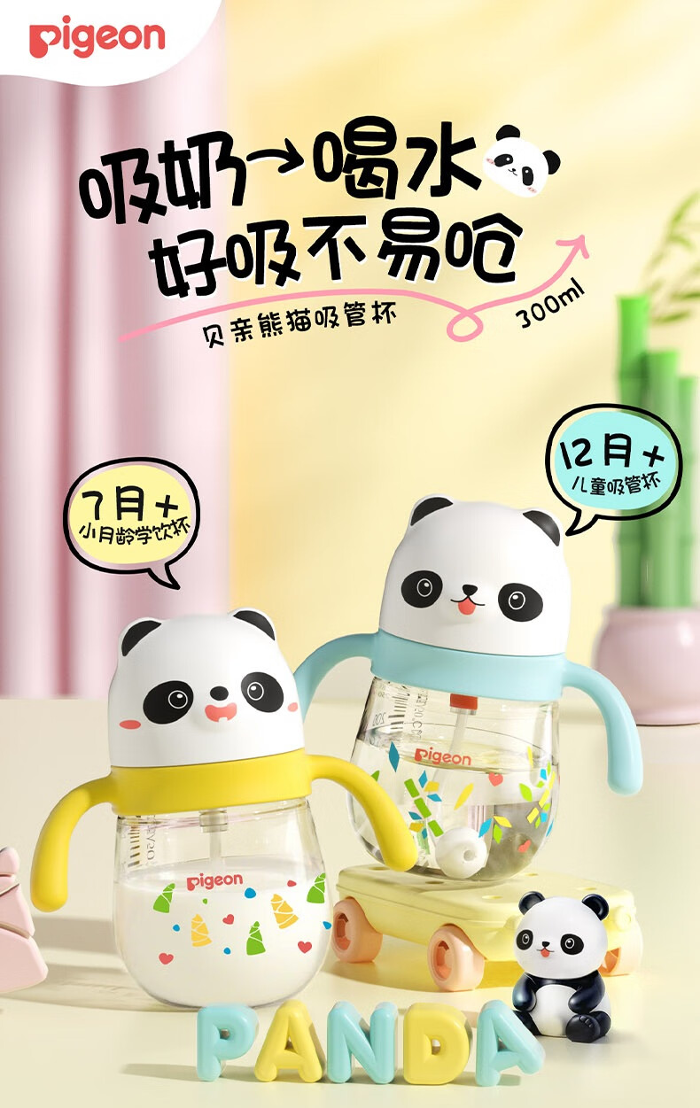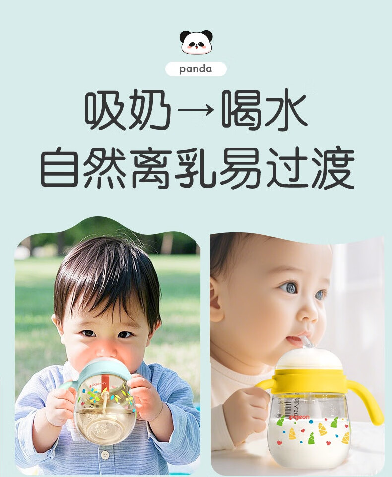 贝亲(Pigeon)熊猫小月龄防呛防漏喝水喝奶ppsu儿童学饮杯 300ml 7月+