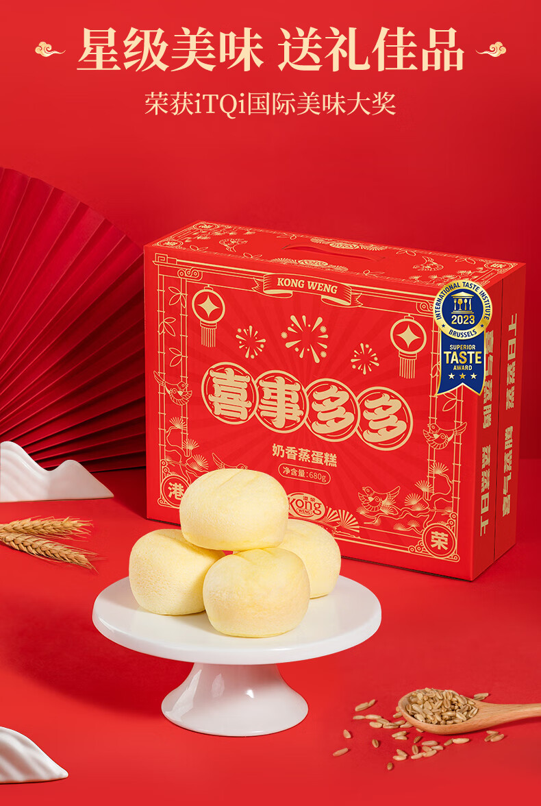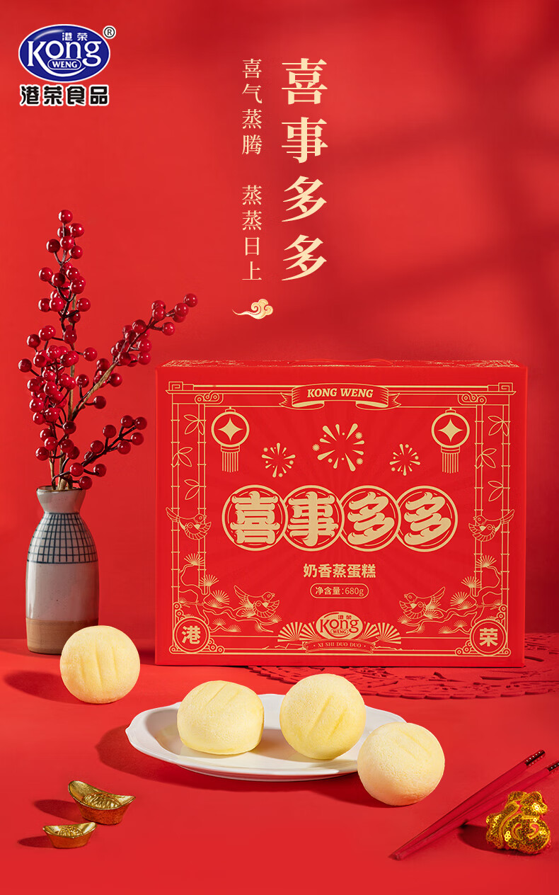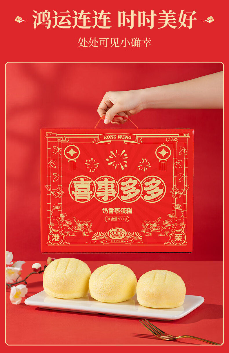 港荣蒸蛋糕点年货礼盒团购节日送礼休闲零食品早餐面包整箱办公室 喜多多礼盒*2箱共1360g