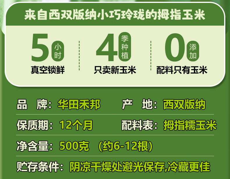 华田禾邦【新玉米】云南拇指玉米1斤(6-12根)儿童甜糯玉米棒真空直抽 早餐