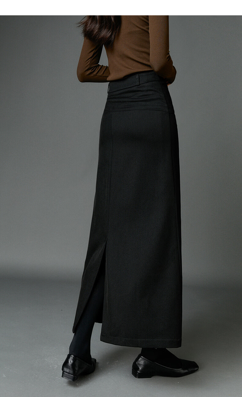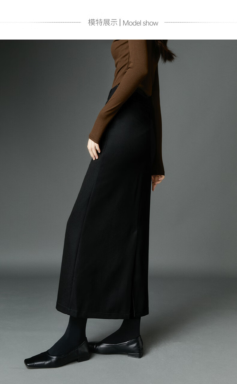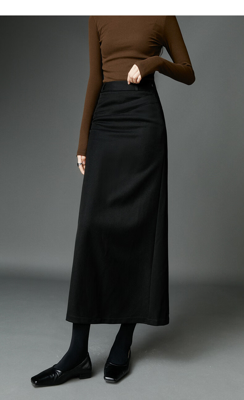 晚白【断码清仓】年秋季款时尚高腰直筒遮肉显瘦通勤减龄休闲半身裙 黑色 S