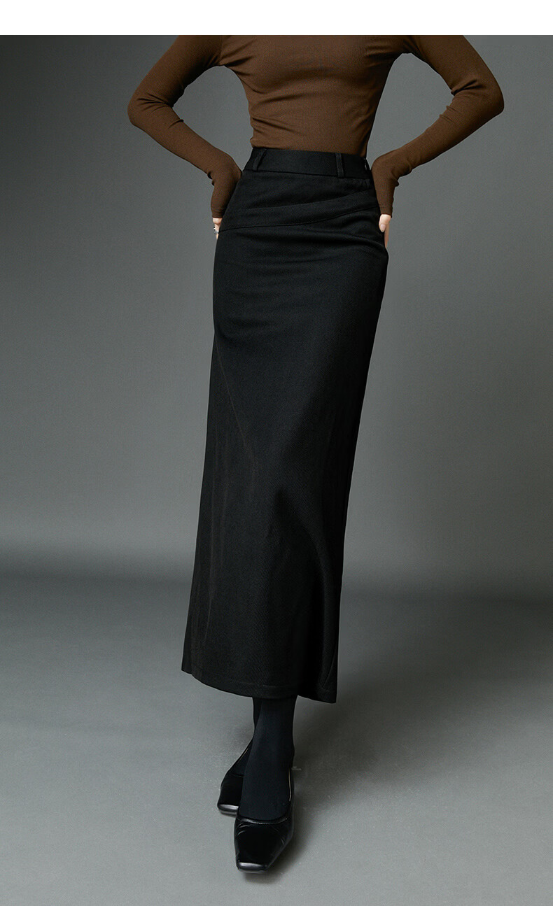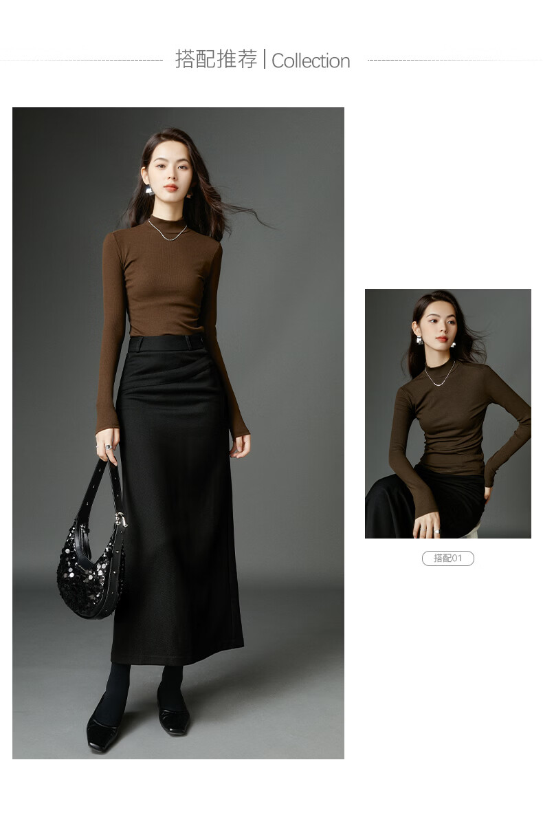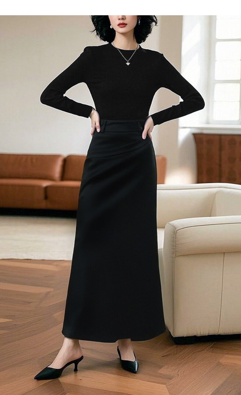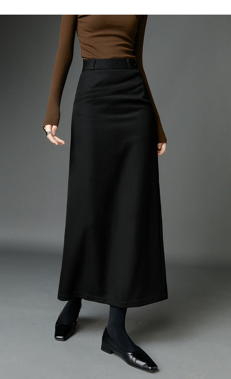 晚白【断码清仓】年秋季款时尚高腰直筒遮肉显瘦通勤减龄休闲半身裙 黑色 S