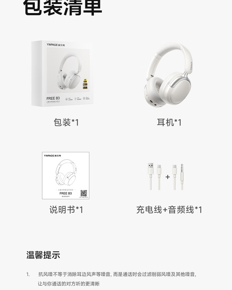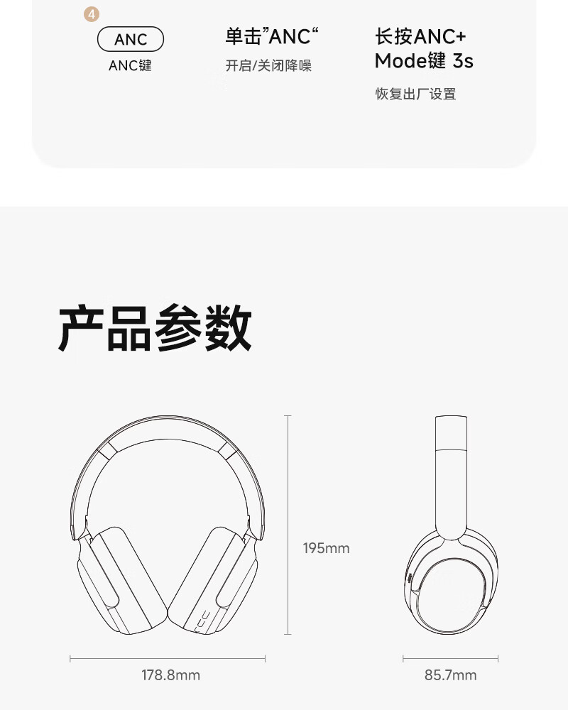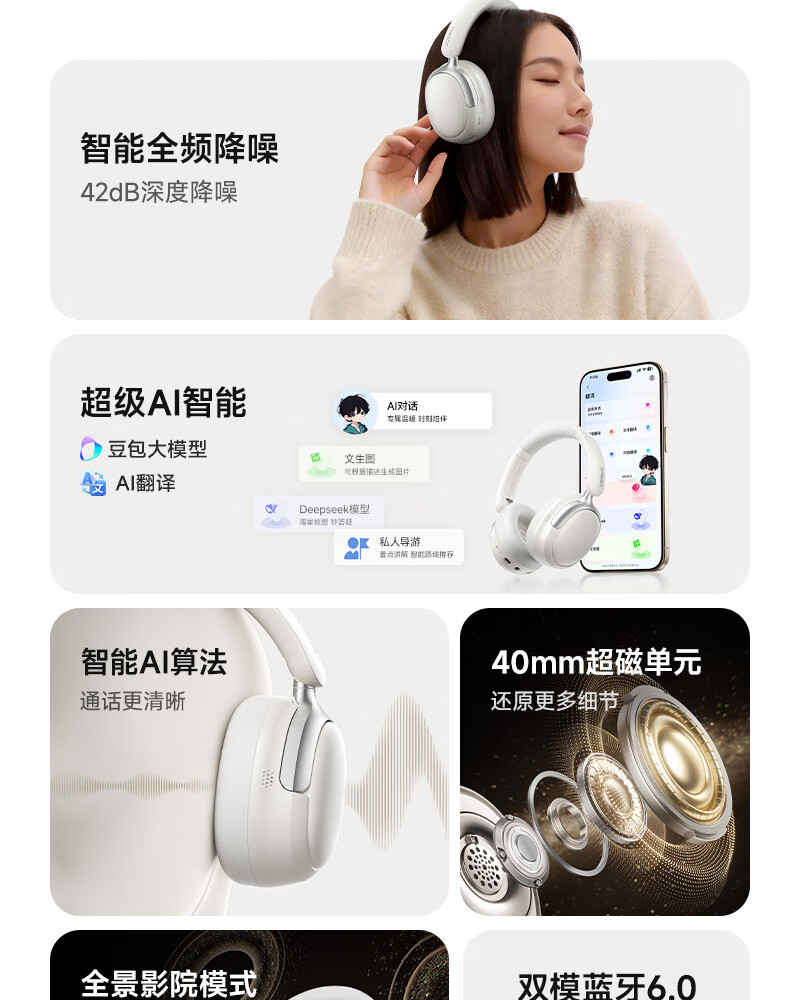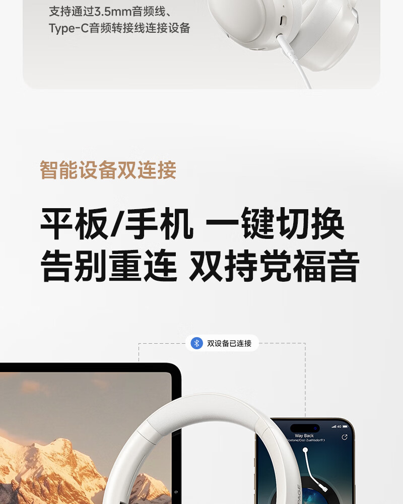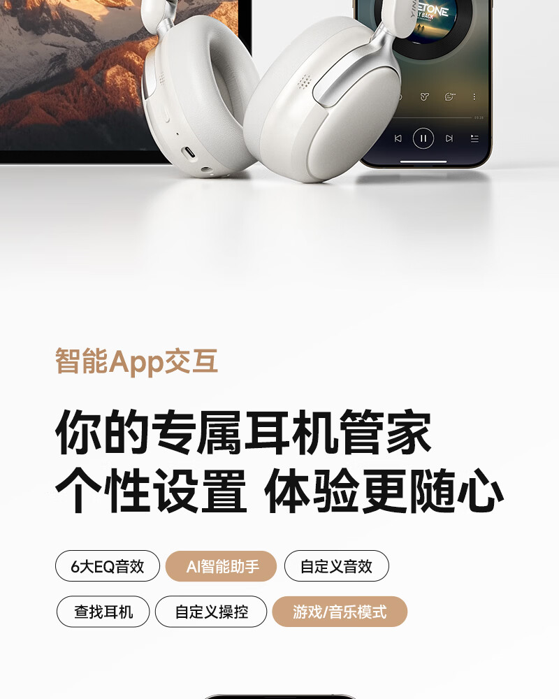 音贝奇2026新款头戴式耳机FreeB3无线主动降噪AI蓝牙耳机高音质超长续航游戏低延迟礼物