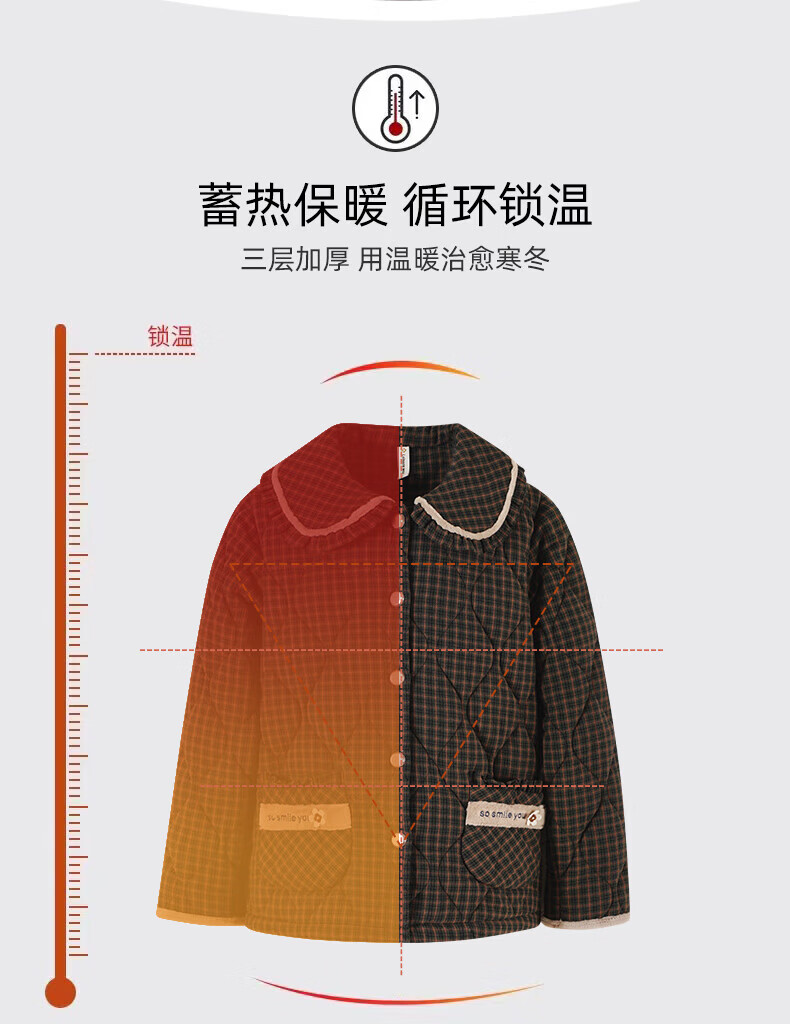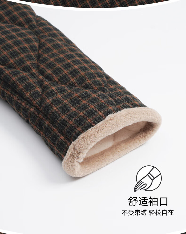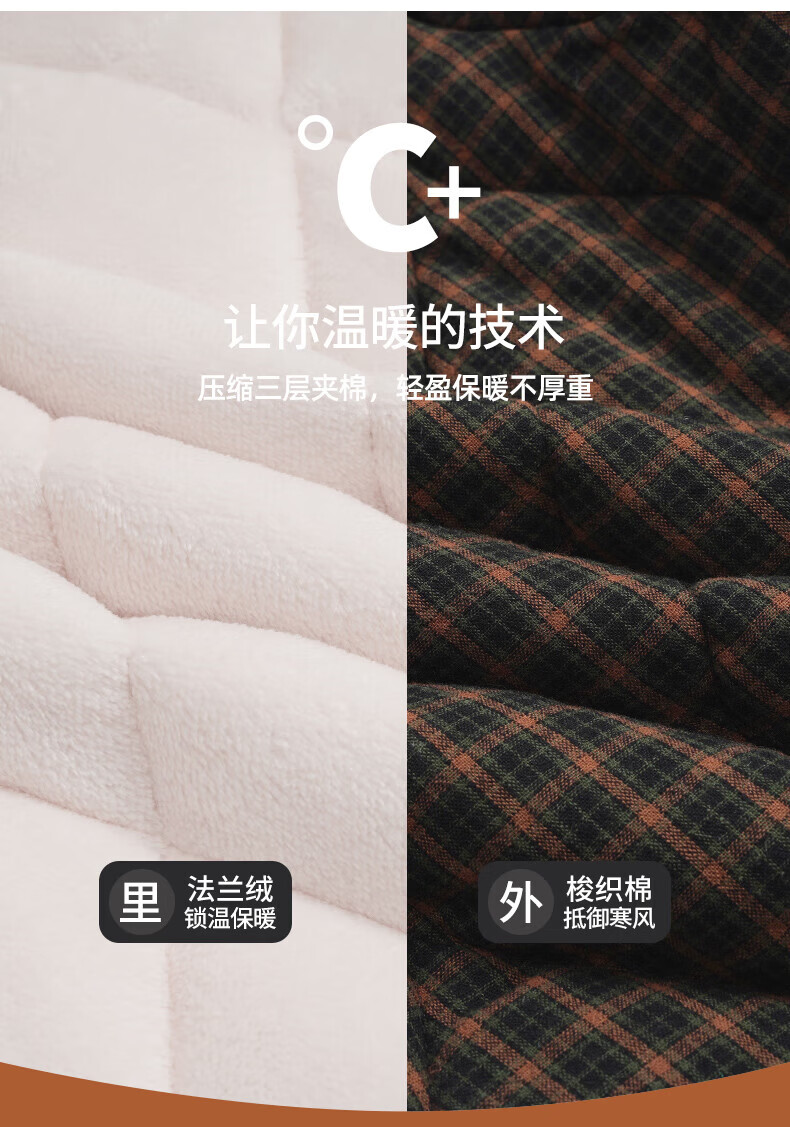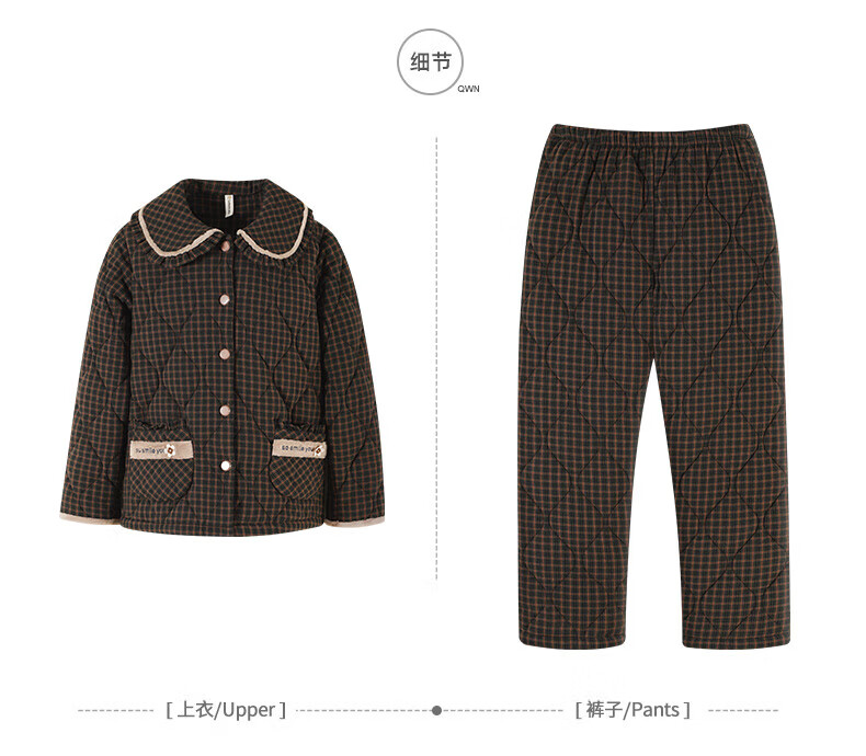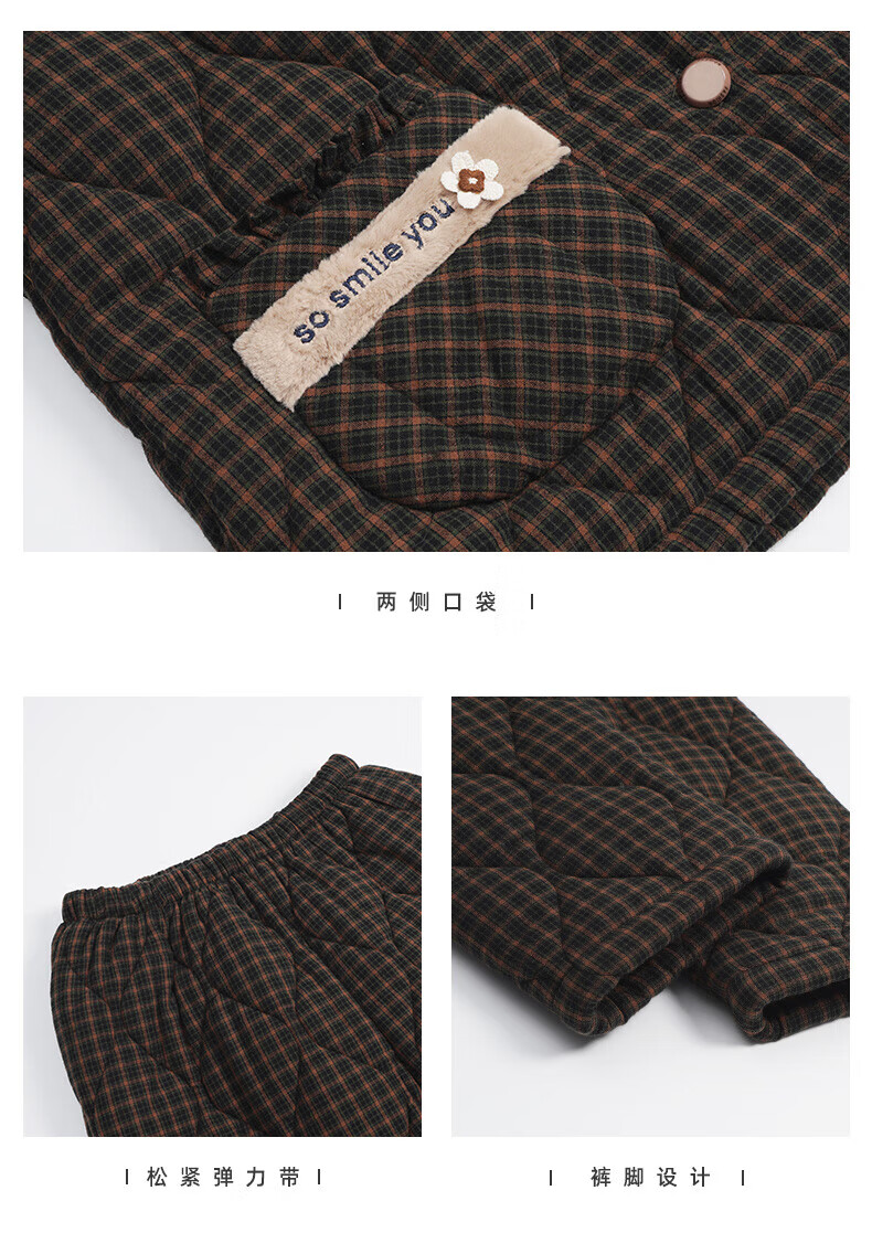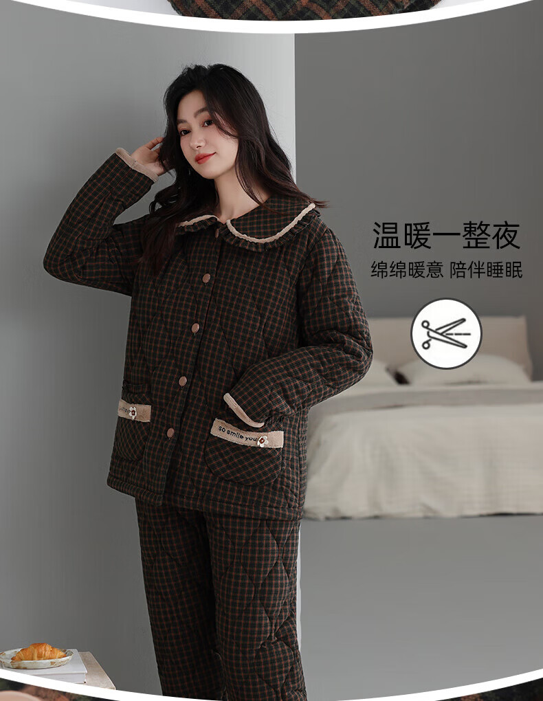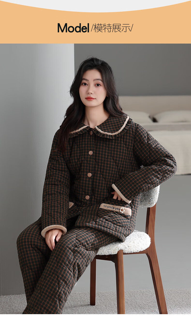 允织睡衣女冬季三层加厚加绒梭织纯棉夹棉袄秋冬款珊瑚绒高级感家居服 68048-黑咖 M (160) :建议90-110斤穿着