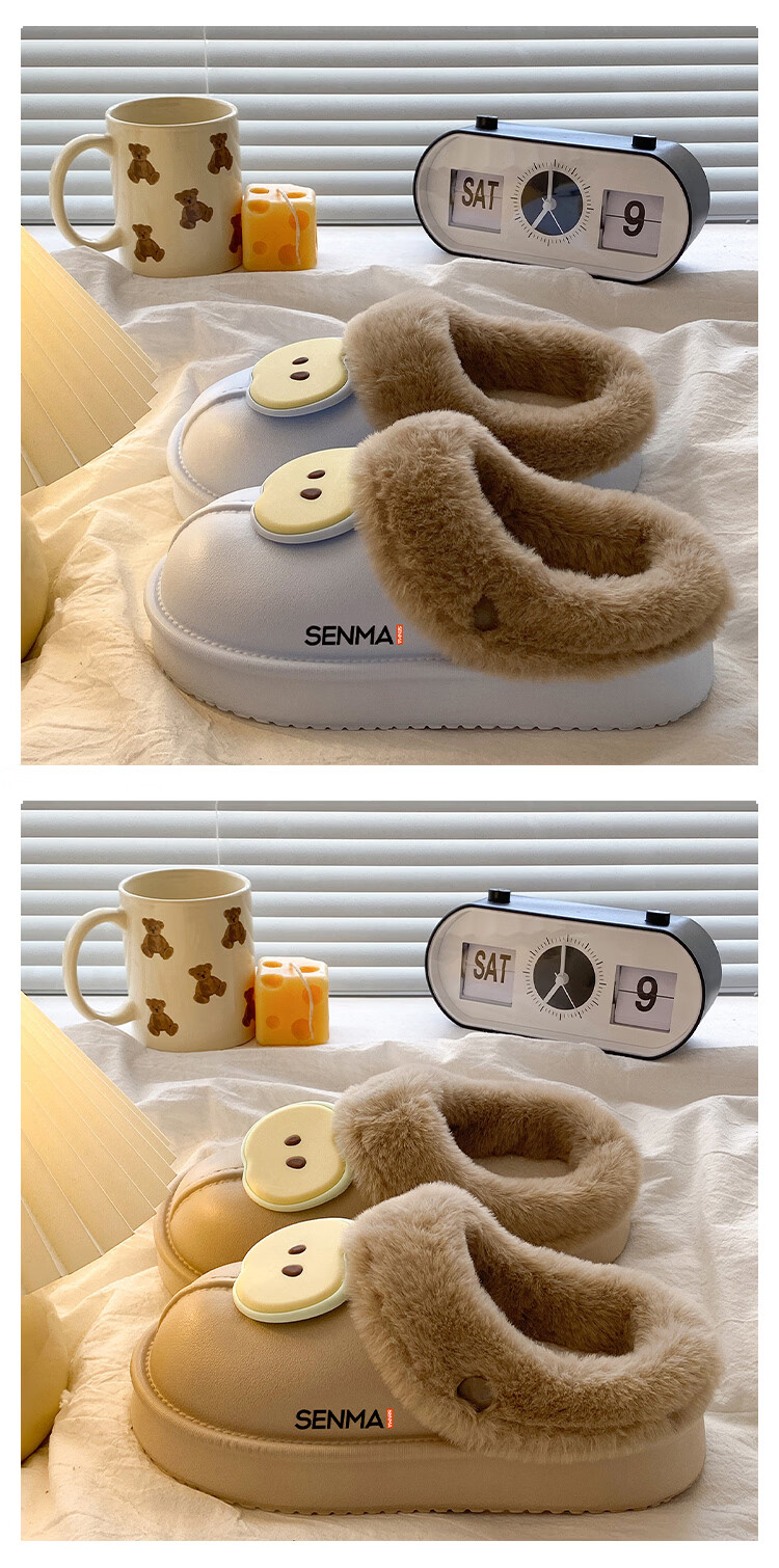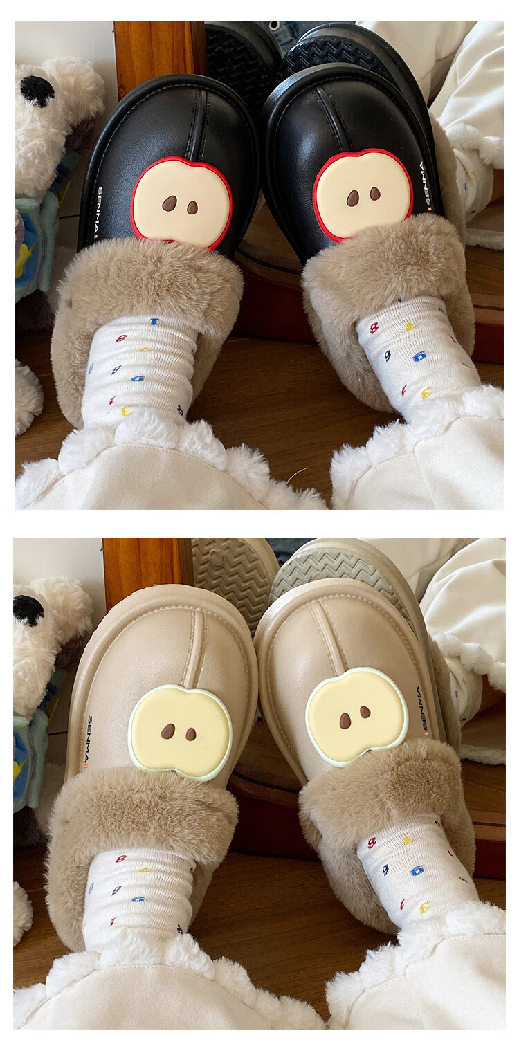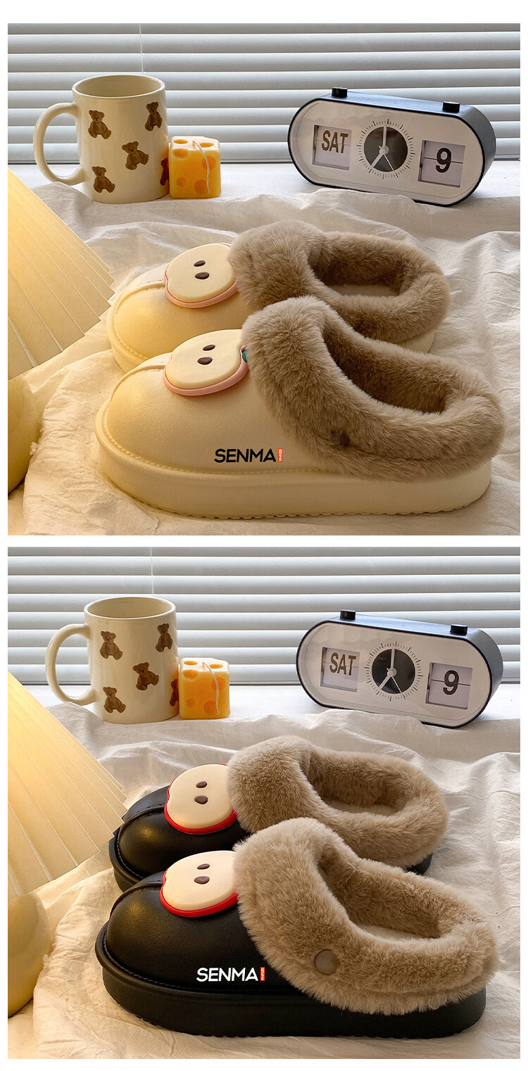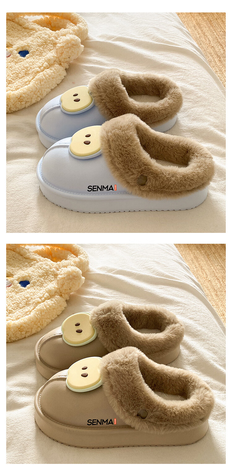 森馬棉拖女2026新款冬季加绒保暖休闲棉鞋女生居家室内软底防滑棉拖鞋 米白【基础款】 36-37 【现货秒发】