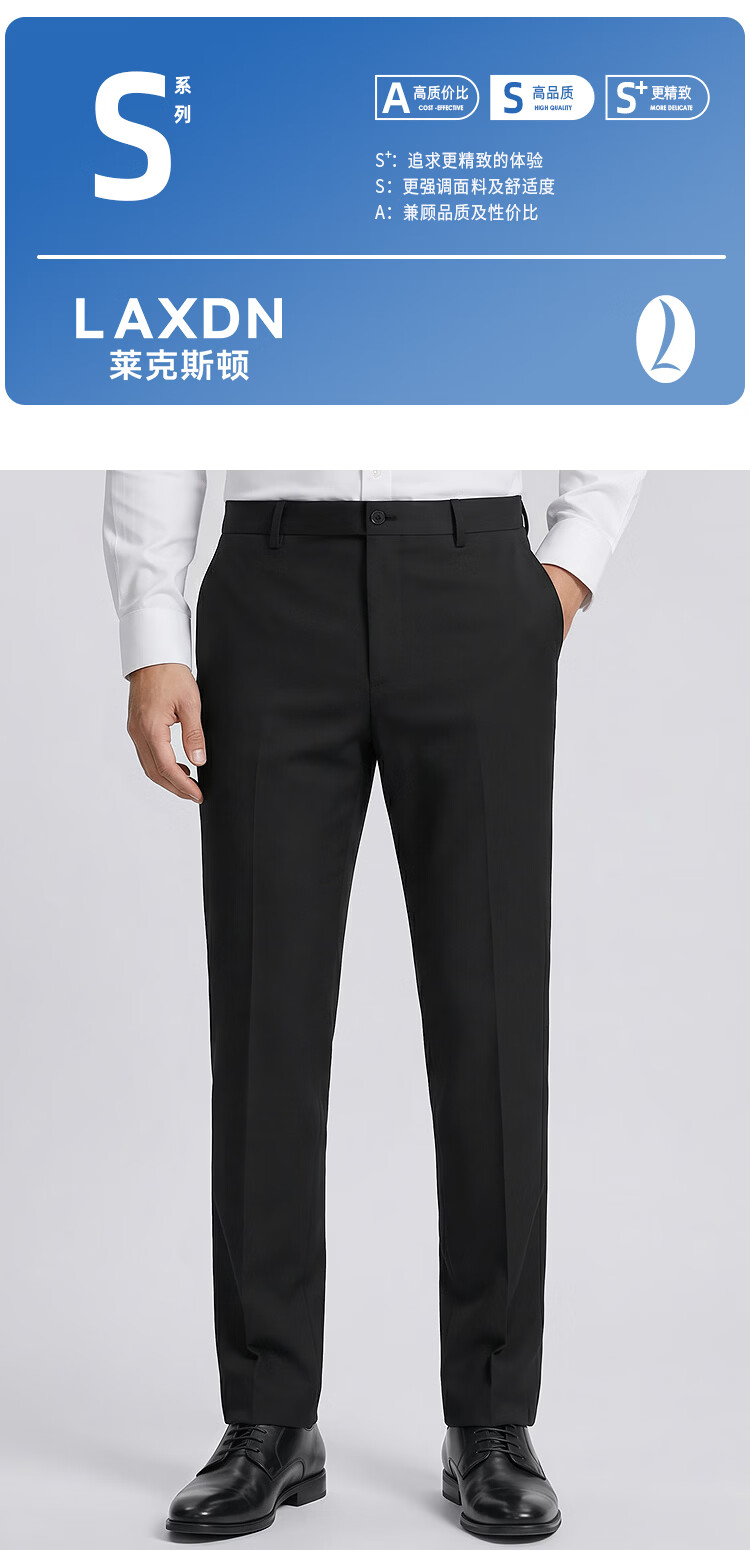 莱克斯顿(laxdn)西裤男四季通用锦氨四面弹透气亲肤吸湿快干耐穿易打理正装裤子男 深黑 28