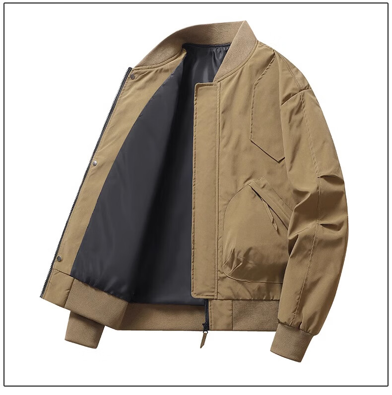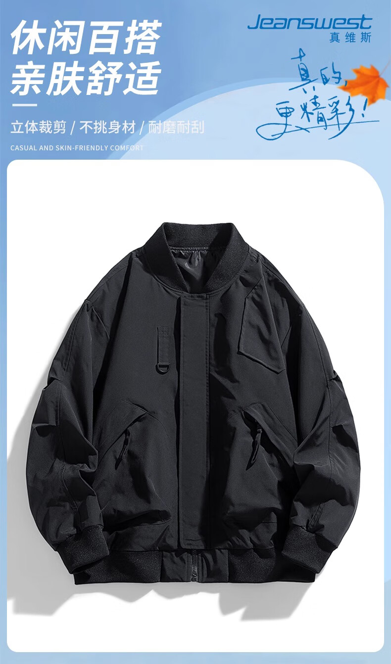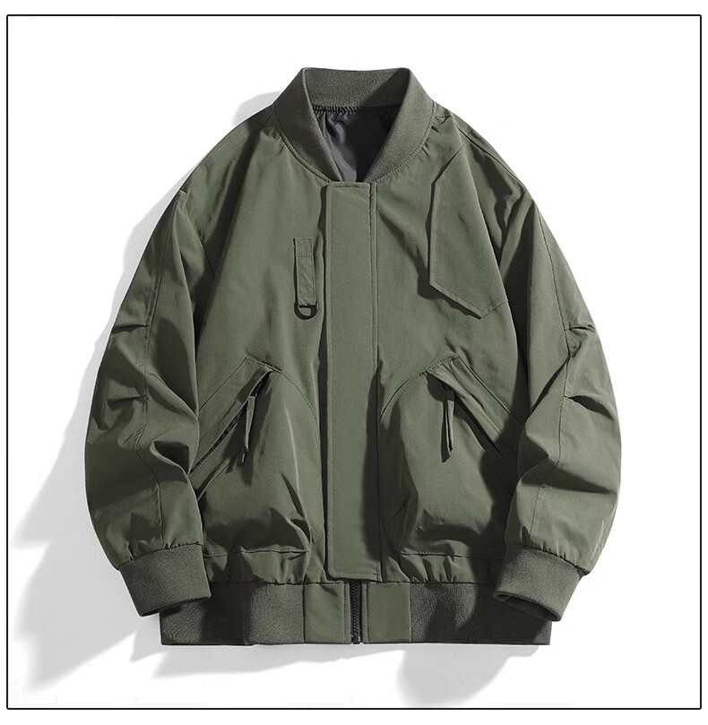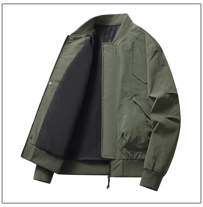 真维斯(Jeanswest)美式复古飞行员夹克男士秋冬季新款宽松休闲棒球服立领加大码外套 军绿【加绒加厚】 M 【建议88-100斤】