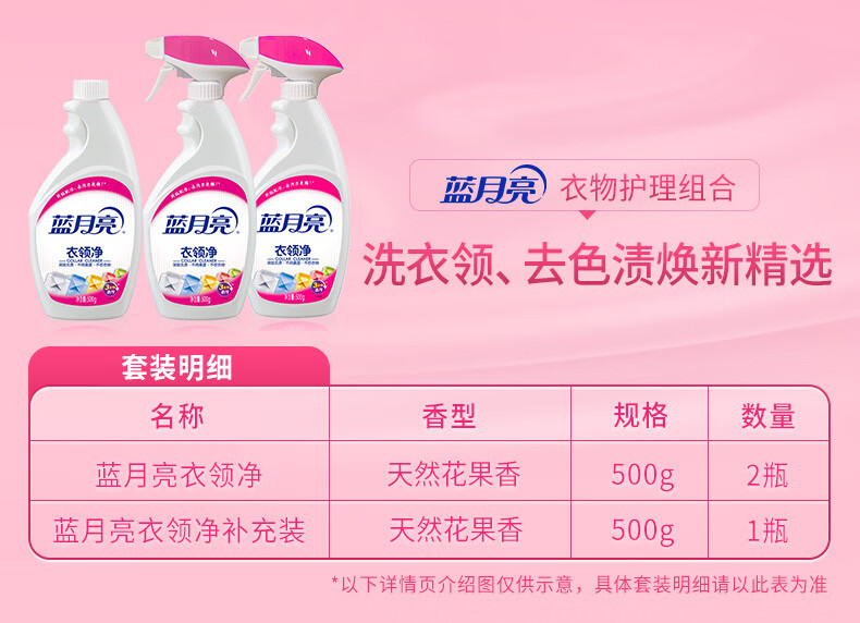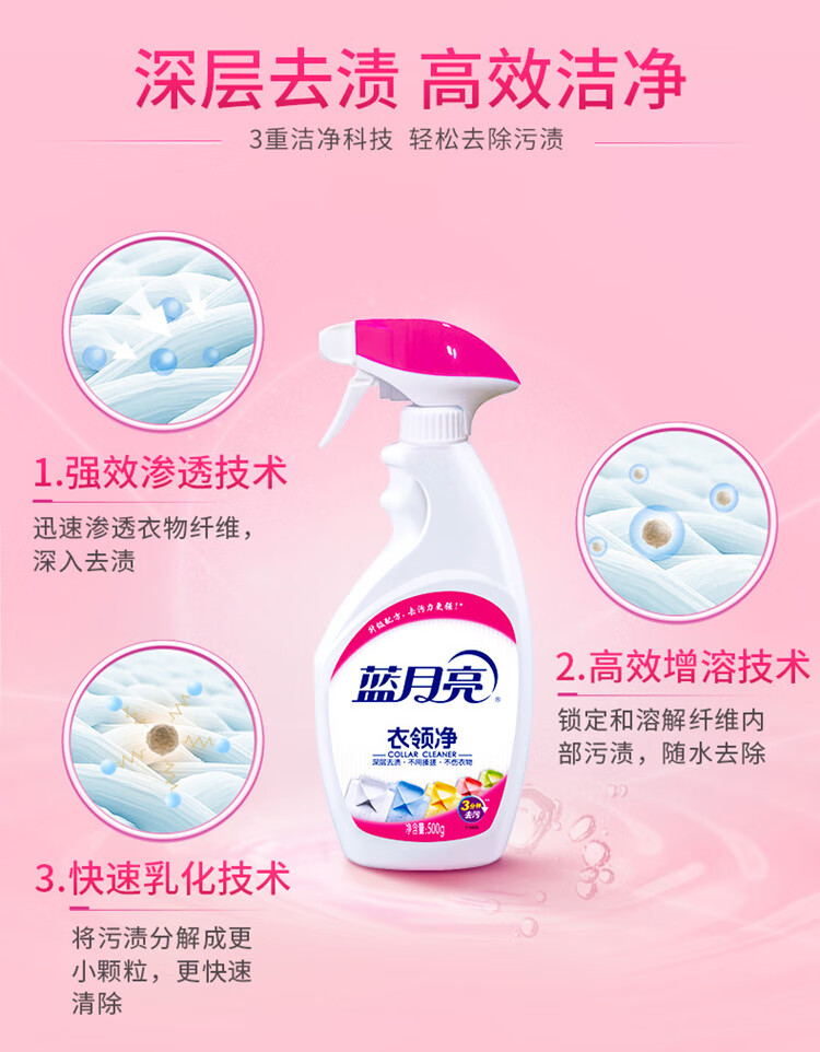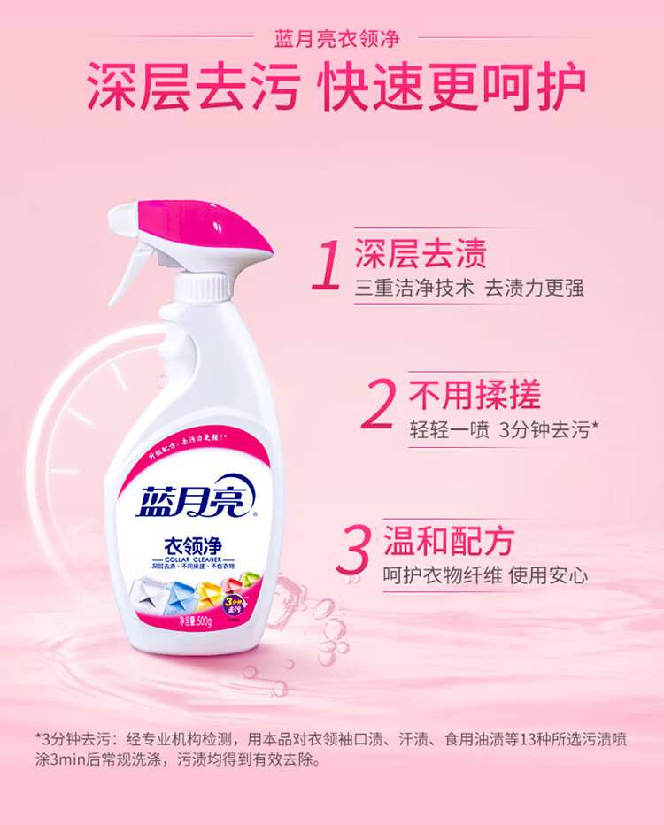 蓝月亮衣领净 500g*3瓶 强力去污去渍免揉搓 喷雾型衣领袖口助洗剂