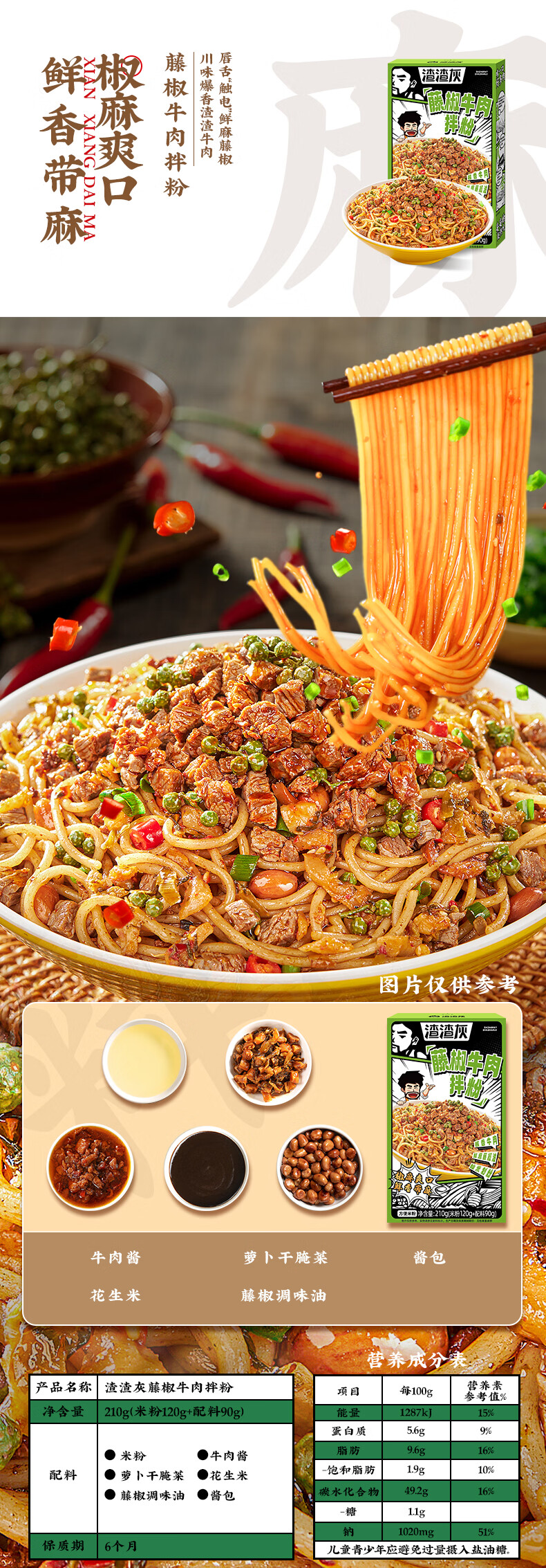渣渣灰南昌拌粉江西米粉米线特产懒人方便速食食品辣早餐夜宵 南昌拌粉*5+小龙虾味拌粉*1