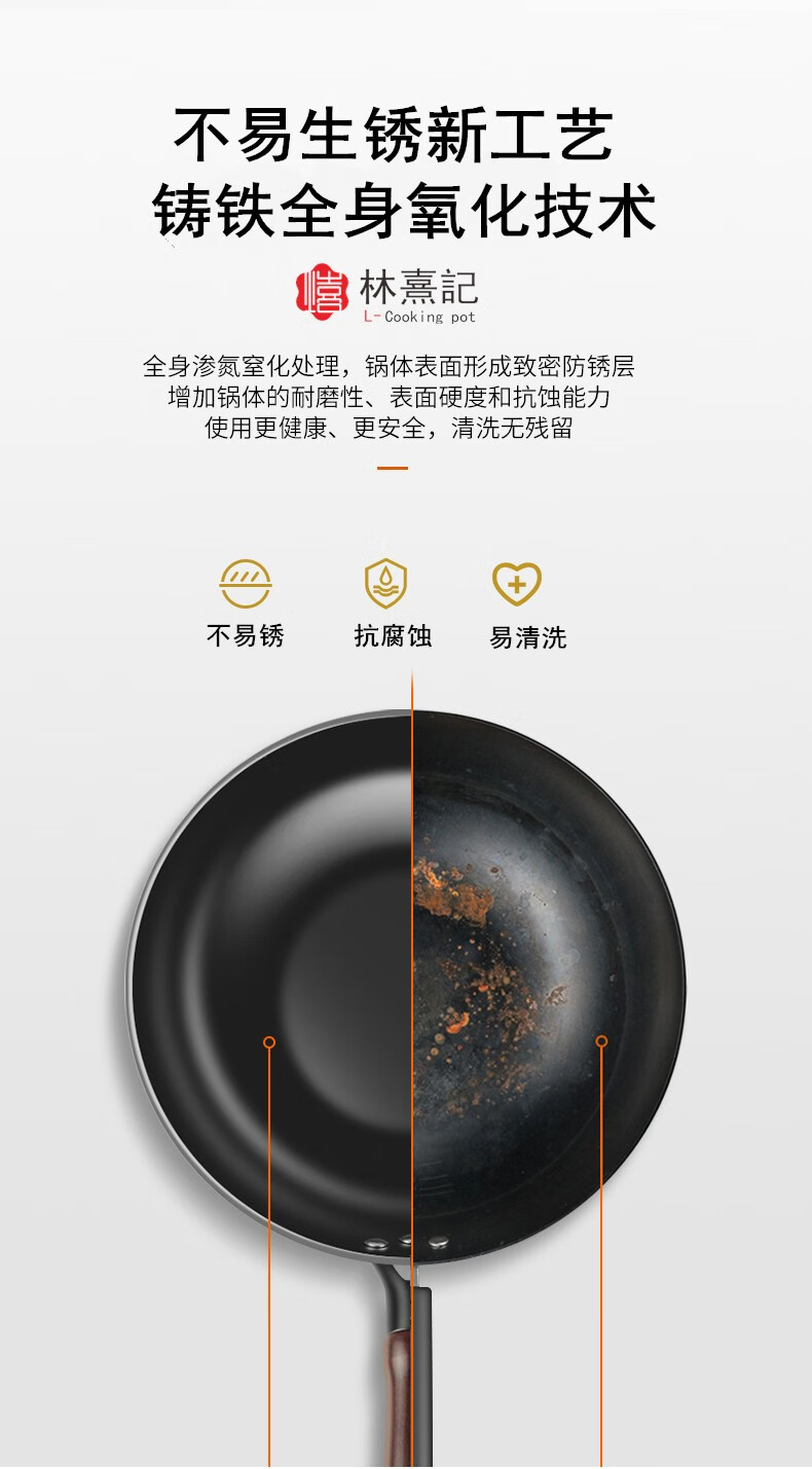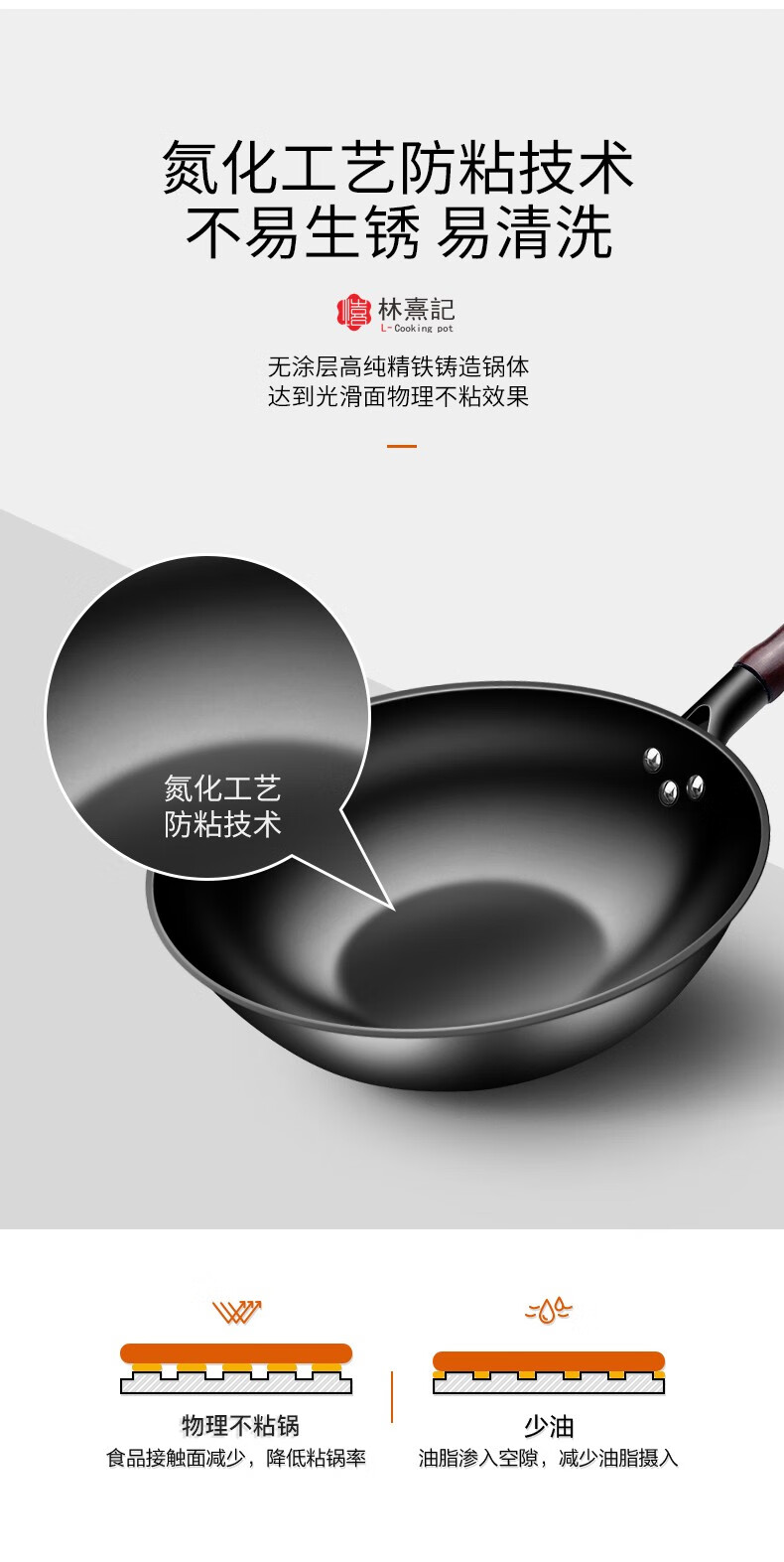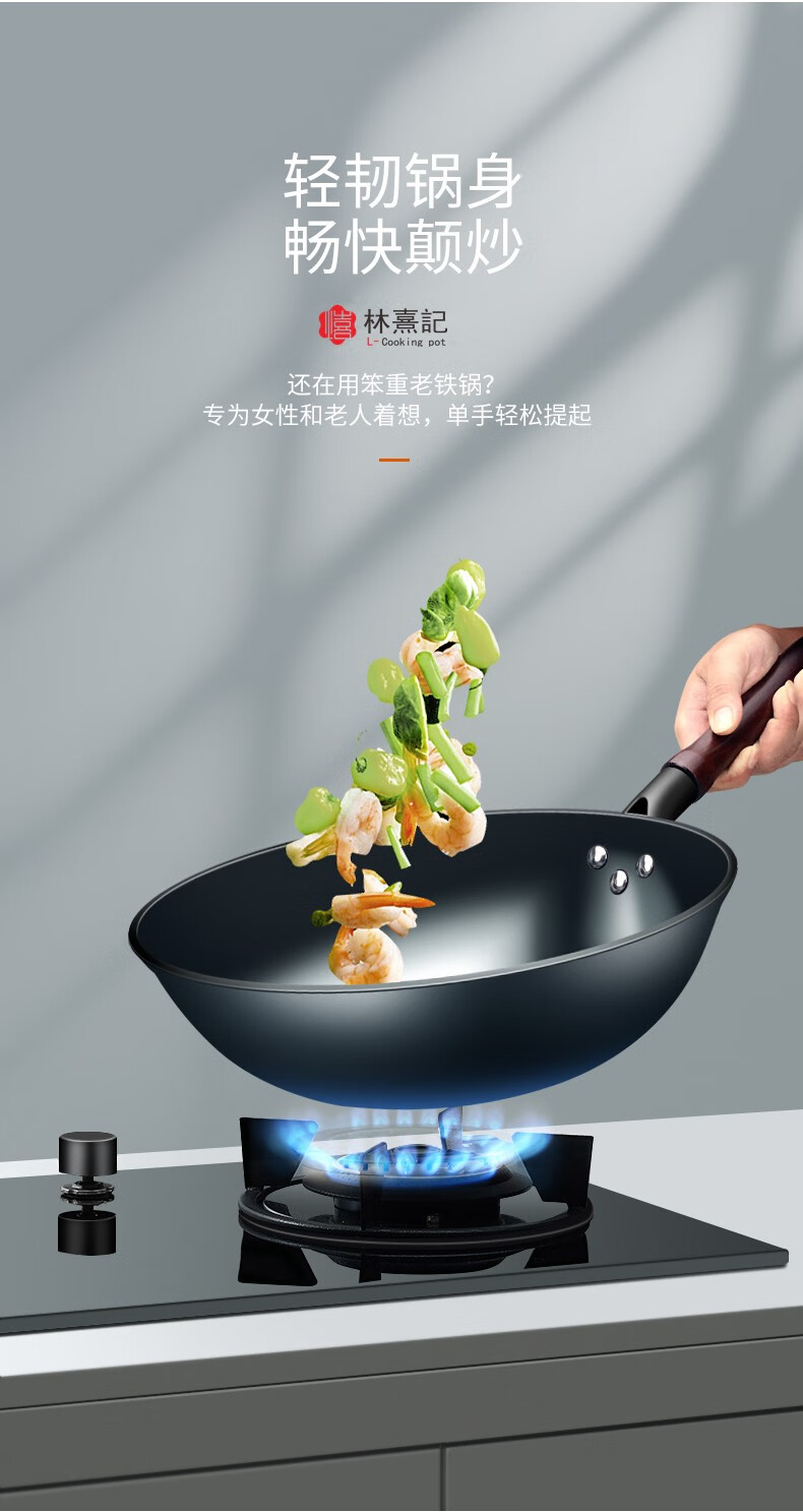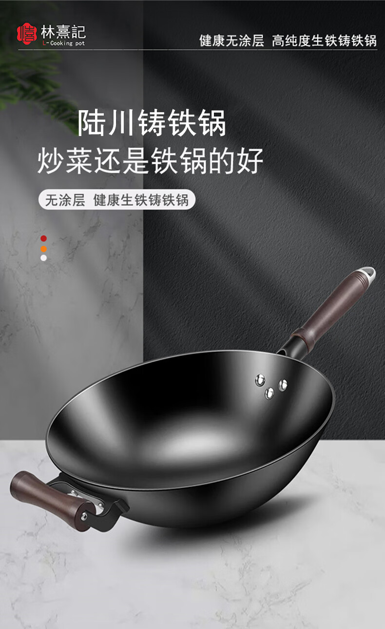 林熹记铁锅陆川生铁铸铁锅炒锅手工浇铸厨房好物家用无涂层不粘锅炒菜锅 圆底 34cm (带锅盖+铲子)已开锅