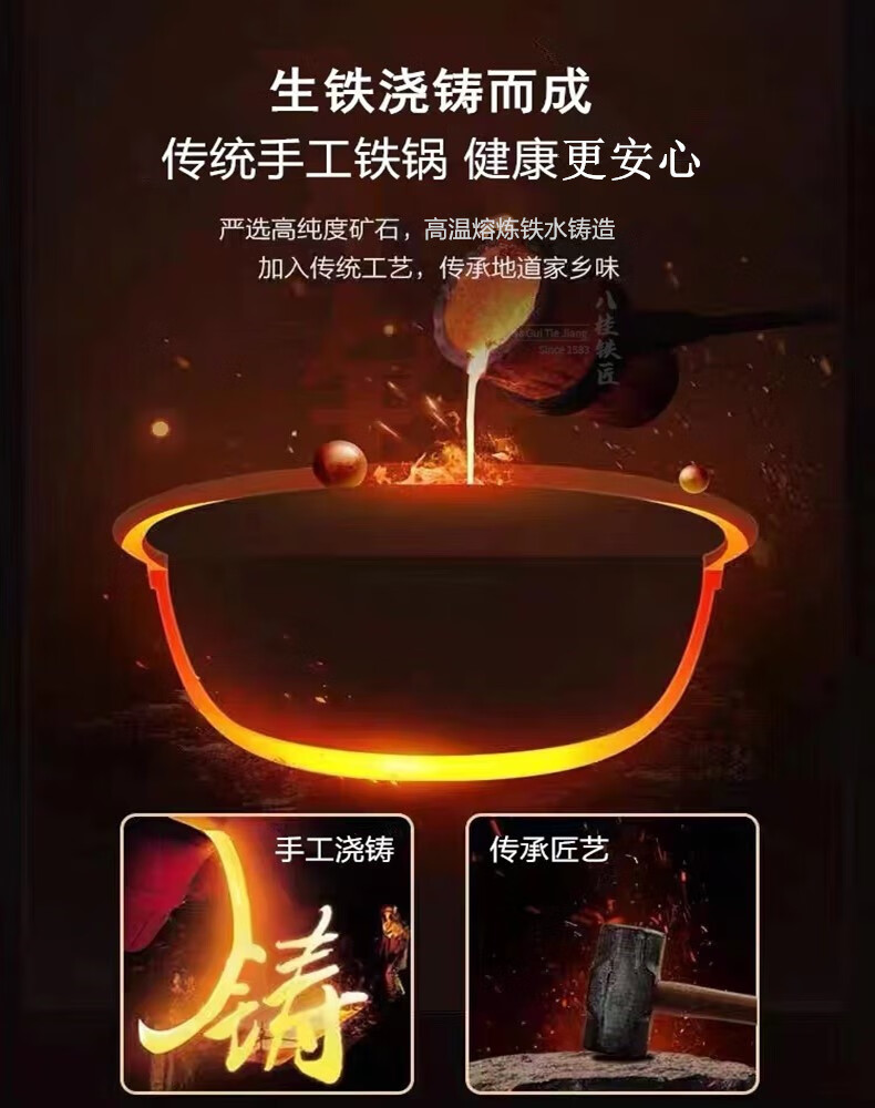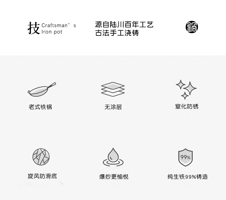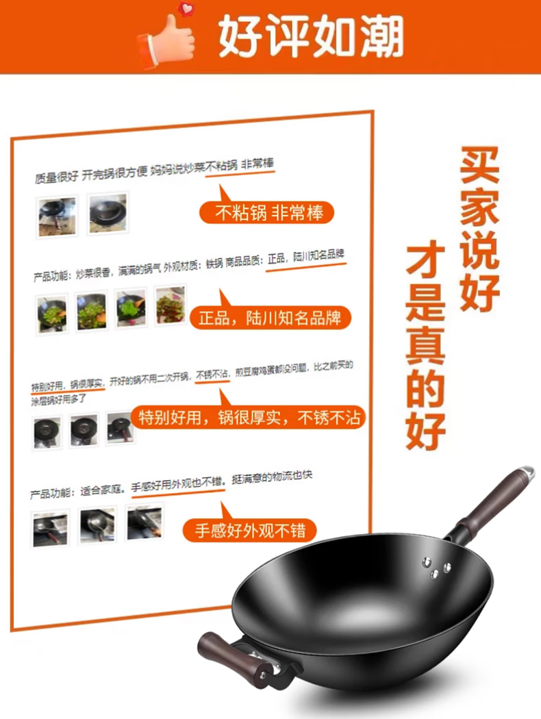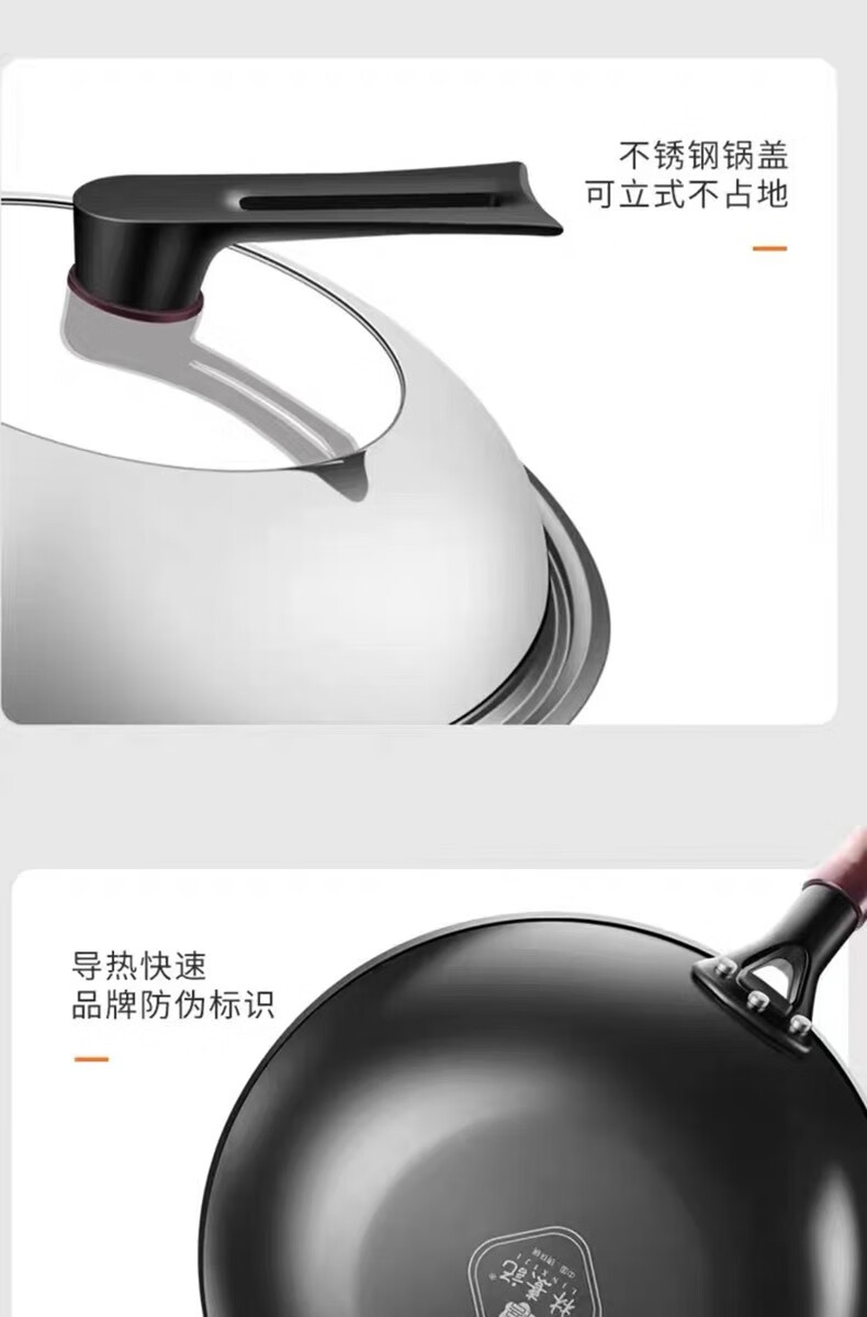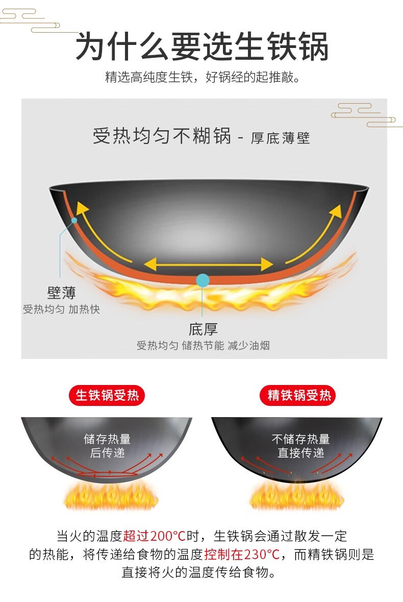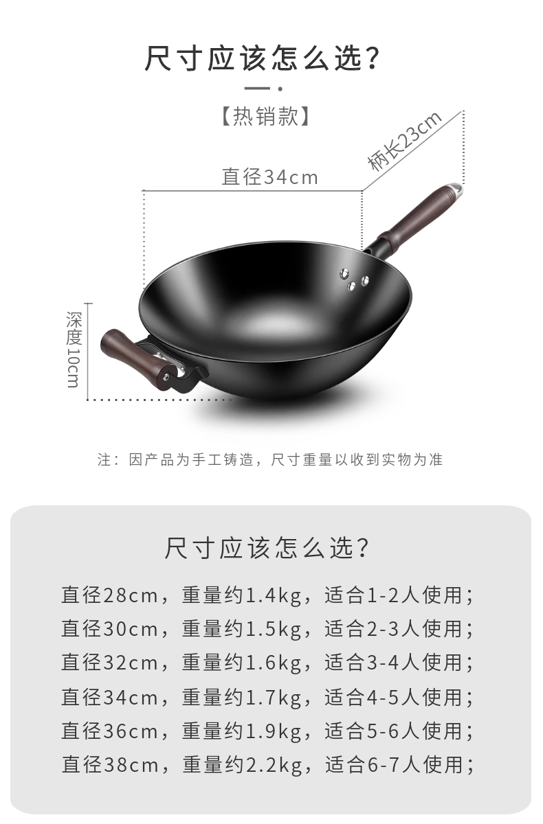 林熹记铁锅陆川生铁铸铁锅炒锅手工浇铸厨房好物家用无涂层不粘锅炒菜锅 圆底 34cm (带锅盖+铲子)已开锅