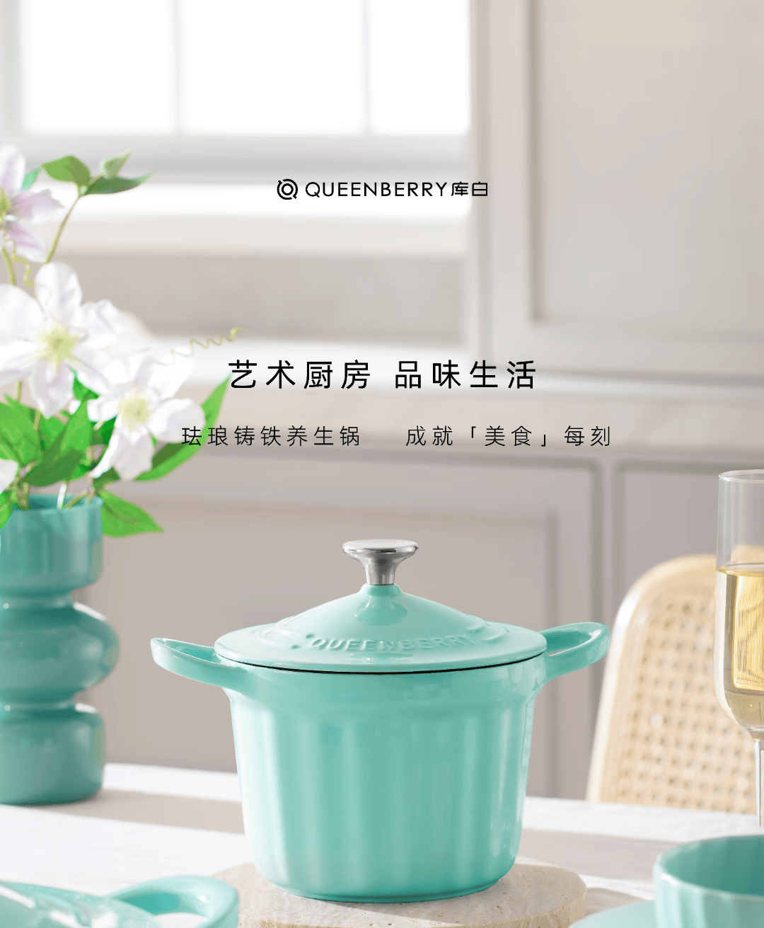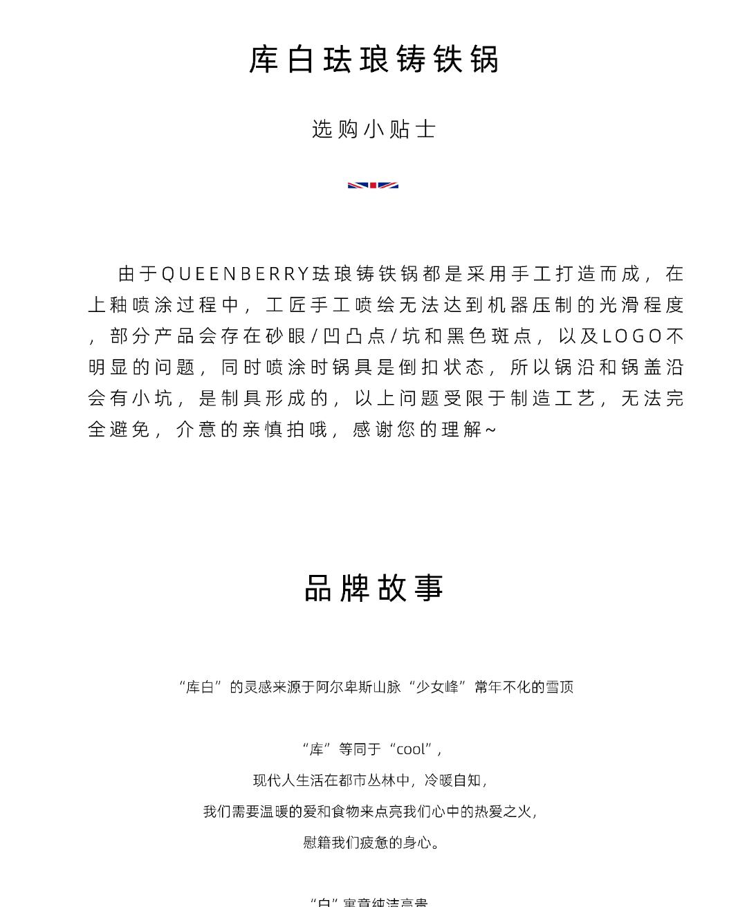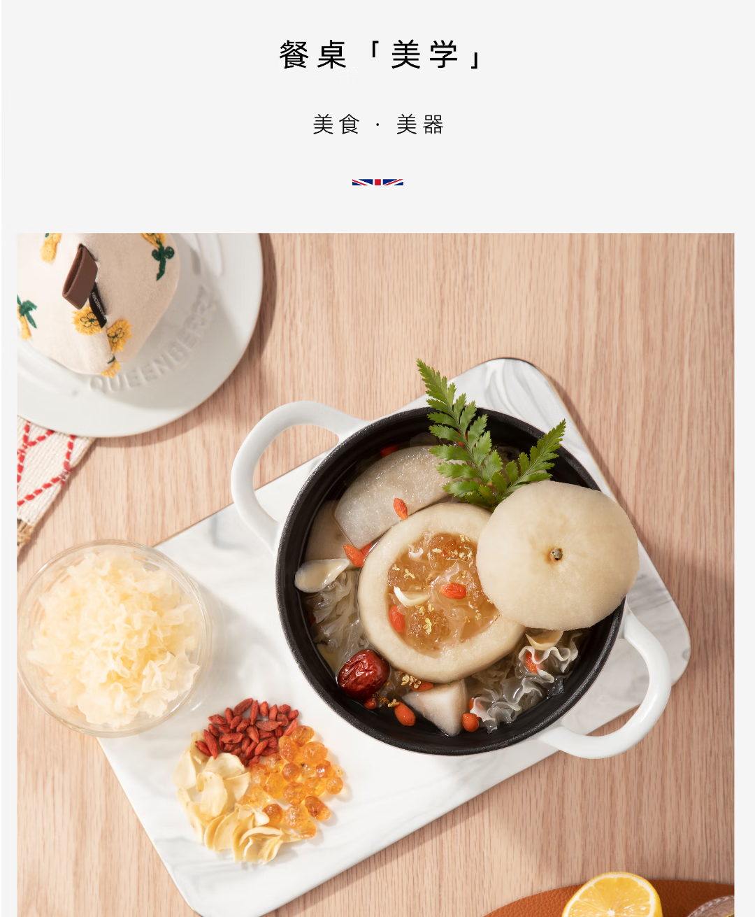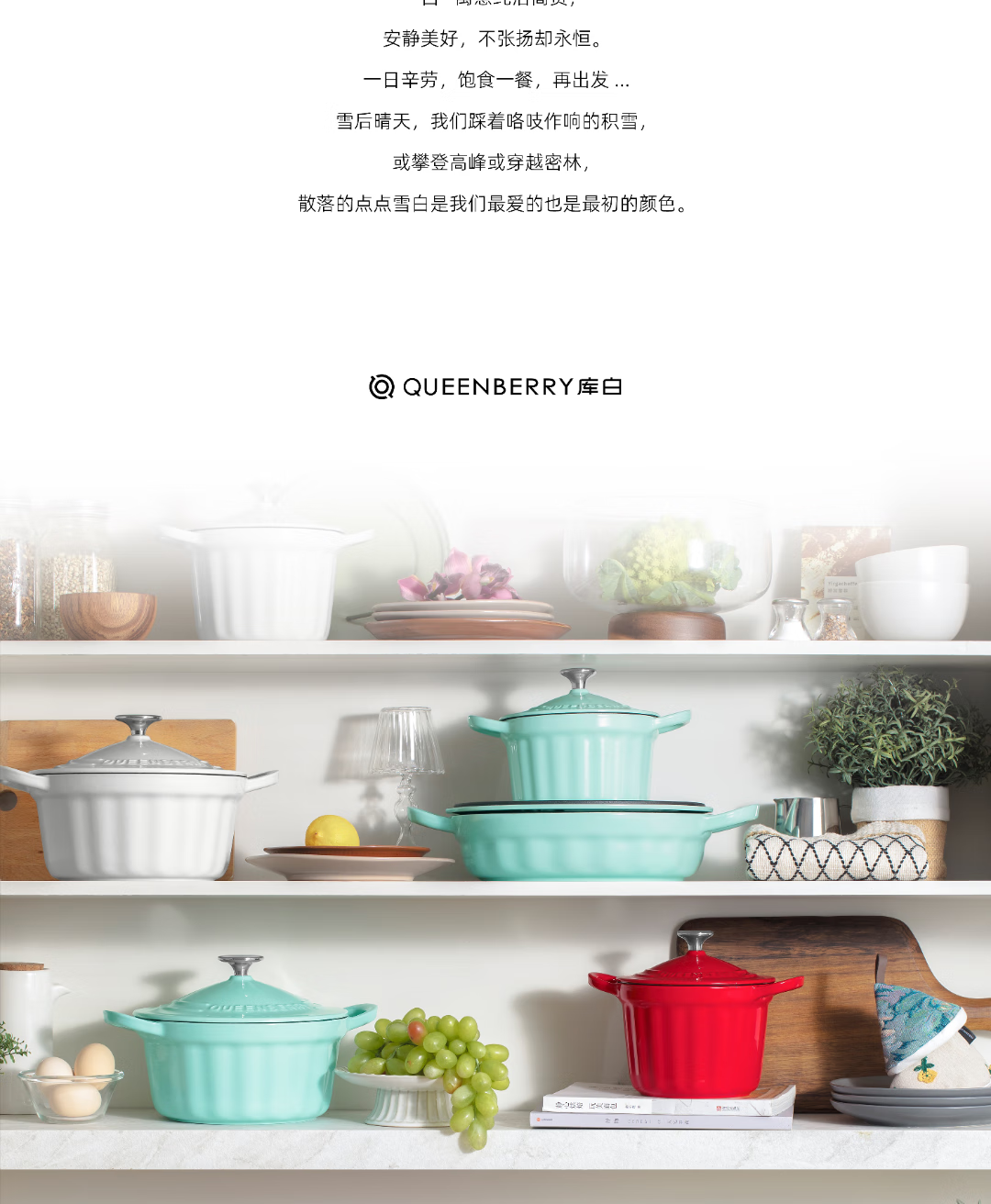 QUEENBERRY英国库白铸铁珐琅锅私人料理锅家用炖锅厨房汤锅北欧平底饭釜锅 「2-3人食」料理锅-雪顶白 16cm