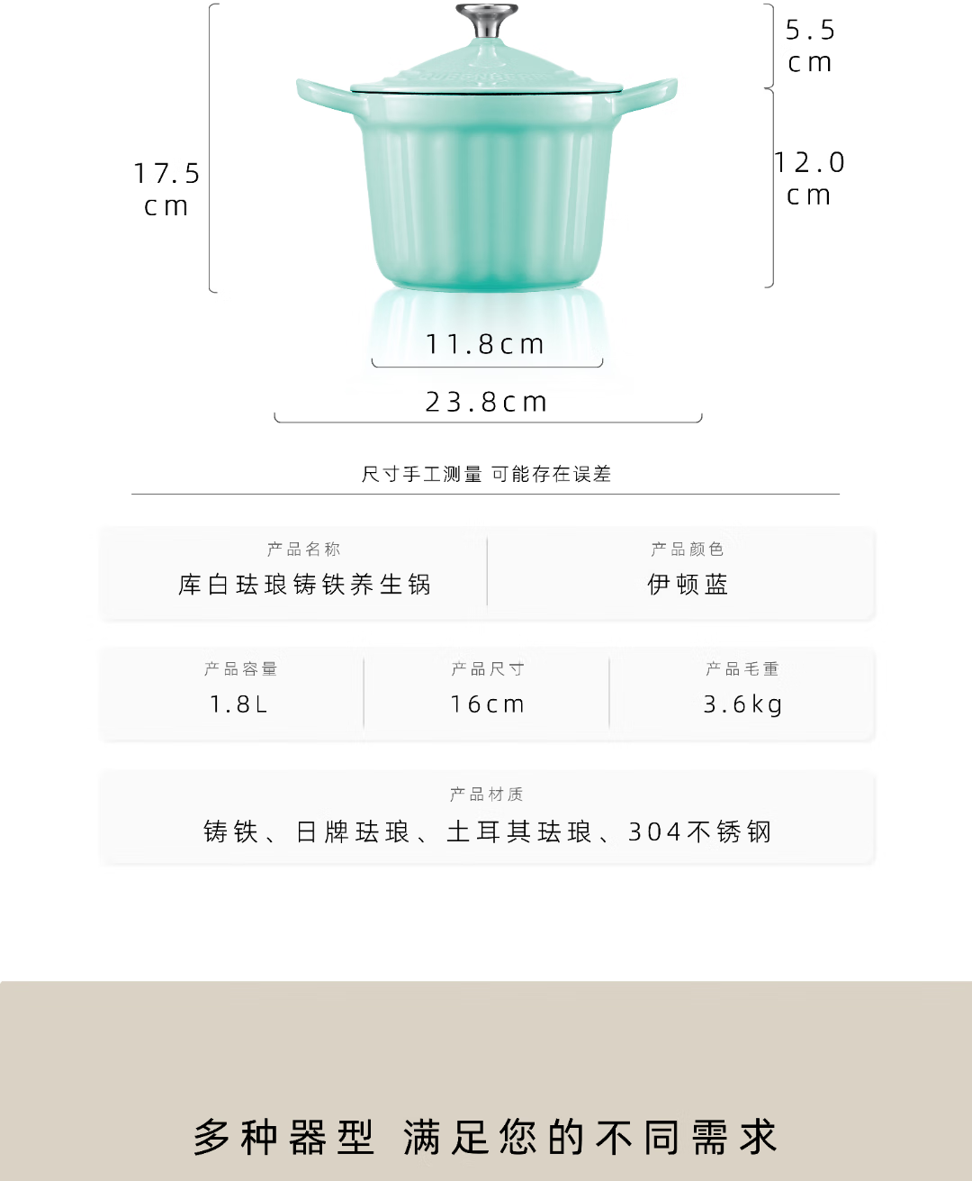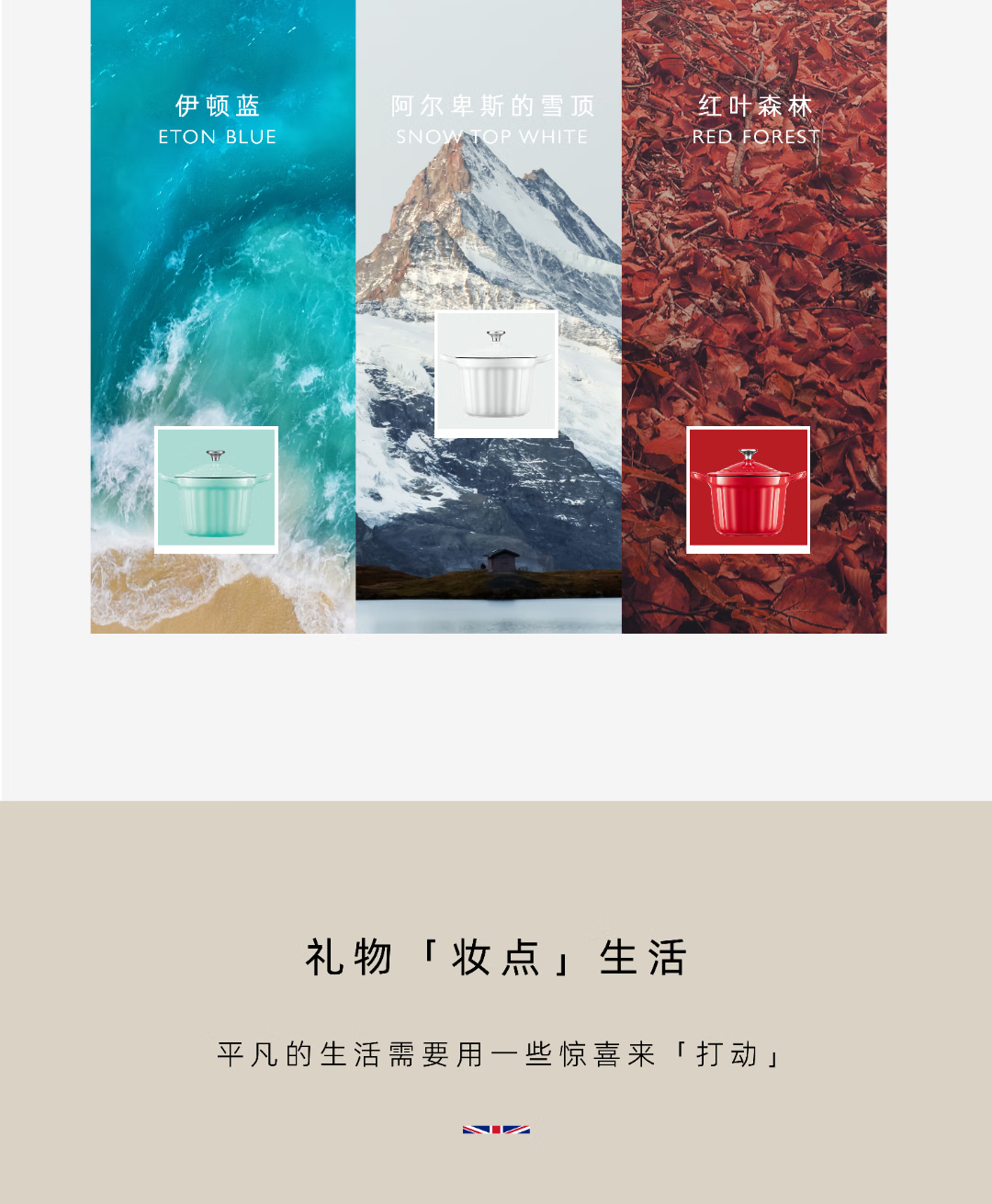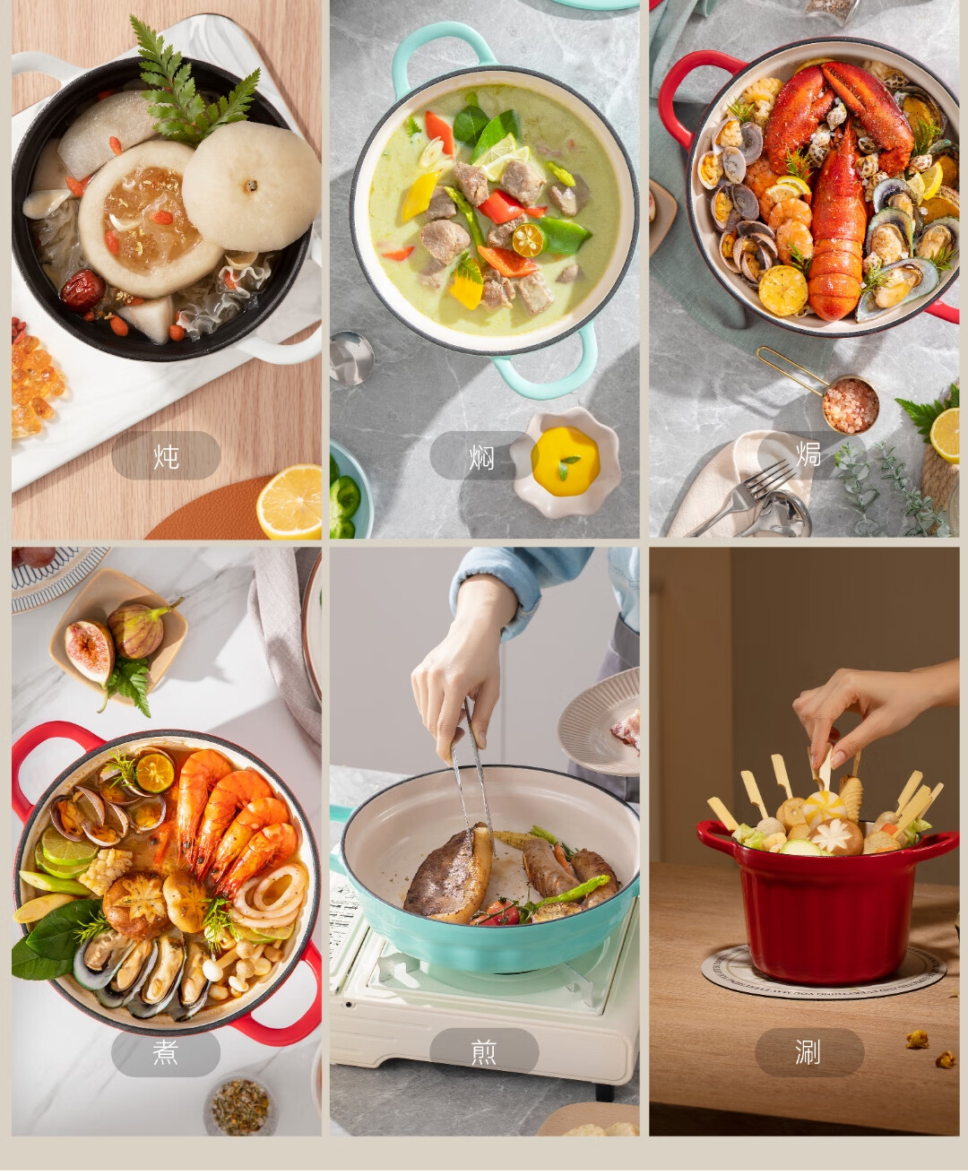 QUEENBERRY英国库白铸铁珐琅锅私人料理锅家用炖锅厨房汤锅北欧平底饭釜锅 「2-3人食」料理锅-雪顶白 16cm