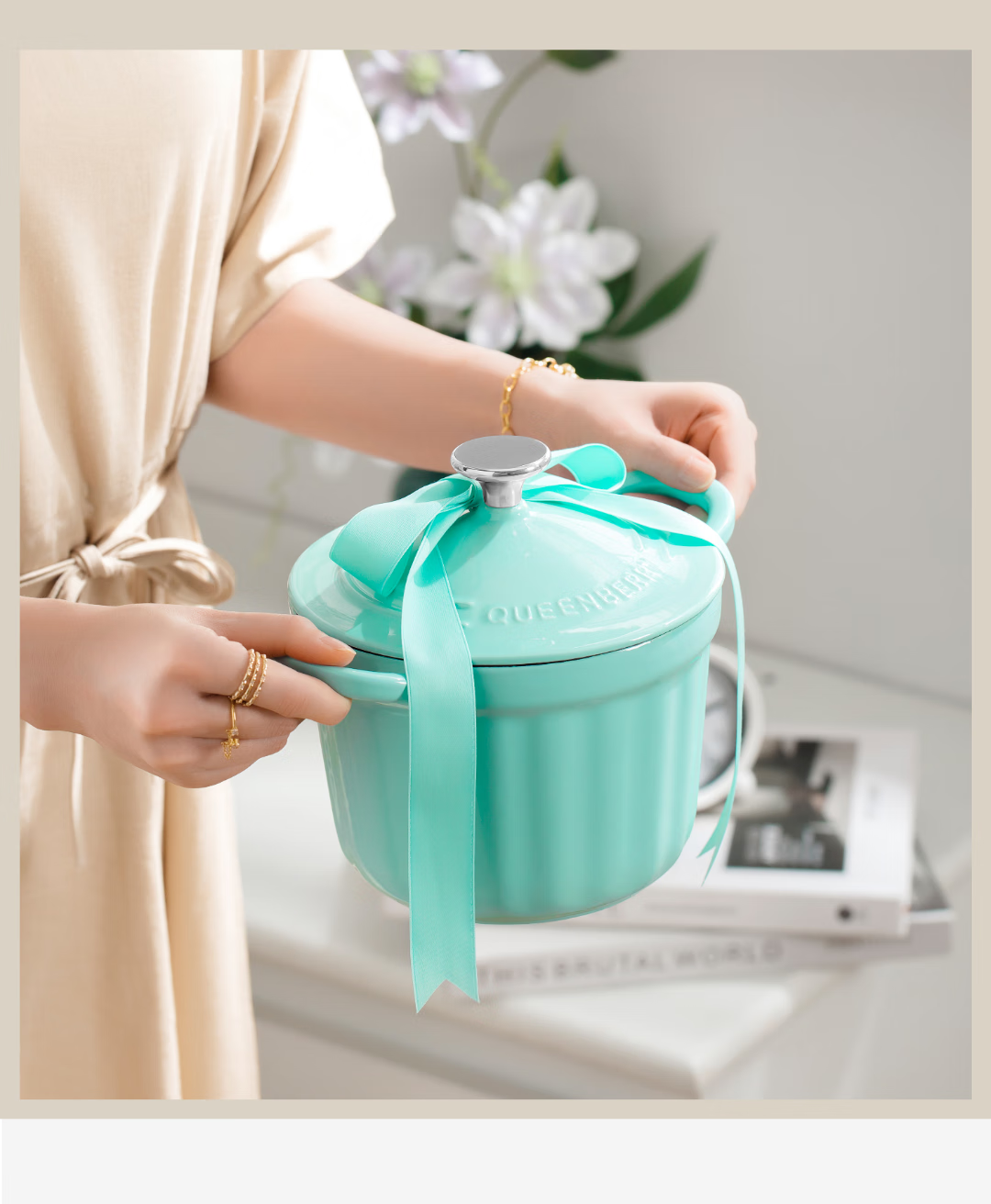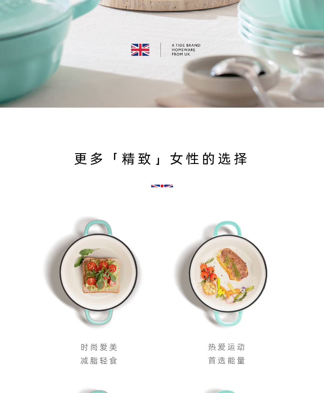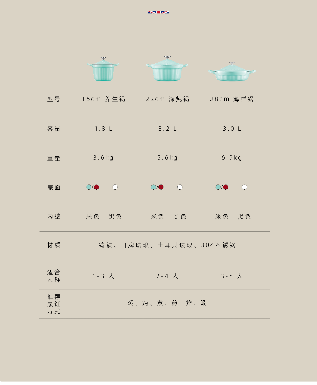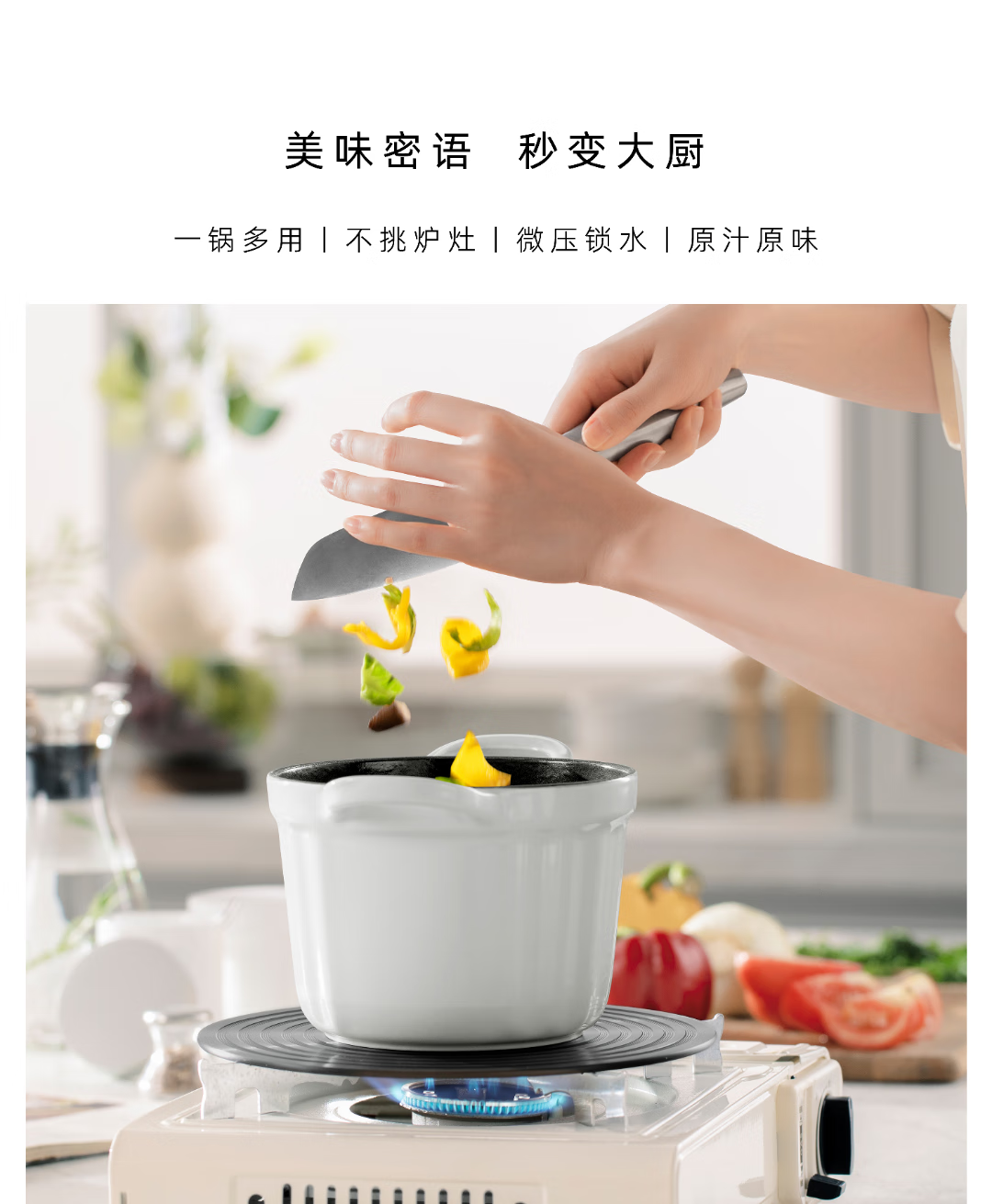 QUEENBERRY英国库白铸铁珐琅锅私人料理锅家用炖锅厨房汤锅北欧平底饭釜锅 「2-3人食」料理锅-雪顶白 16cm