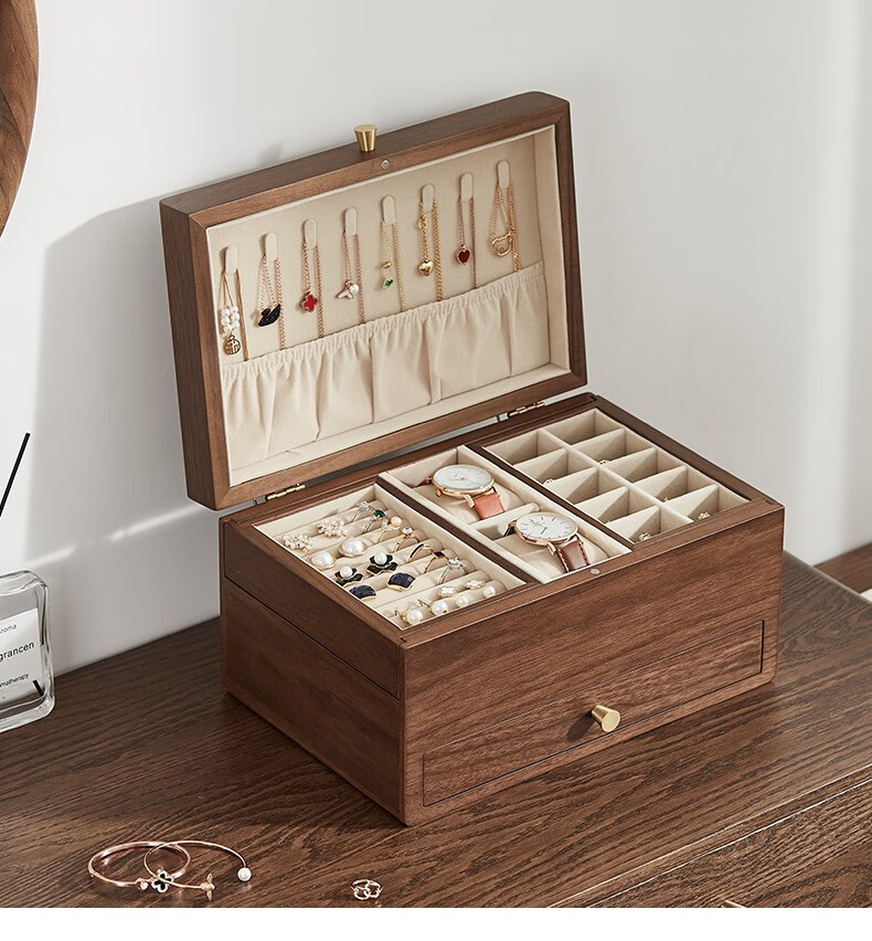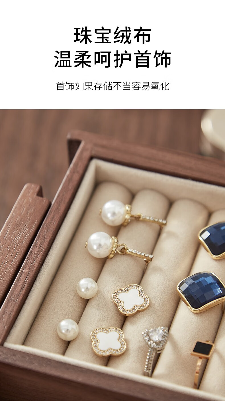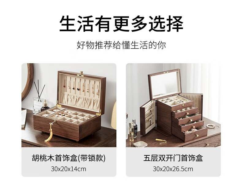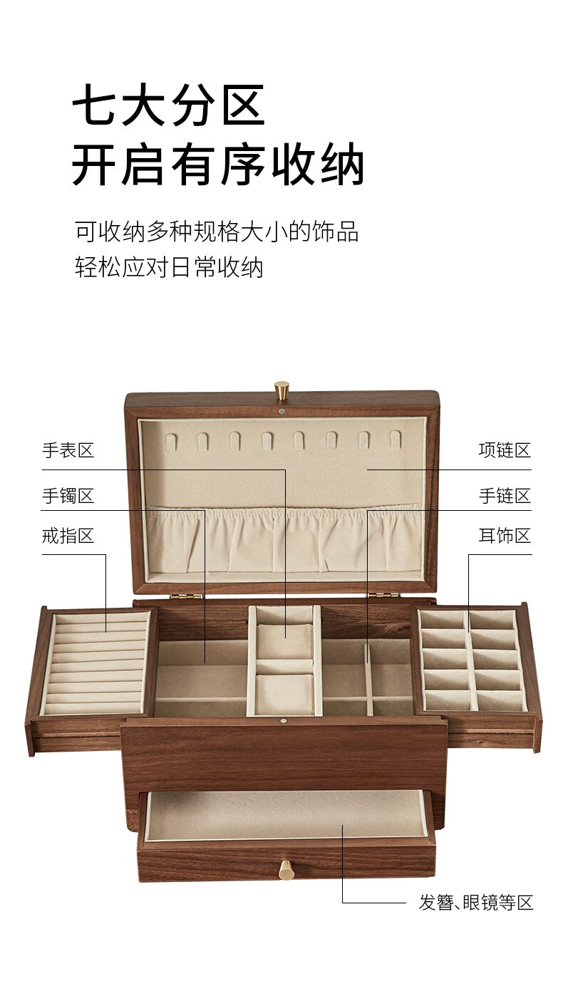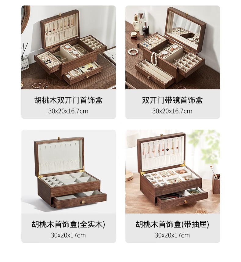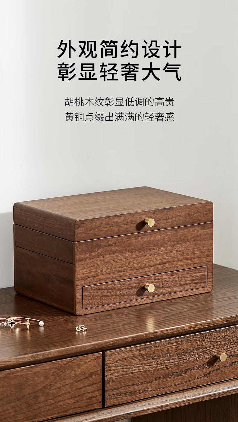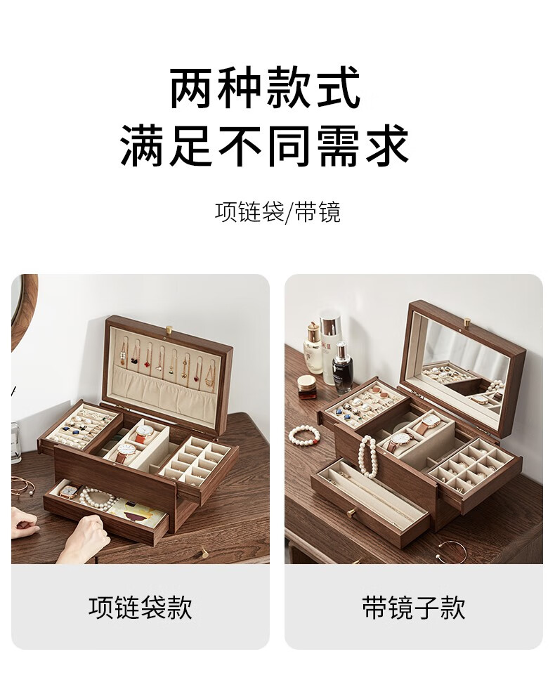 初心胡桃木首饰盒饰品盒生日新婚礼物送女生多层大容量珠宝手镯收纳盒 双开门大容量首饰盒(带镜子)