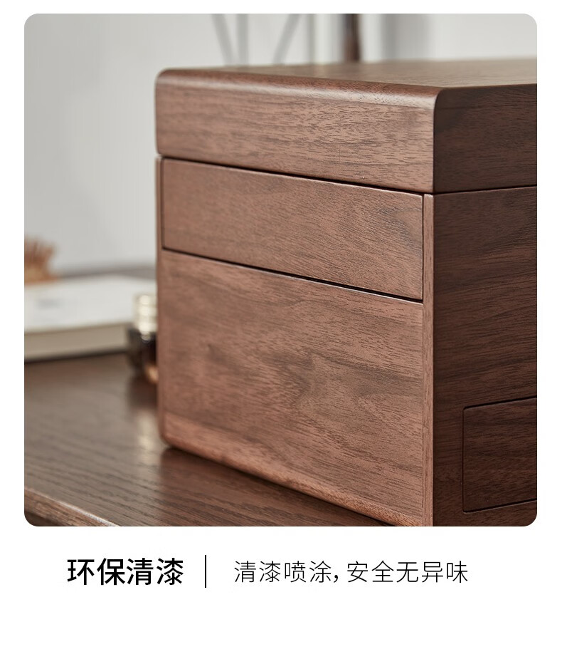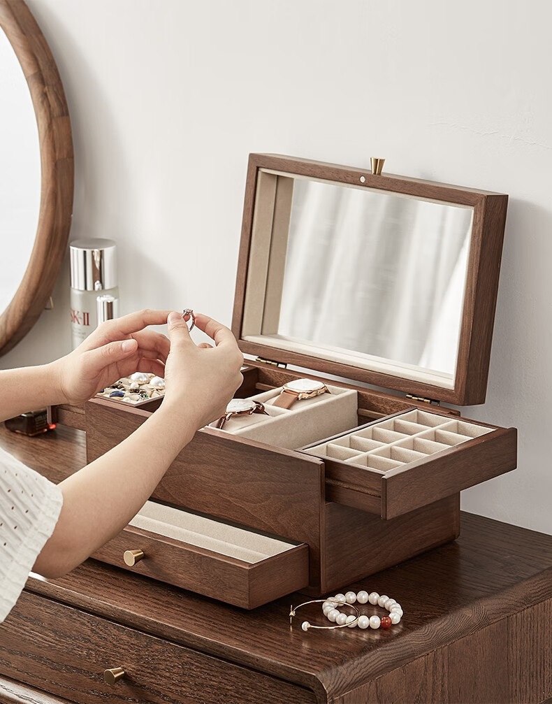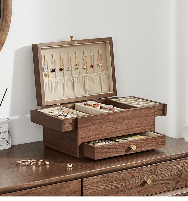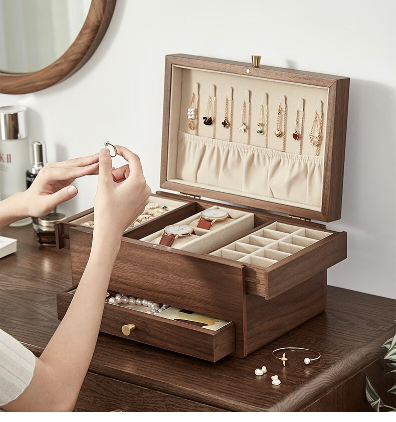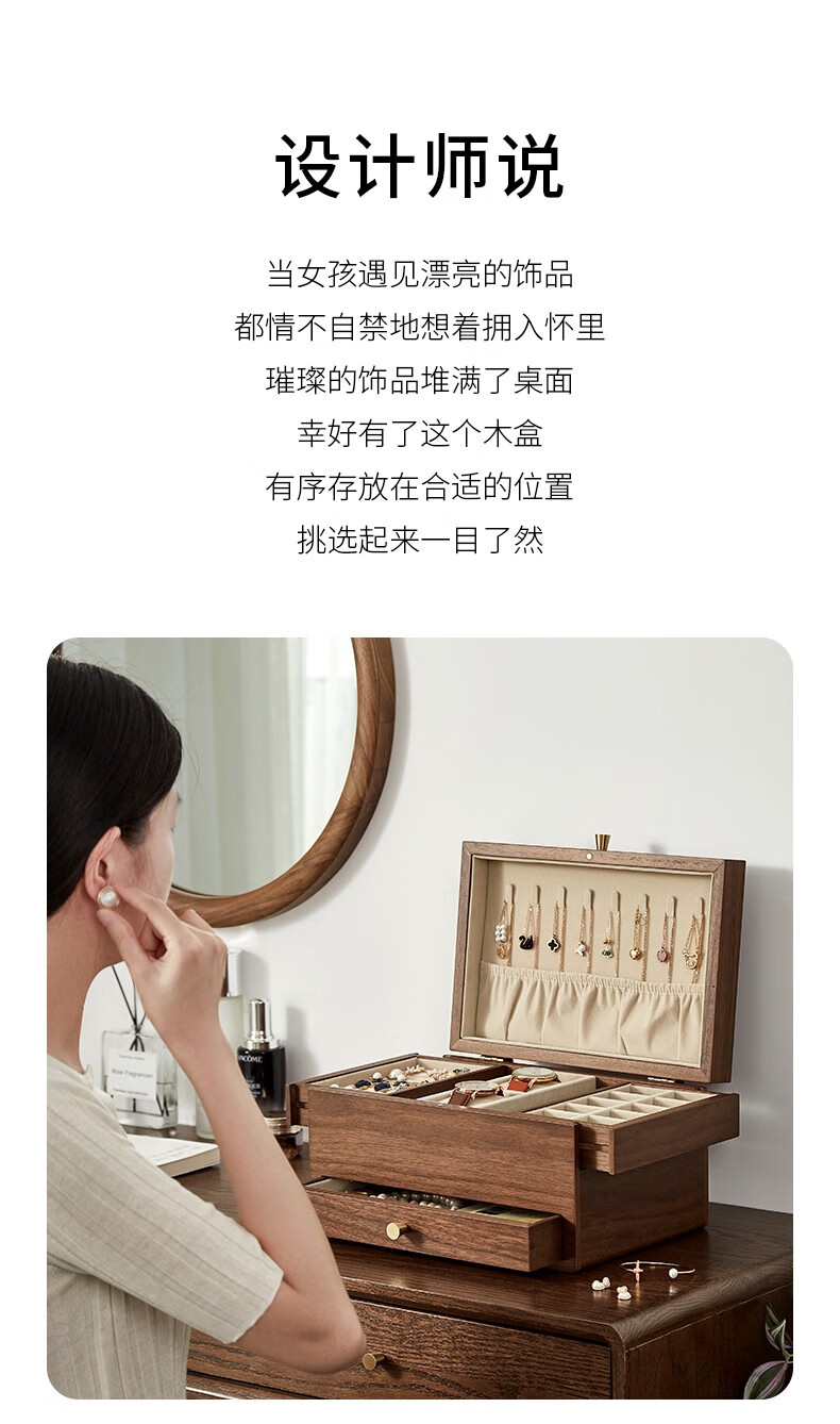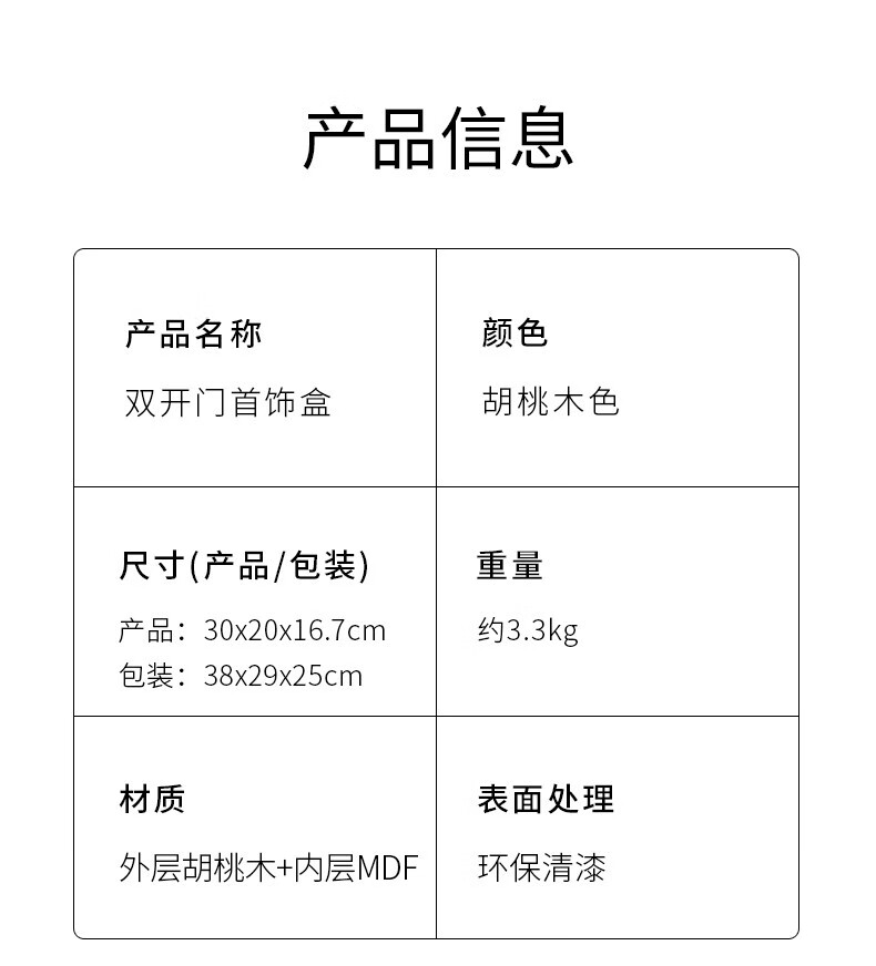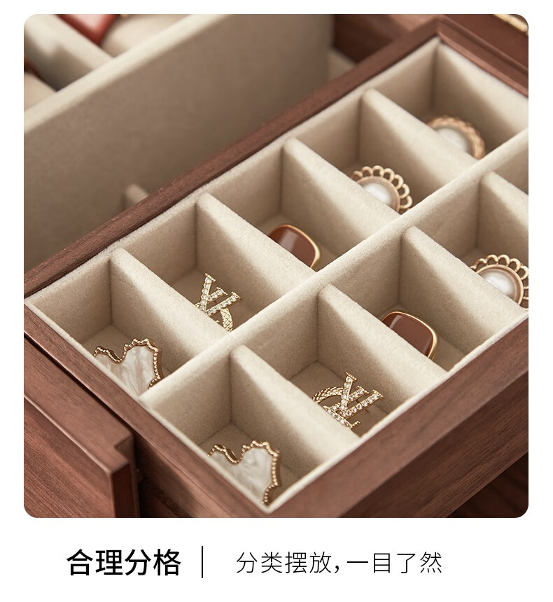 初心胡桃木首饰盒饰品盒生日新婚礼物送女生多层大容量珠宝手镯收纳盒 双开门大容量首饰盒(带镜子)