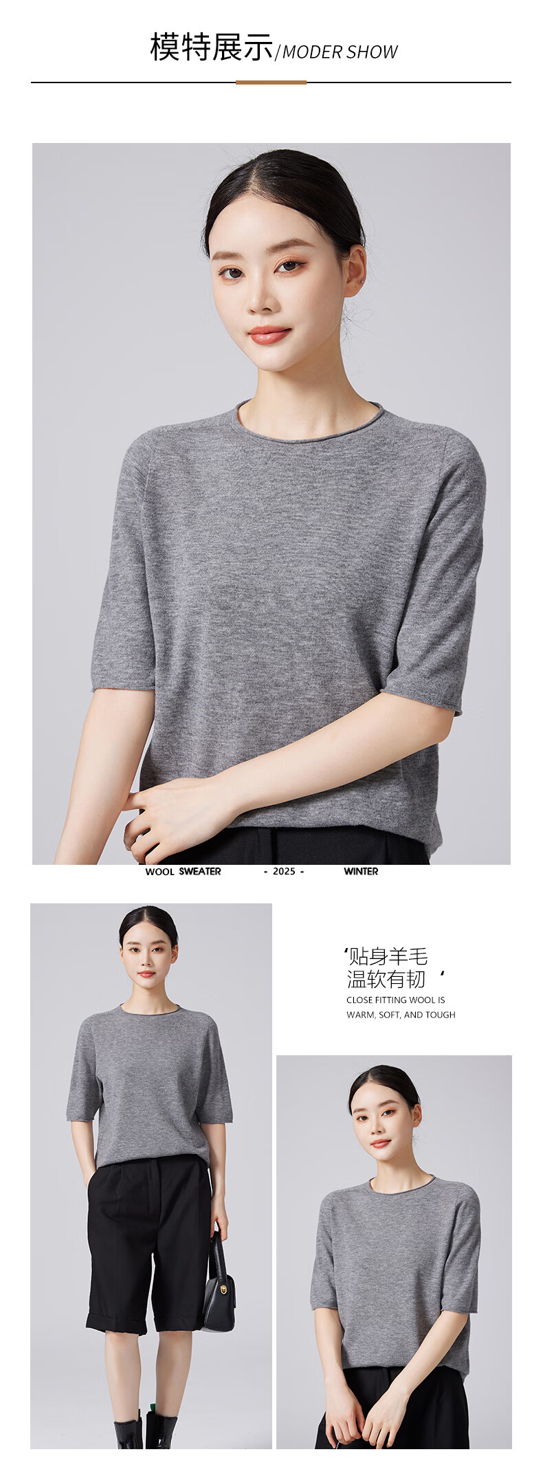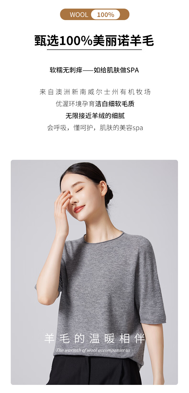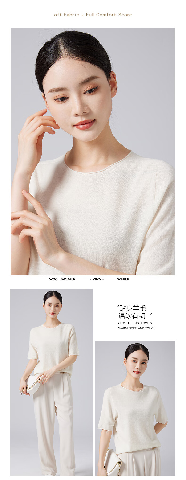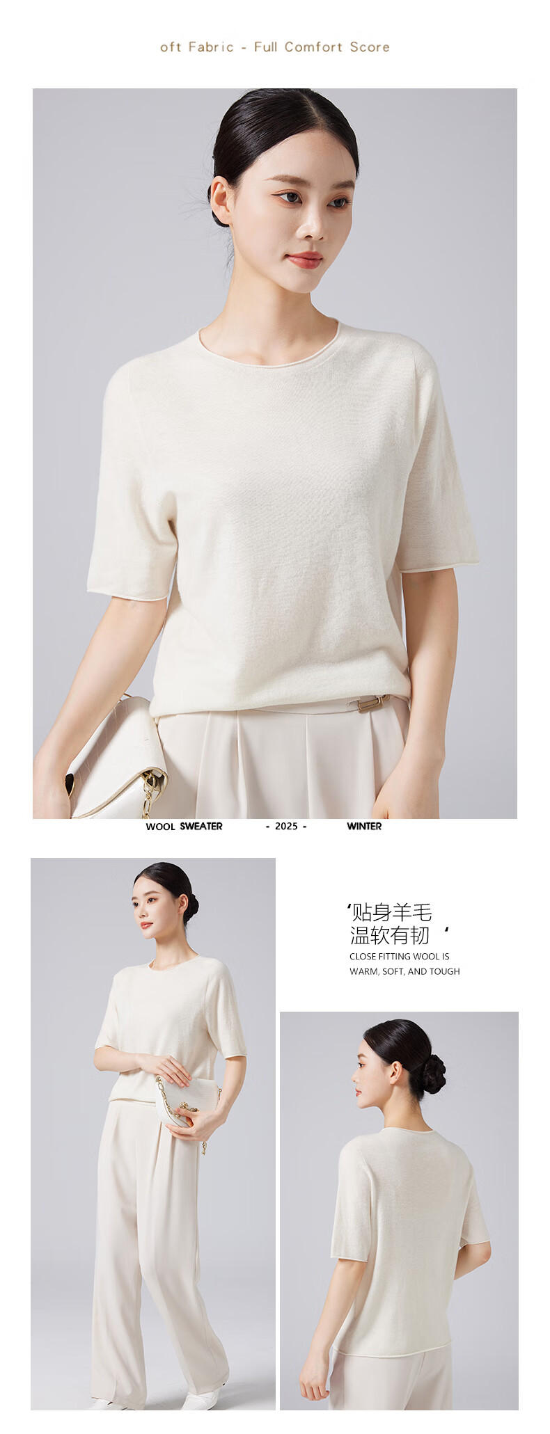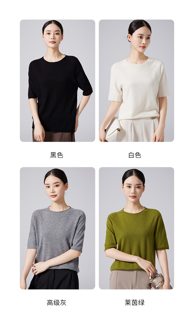 【京东直采】100%羊毛圆领短袖T女针织衫26春新款套头纯色女装 白色 L