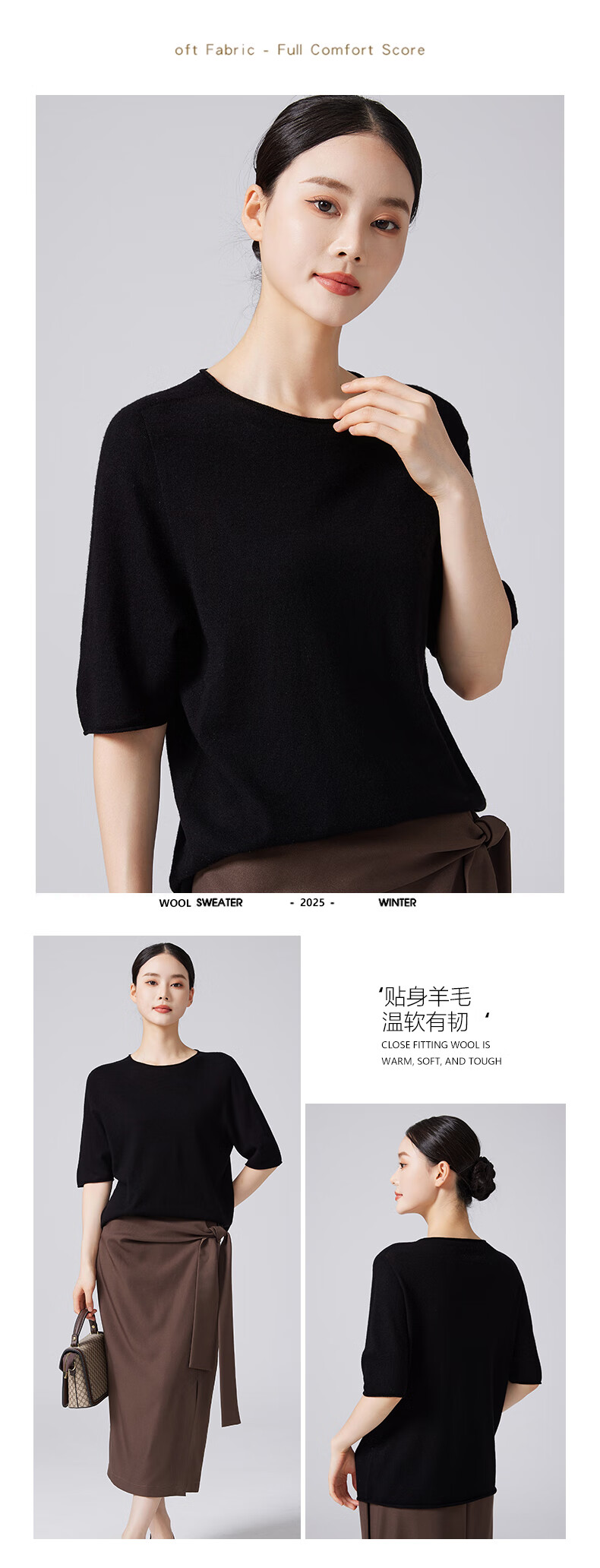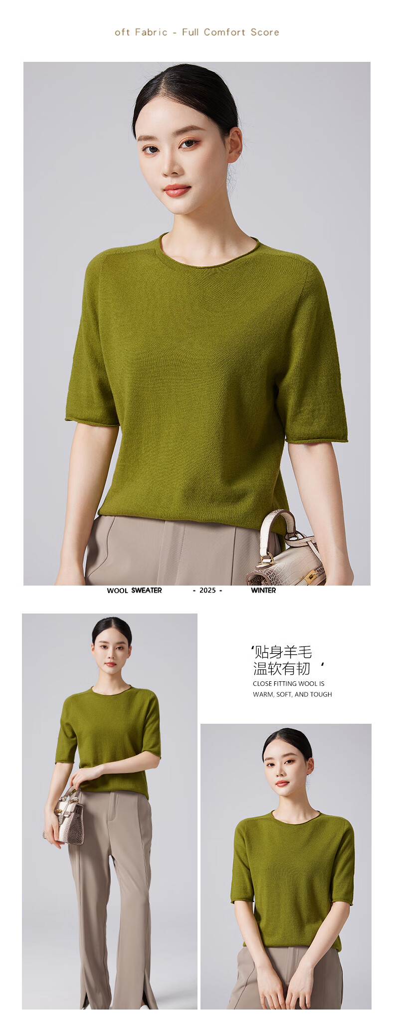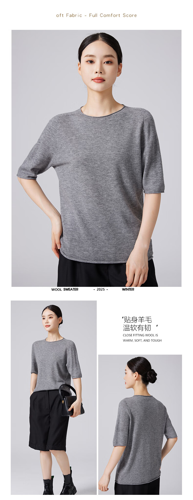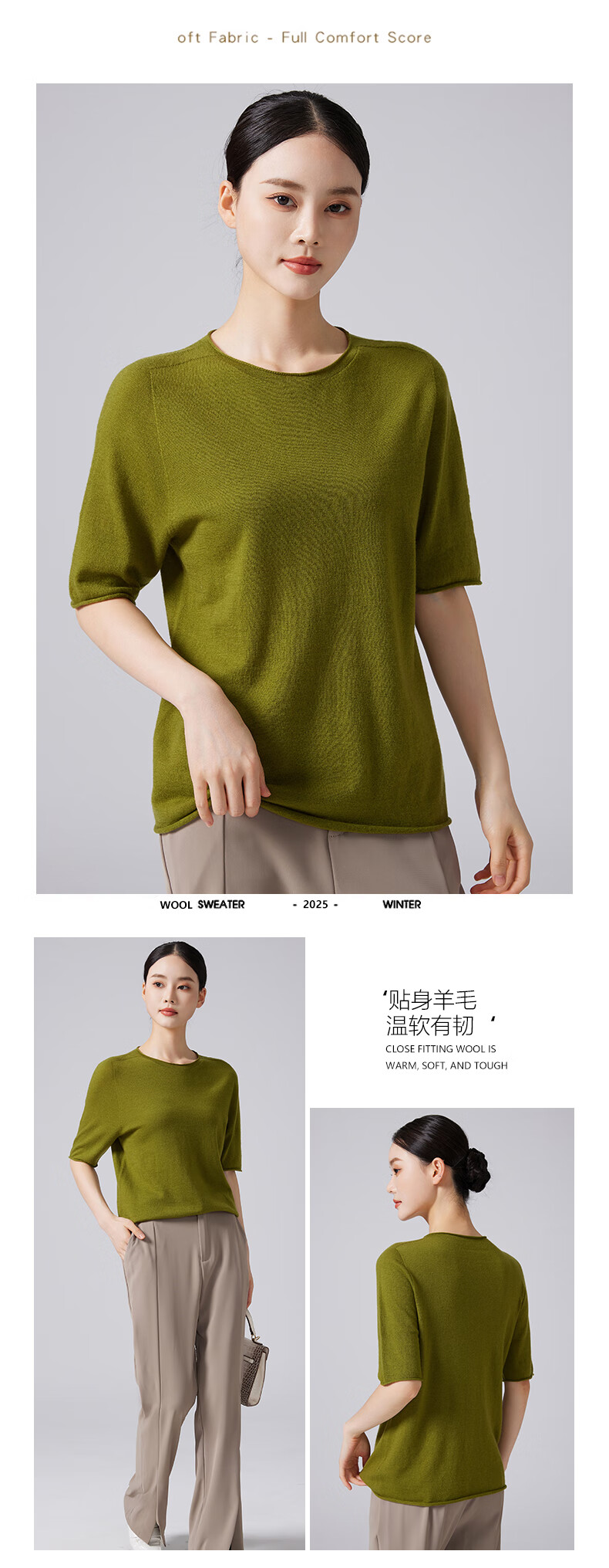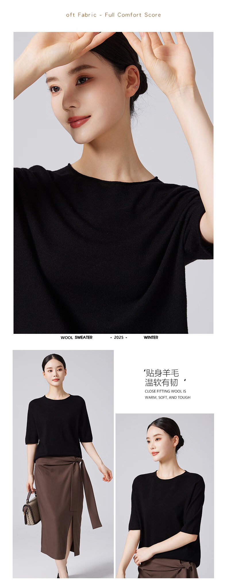 【京东直采】100%羊毛圆领短袖T女针织衫26春新款套头纯色女装 白色 L