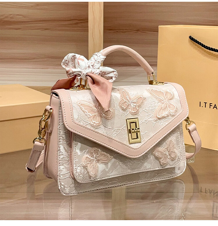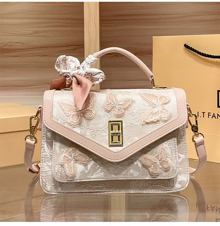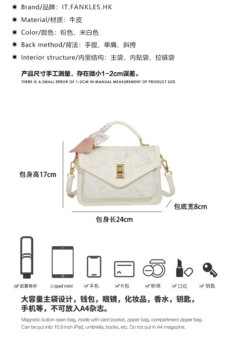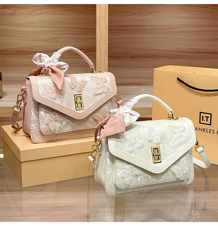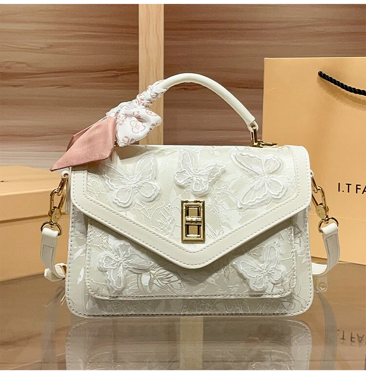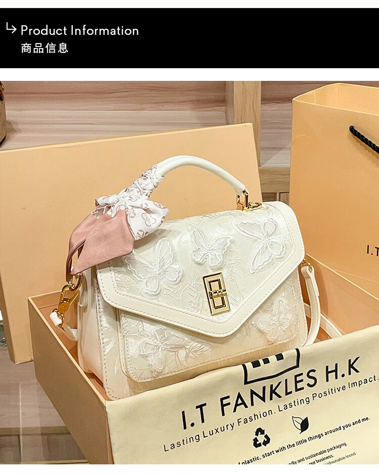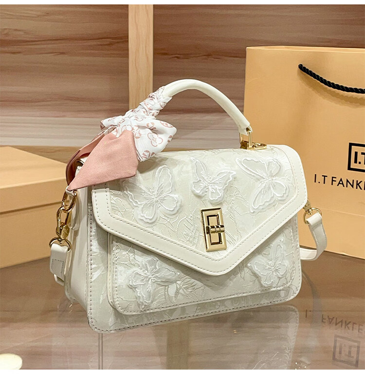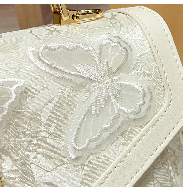 IT MANCLACYK香港代购新中式国风蝴蝶刺绣戴妃包包女2025新款百搭单肩手提包女 蝴蝶白_专柜礼盒套装