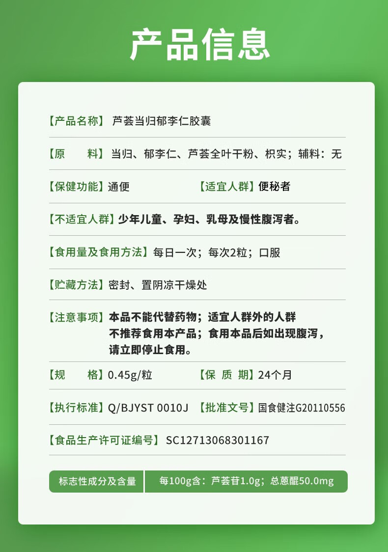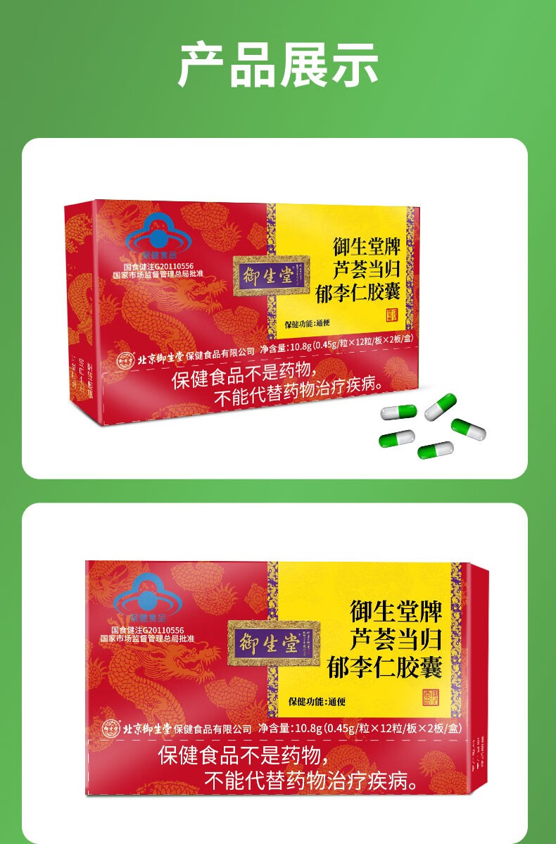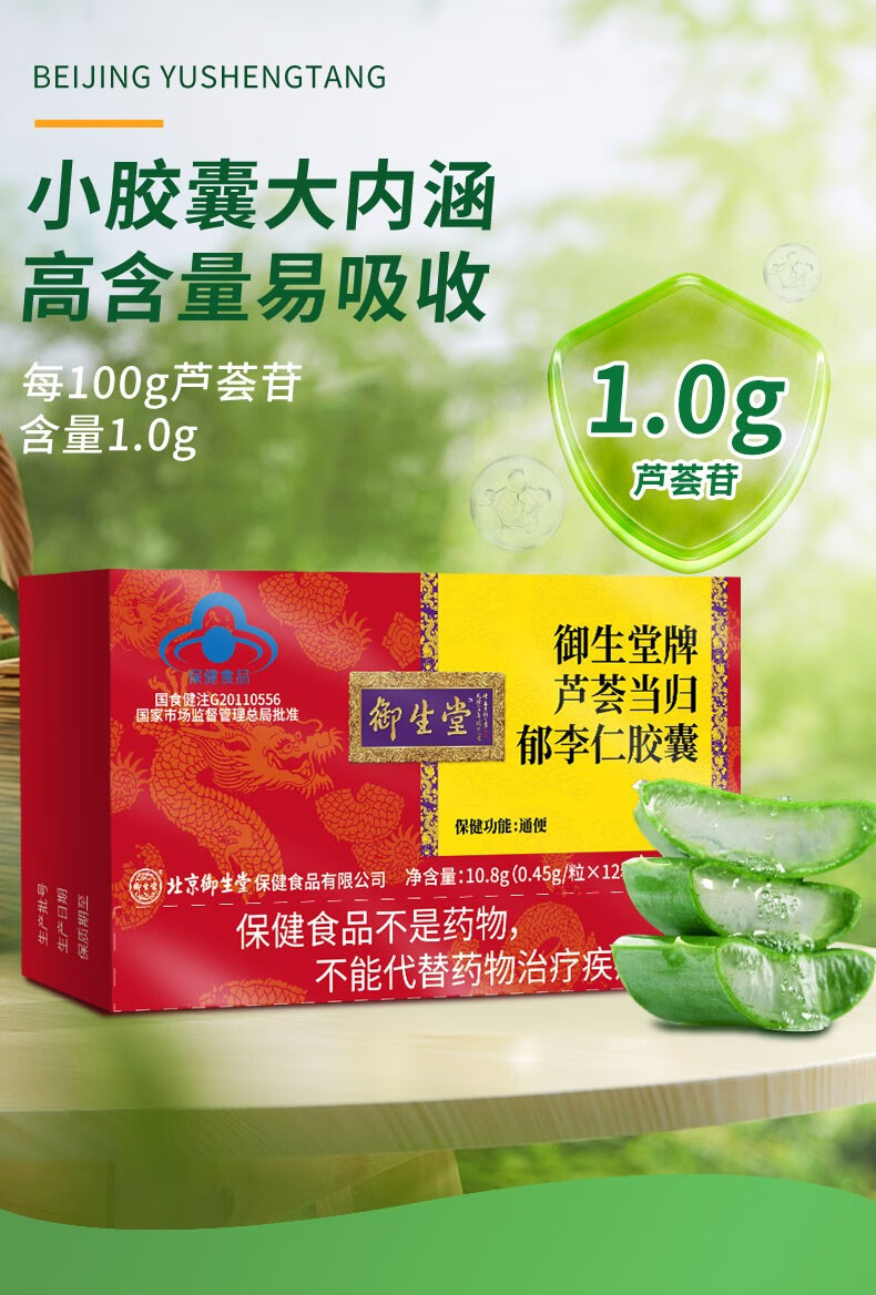 御生堂北京御生堂牌芦荟通便胶囊当归郁李仁便秘者成人中老年 5盒*24粒