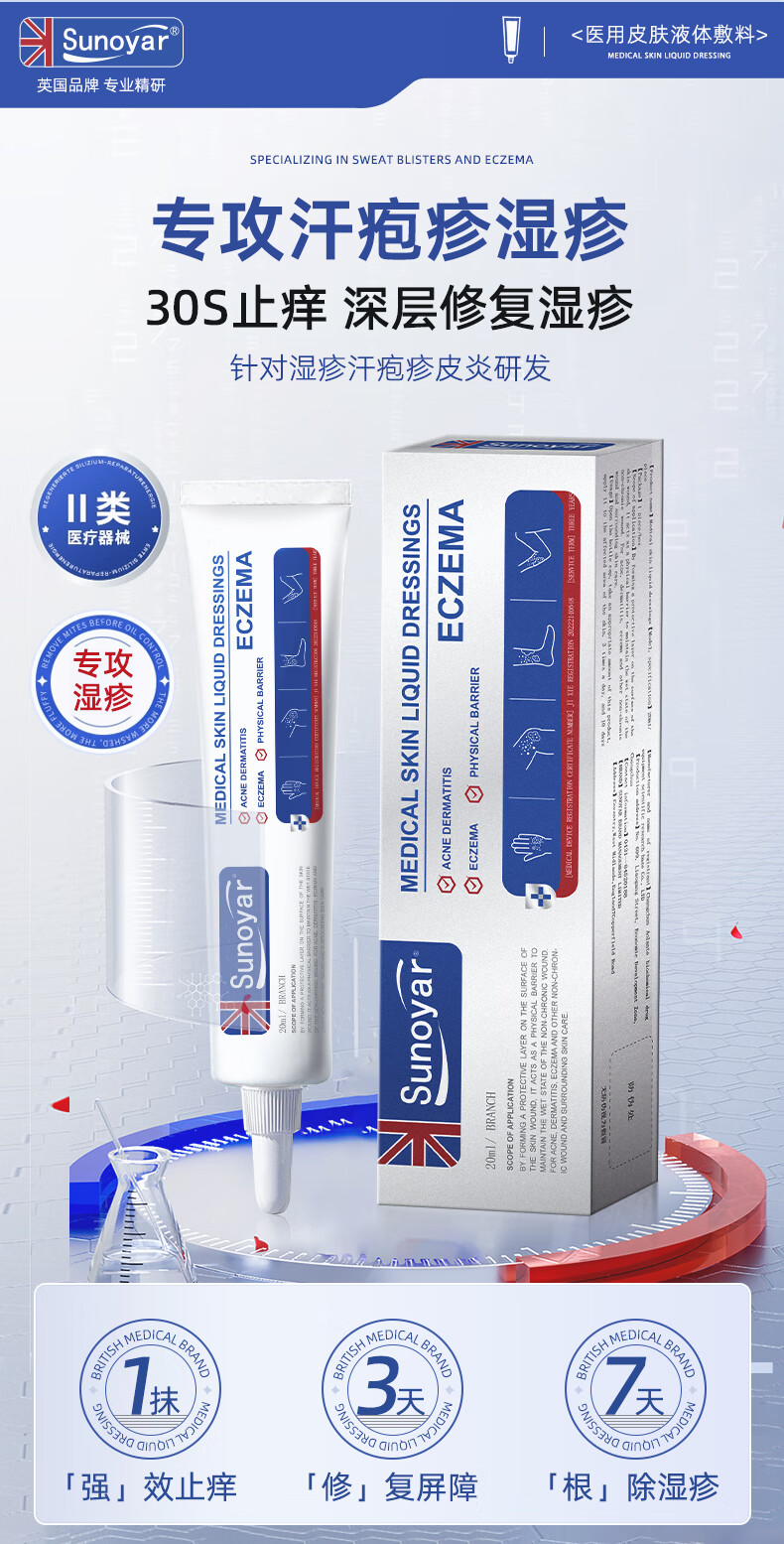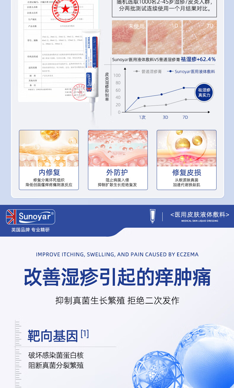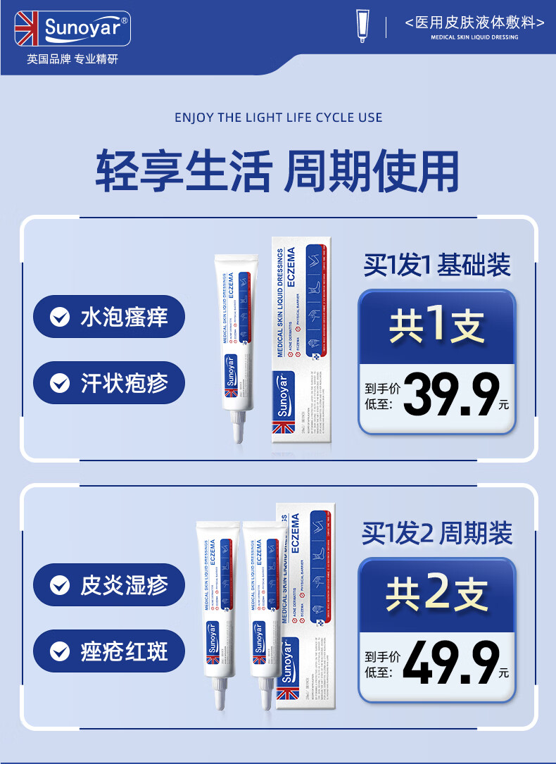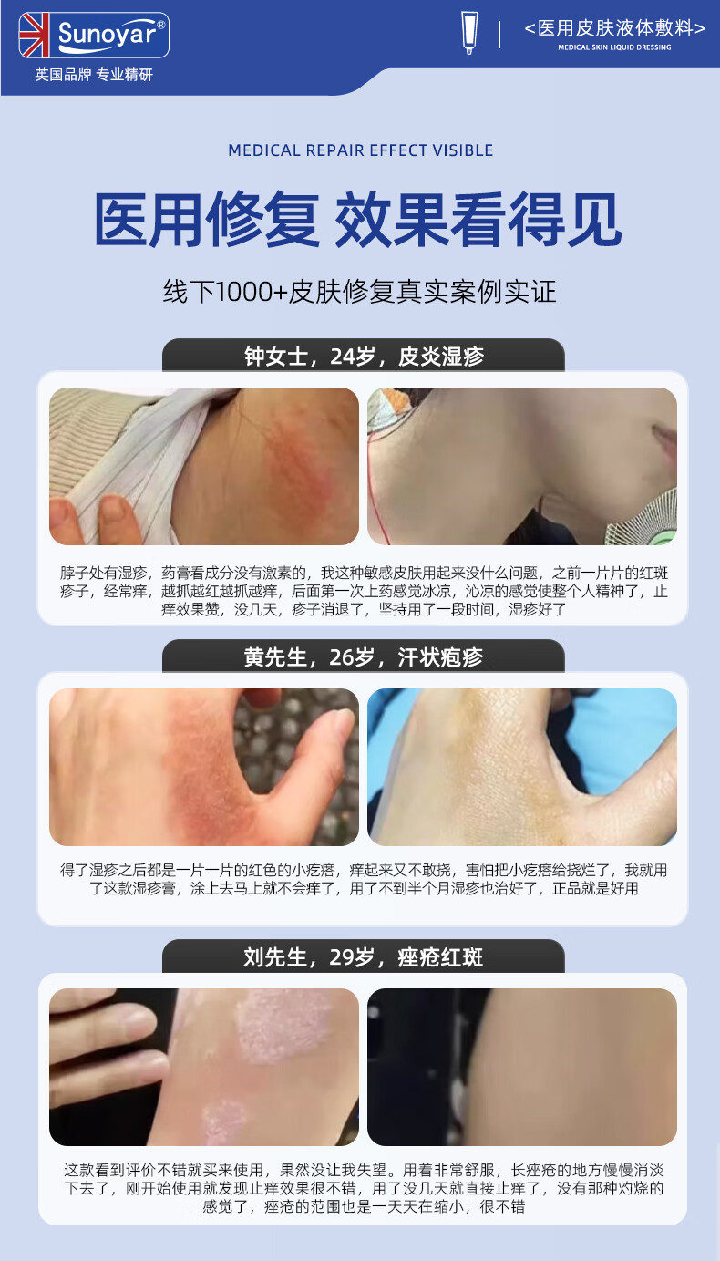 Sunoyar湿疹药膏止痒皮肤瘙痒红斑痤疮真菌感染汗状肛门瘙痒阴囊潮湿 10支装【买5送5超划算】重度痤疮红斑适用