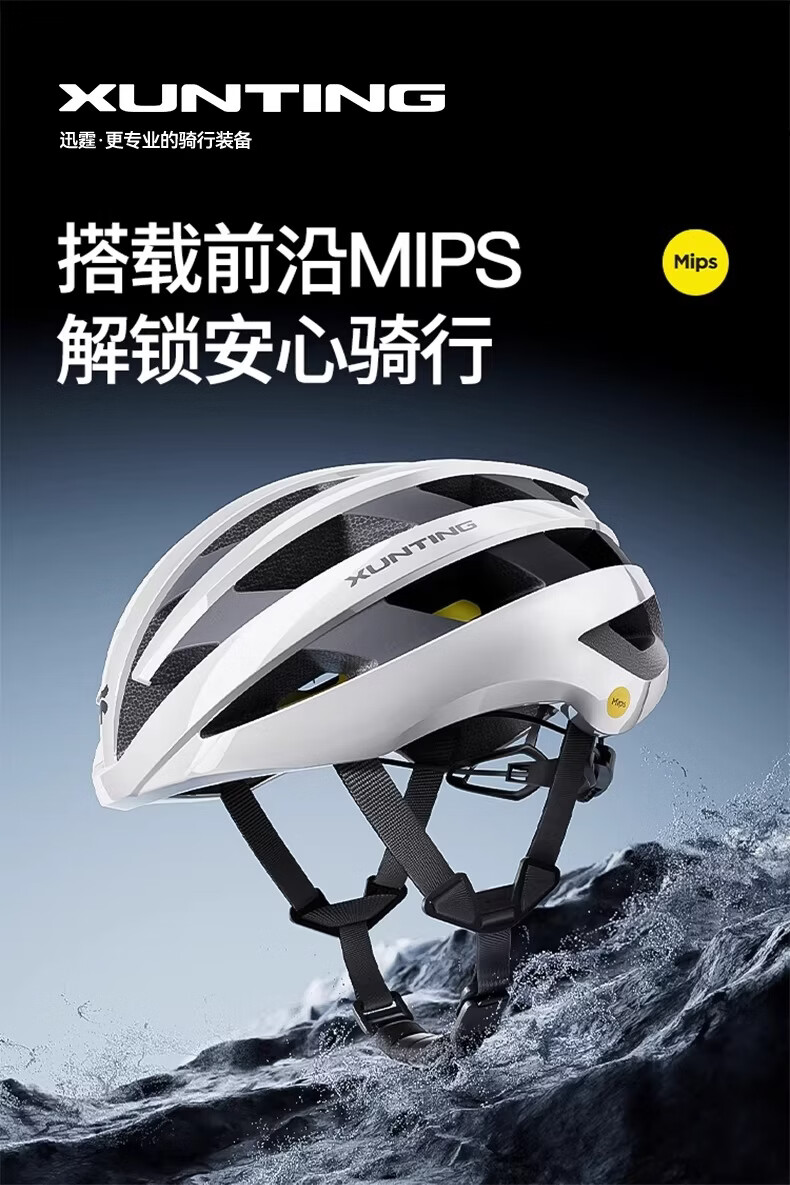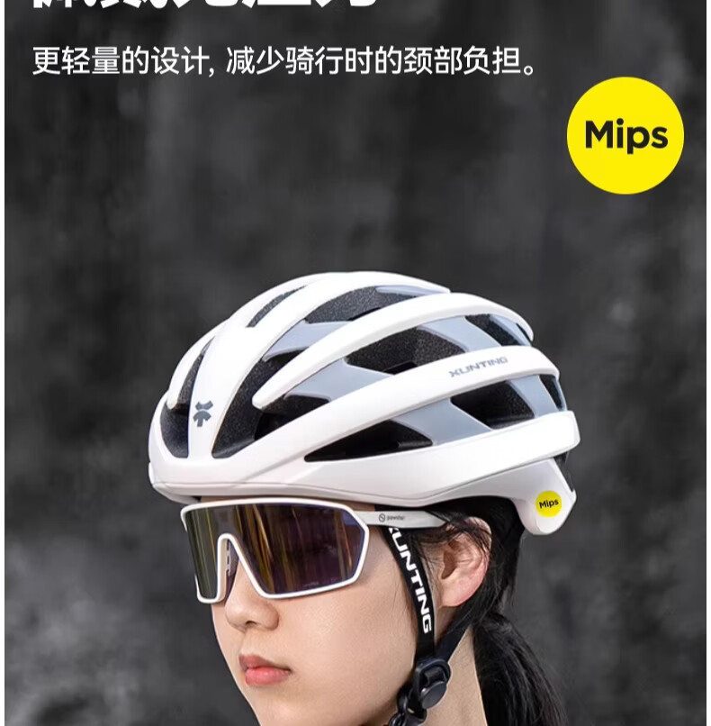 迅霆骑行头盔Mips男女自行车山地公路车安全帽一体夏季轻量单车装备 【瑞典Mips防护】亚洲版冰川白 L【55-59cm】