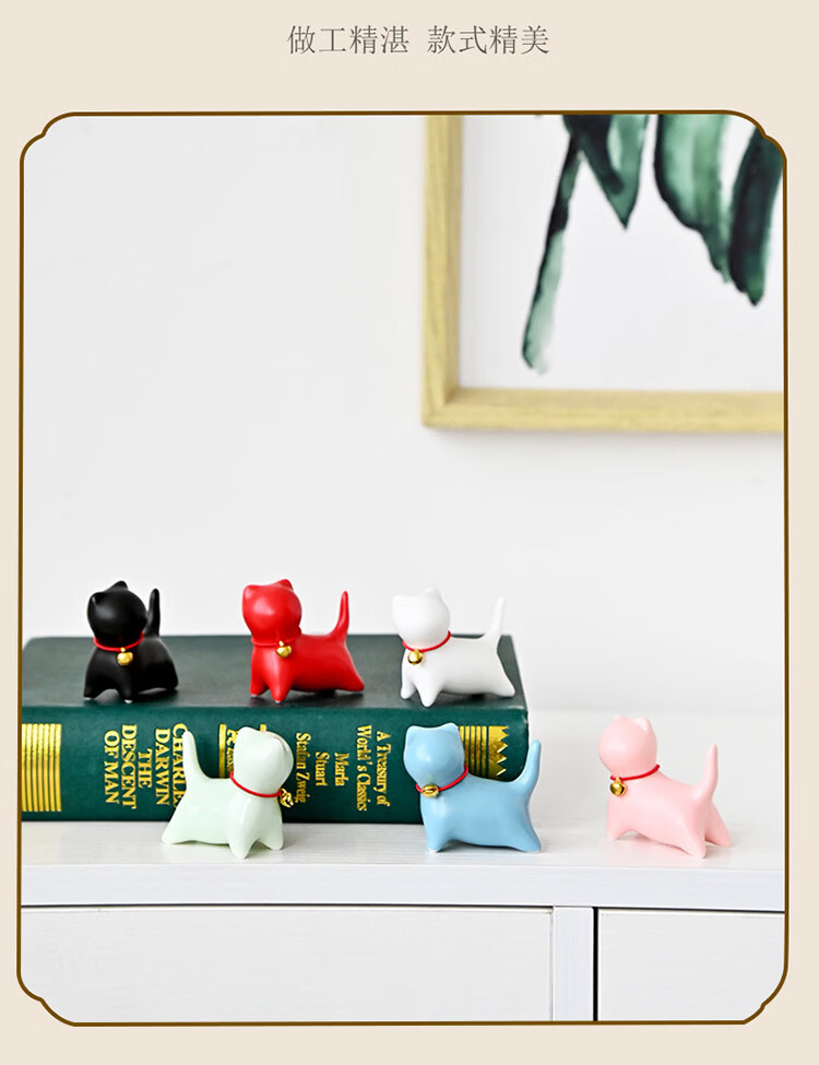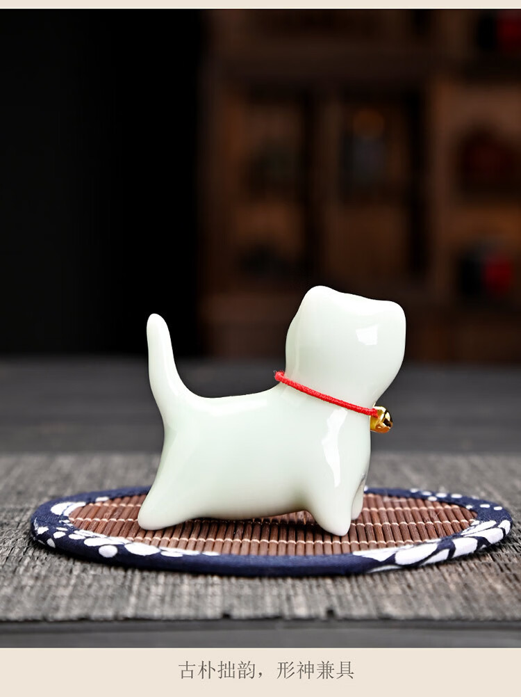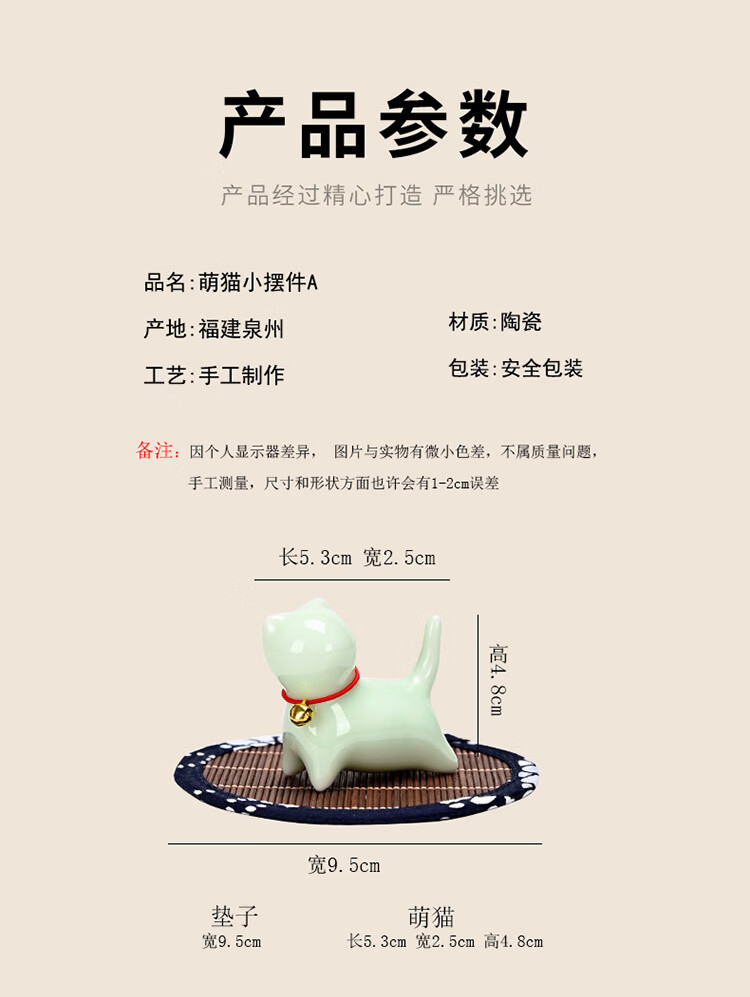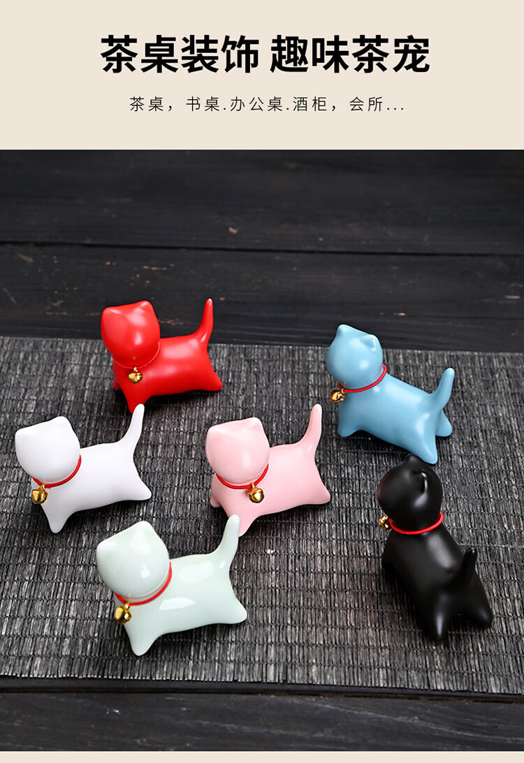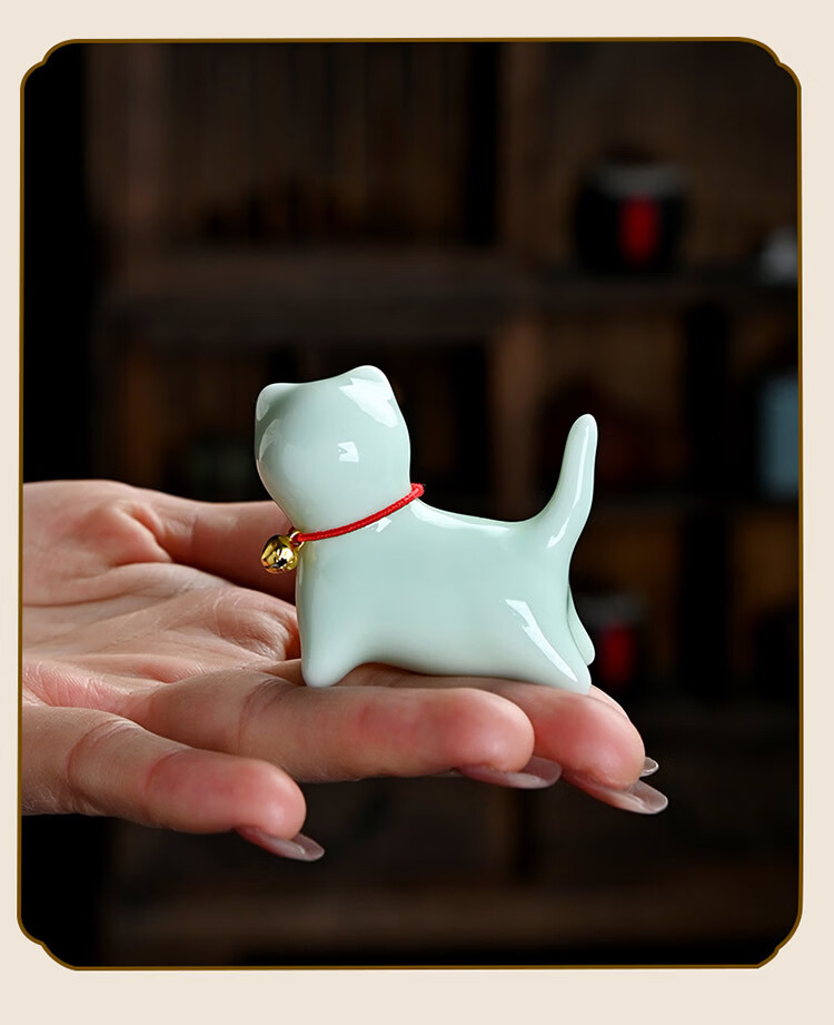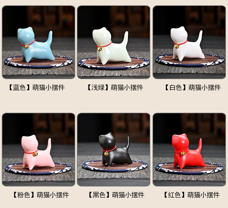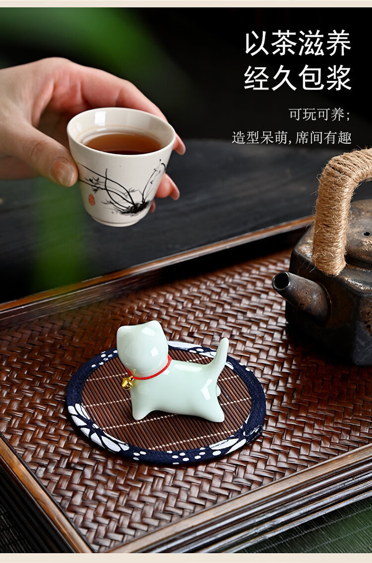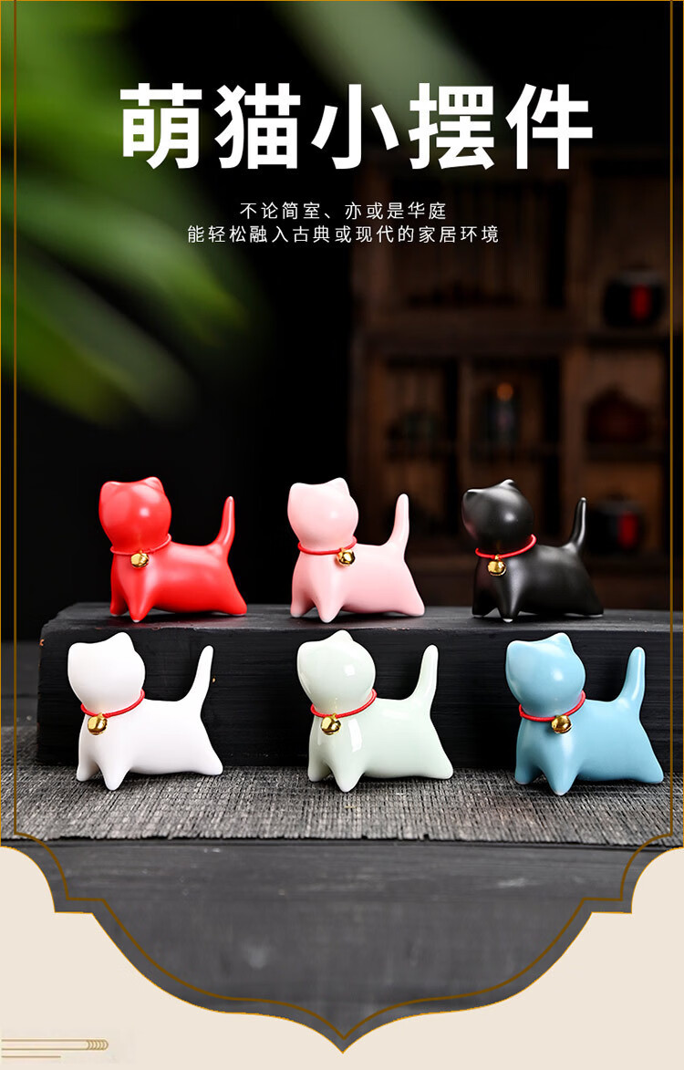 山头林村陶瓷可爱小猫咪摆件动物微景观茶宠室内桌面装饰茶具配件茶玩批发 萌猫摆件青色