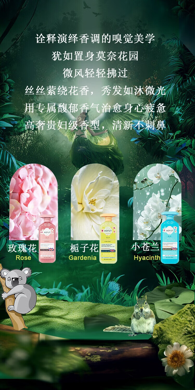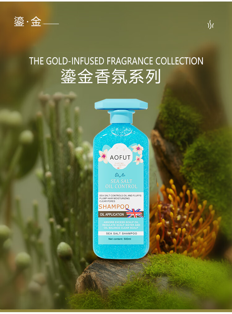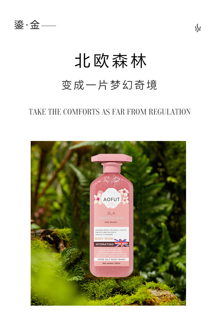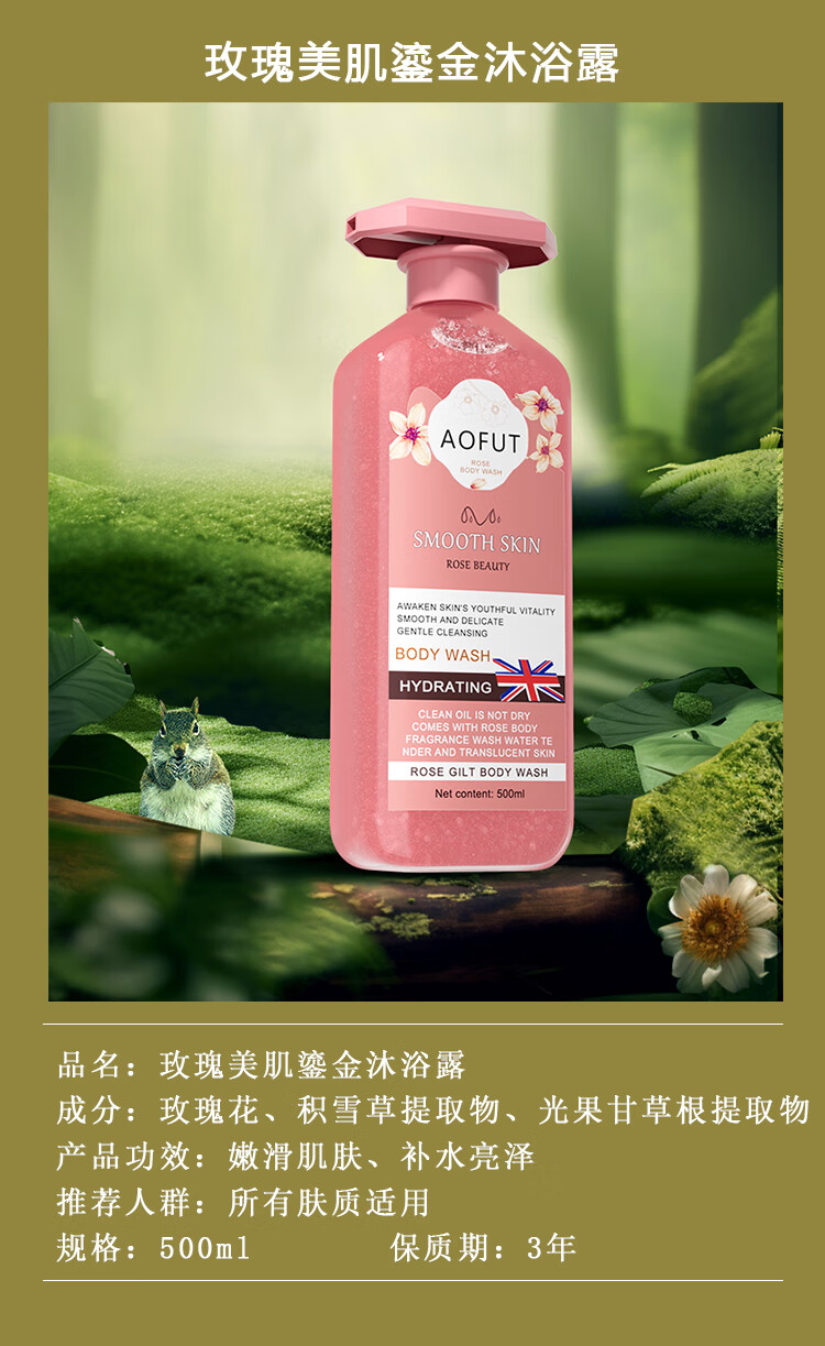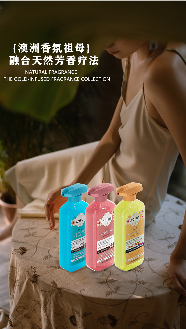 AOFUT澳洲鎏金香氛洗发水海盐控油蓬松无硅油滋润去屑沐浴露洗头膏500g 玫瑰美肌鎏金沐浴露500ml