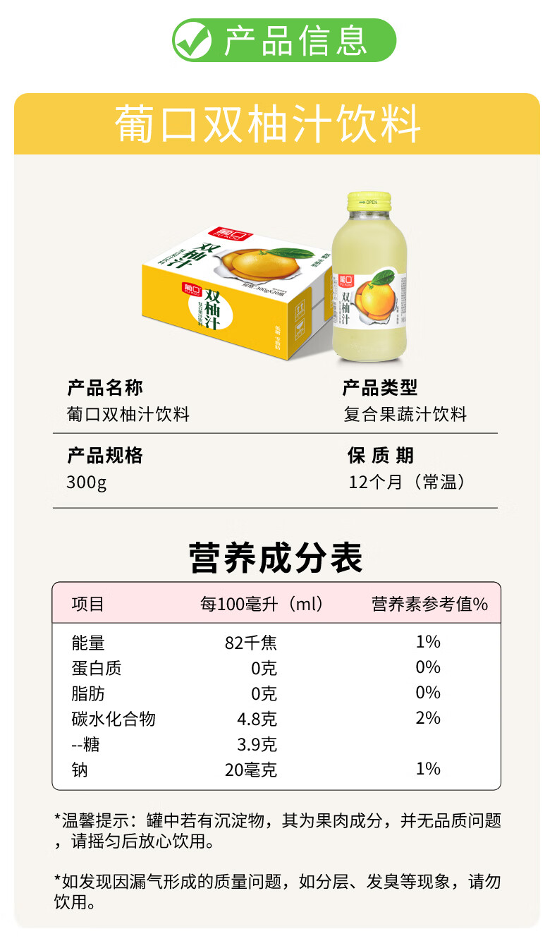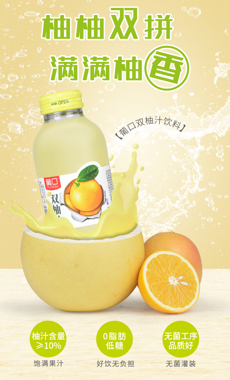 葡口100%果汁含NFC原汁0脂肪解腻饮料 100%沃柑汁238ml*10瓶