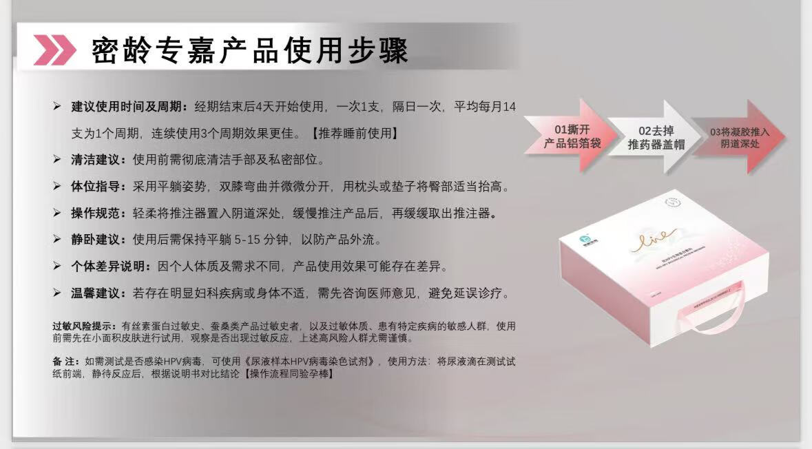 密龄专嘉抗HPV生物蛋白敷料转阴瘙痒异味黏膜修复漏尿私密抗衰 3g/支X14 支/盒