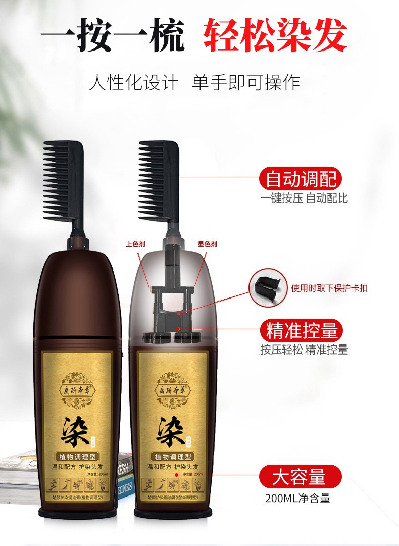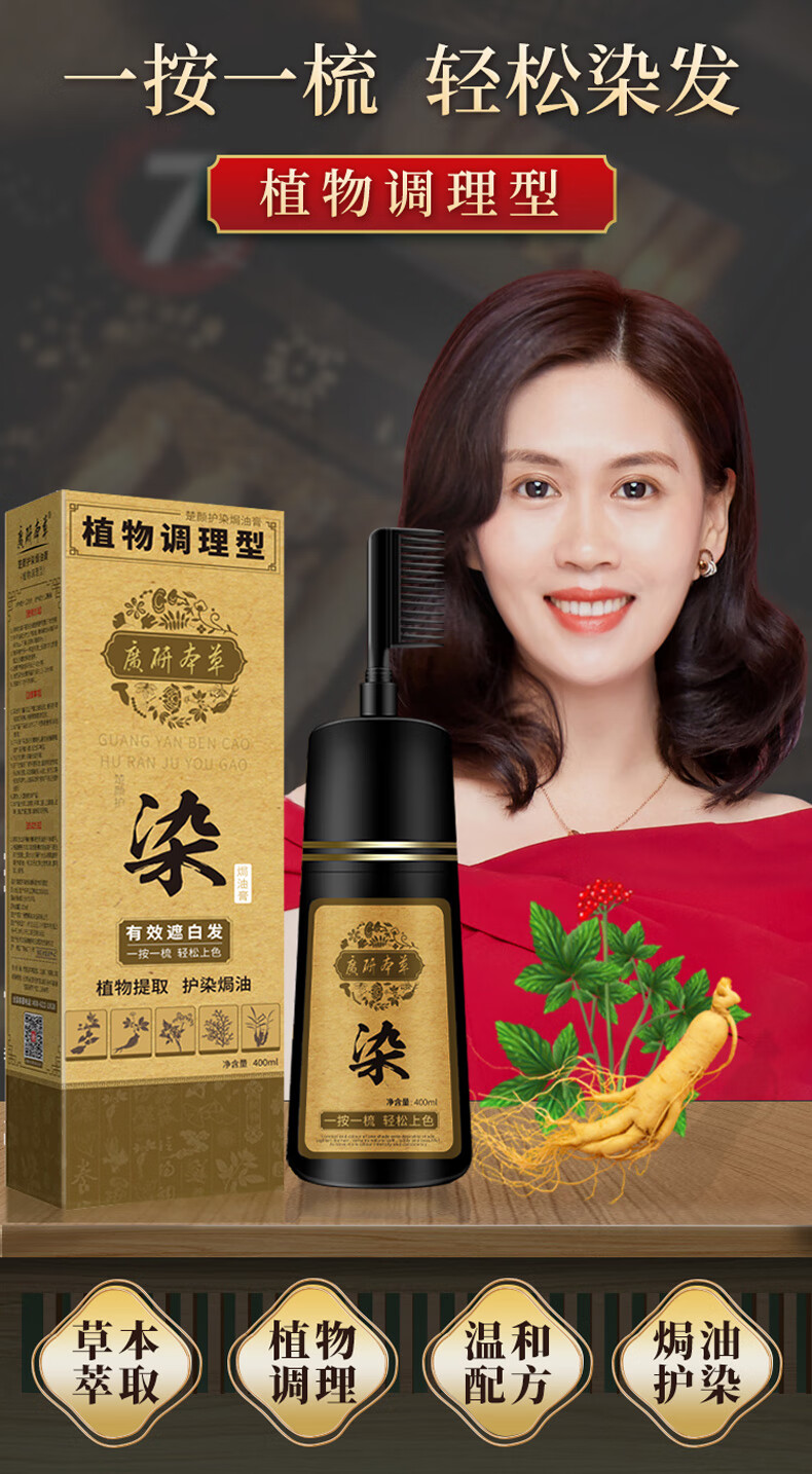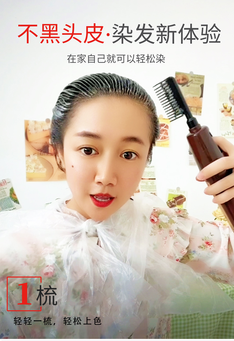 廣研本草染发剂植物可盖白发男女士自己染发膏染发梳一梳黑泡泡染纯自然黑 自然黑2.0(可遮白发)