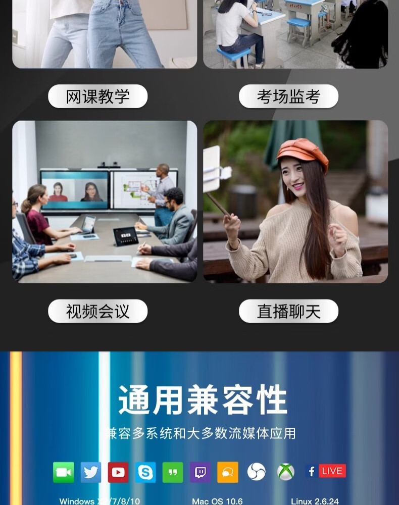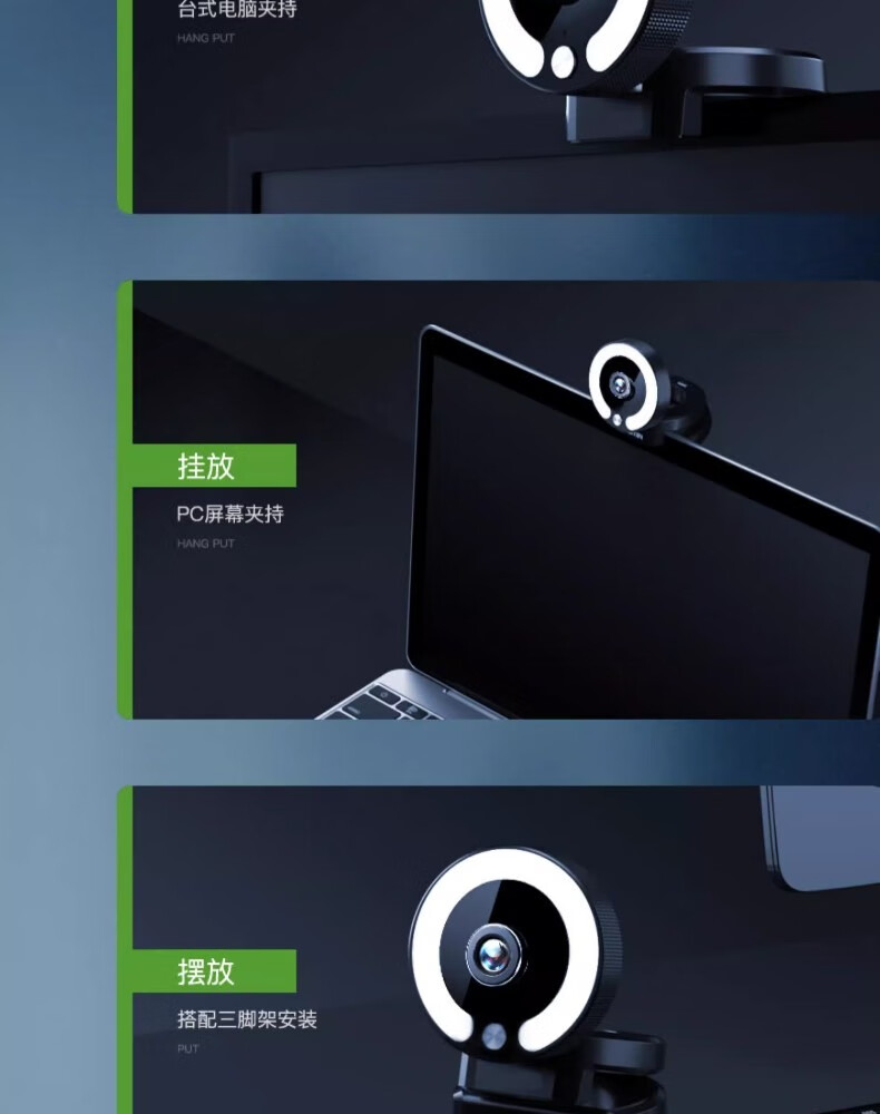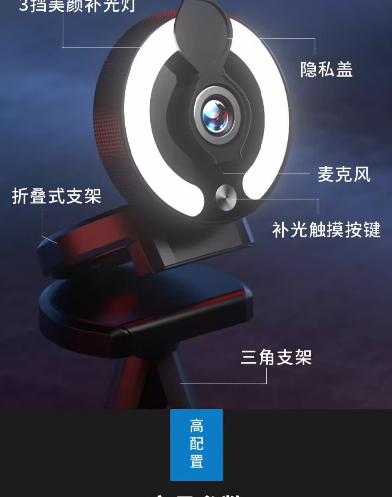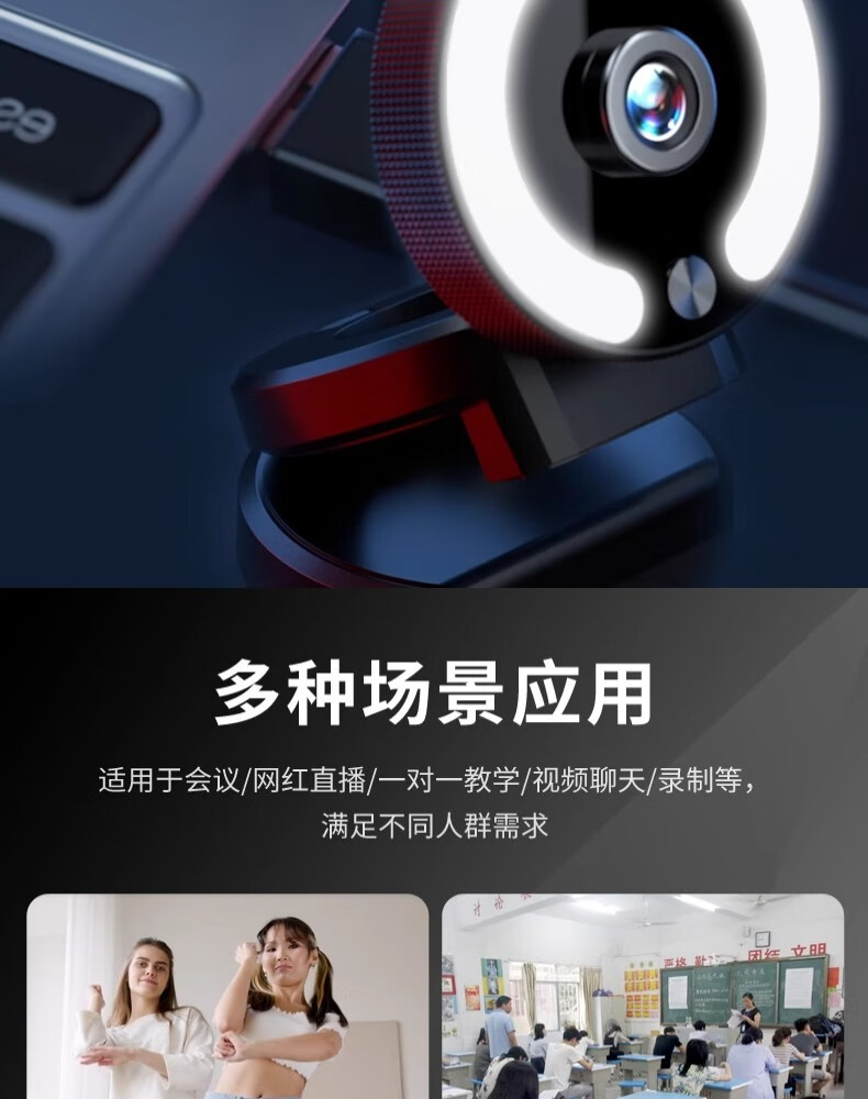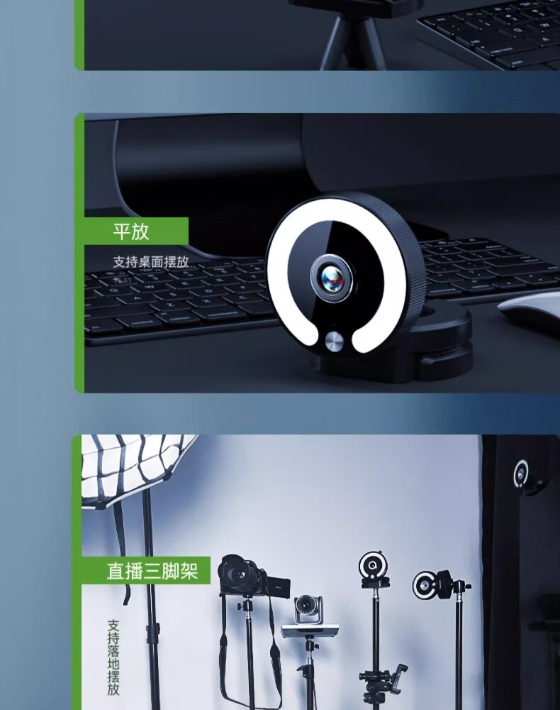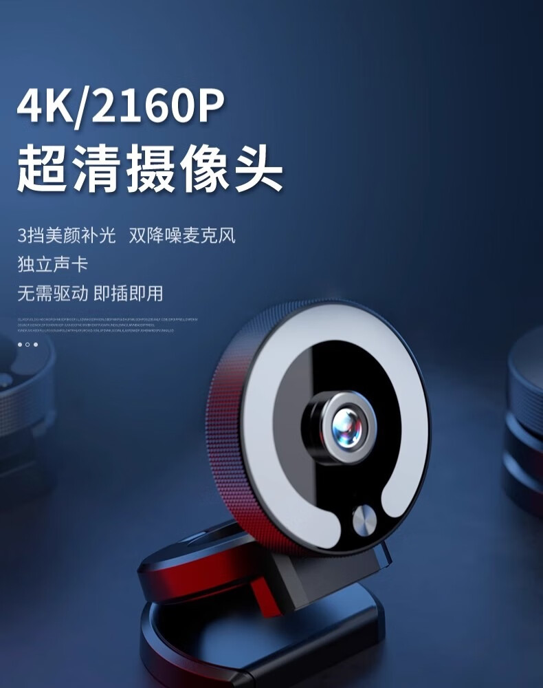 九目4K直播摄像头usb高清电脑摄像头台式笔记本家用网课带麦克风一体 2K 超清画质+原装支架