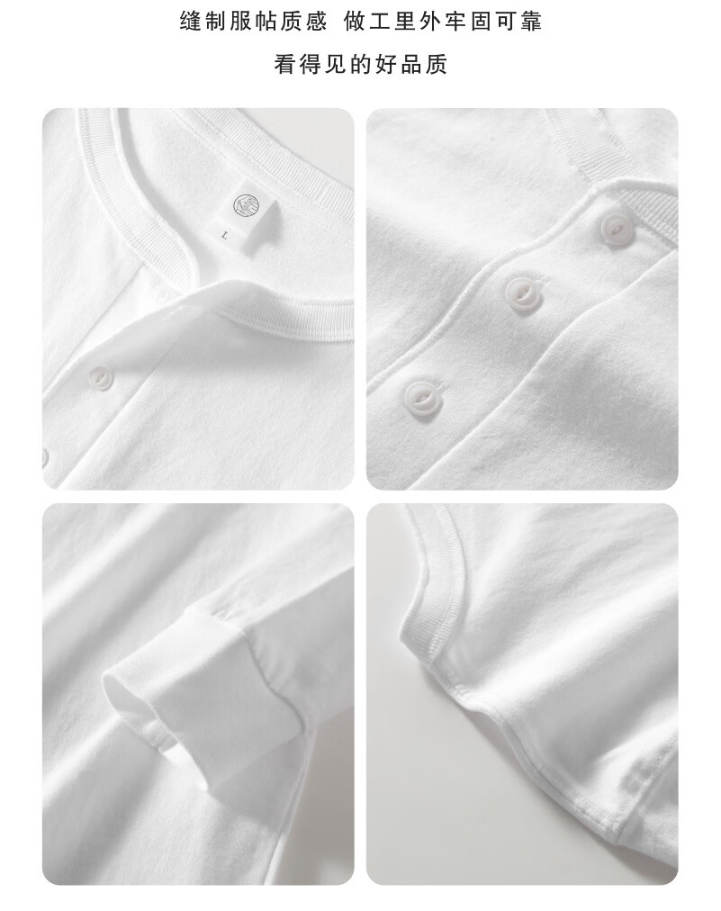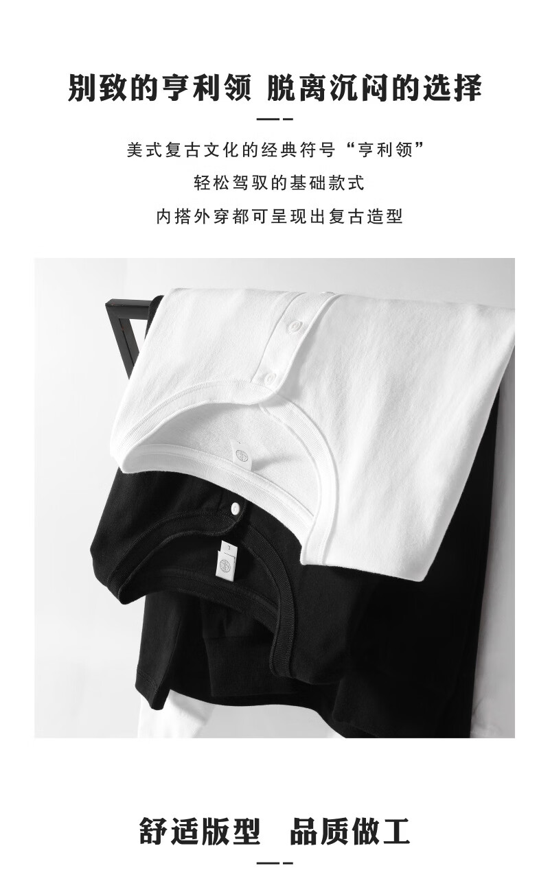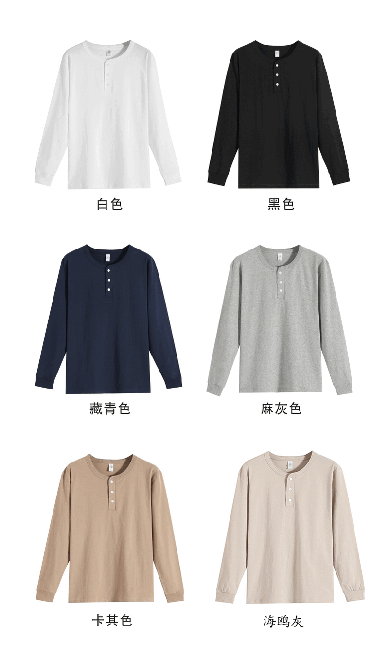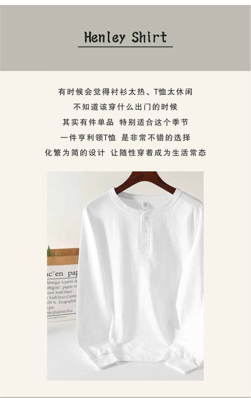 提领新疆棉 250g美式重磅亨利领 长袖t恤男秋冬厚实宽松白色亨利衫 海鸥灰 4XL 210-240斤