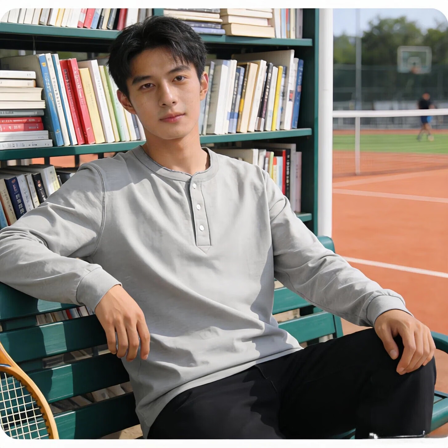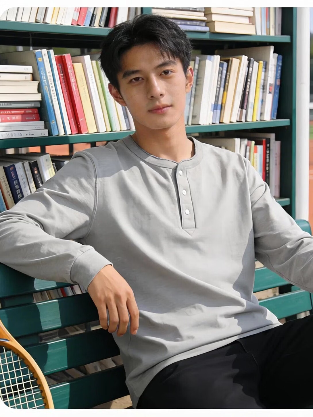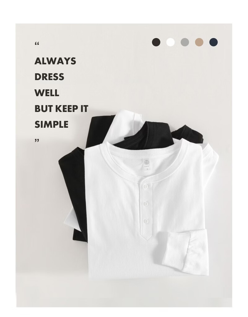 提领新疆棉 250g美式重磅亨利领 长袖t恤男秋冬厚实宽松白色亨利衫 海鸥灰 4XL 210-240斤