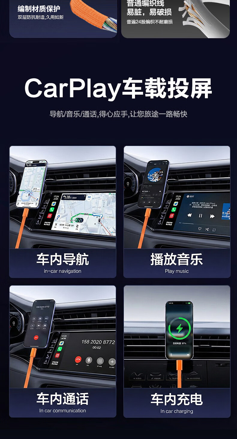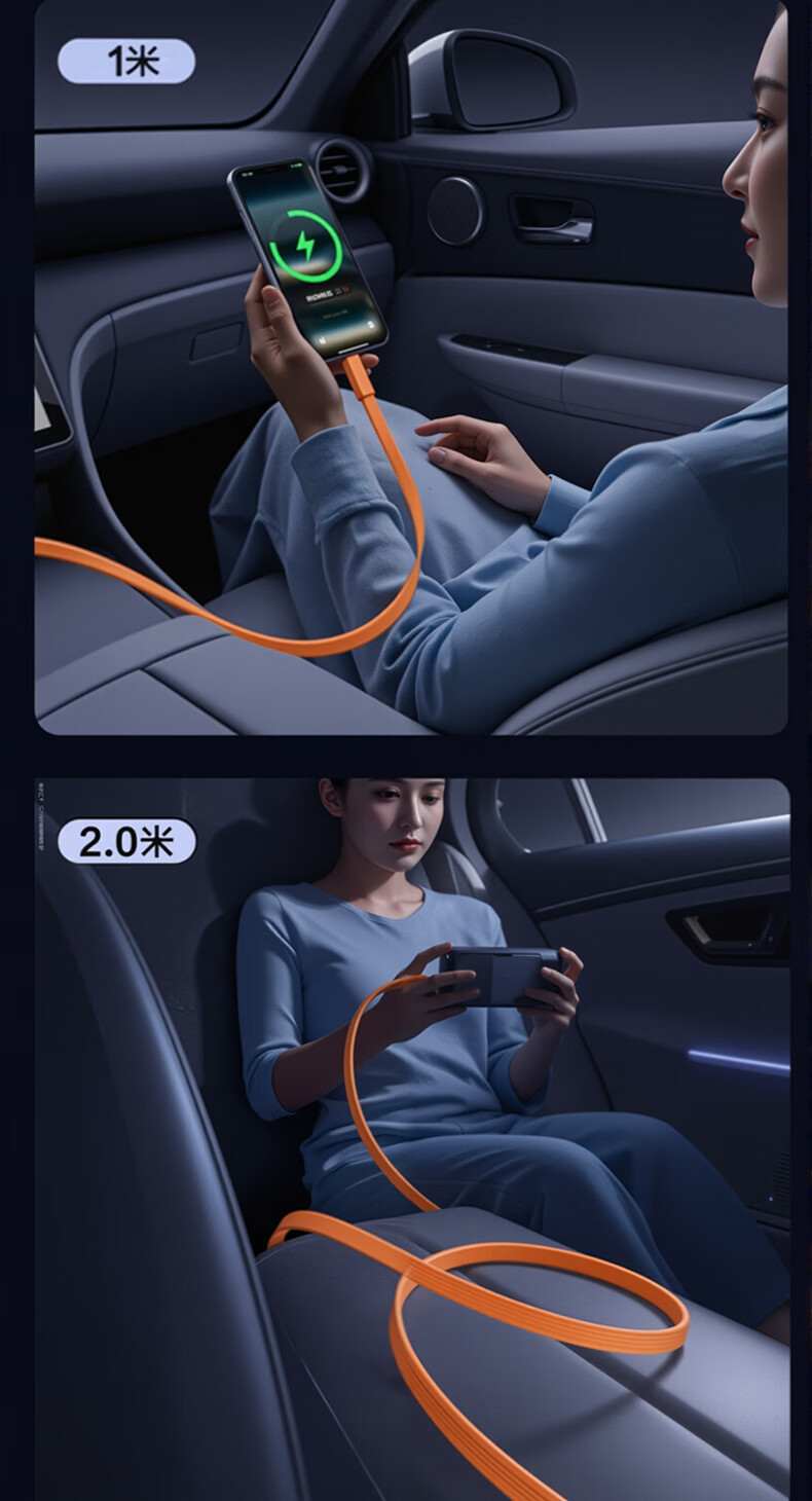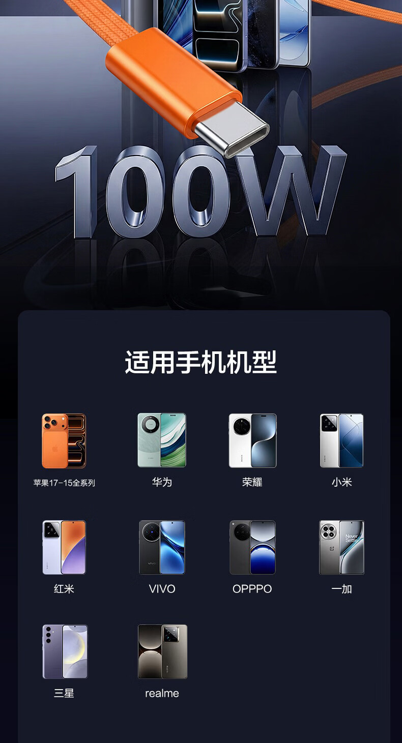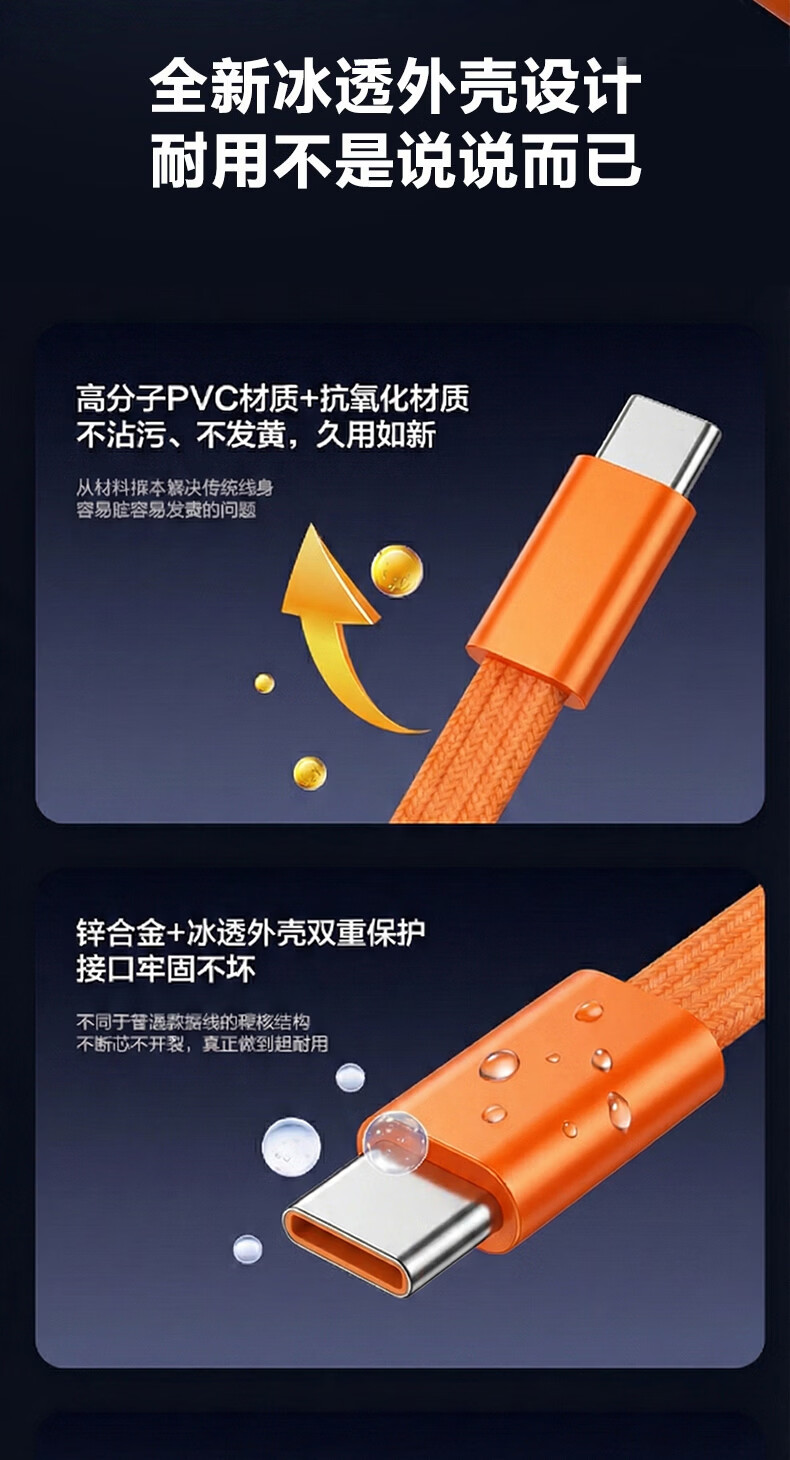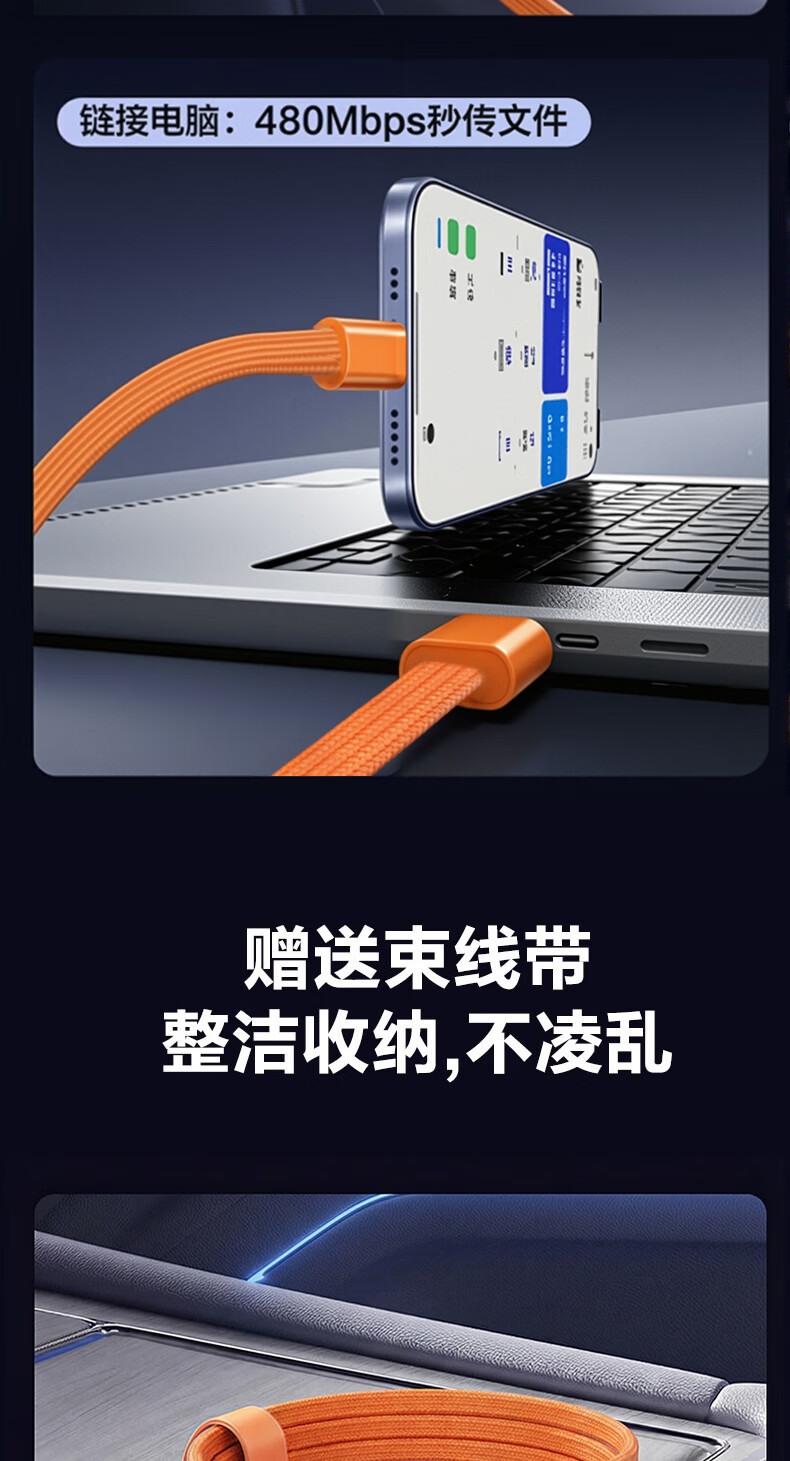 港吉尼(KONGJINI)双头Type-C车载超级快充电数据线PD100W用平板iPad苹果17/16华为手机笔记本专用【赠手机支架】 信息说明:一年内质保免费换新 1m