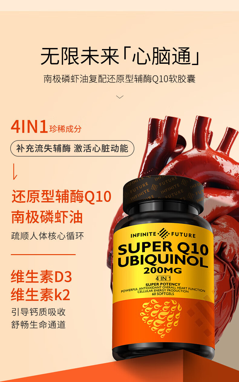 INFINITE FUTURE无限未来还原型辅酶Q10软胶囊60粒 进口中老年人健康心肌礼物礼盒