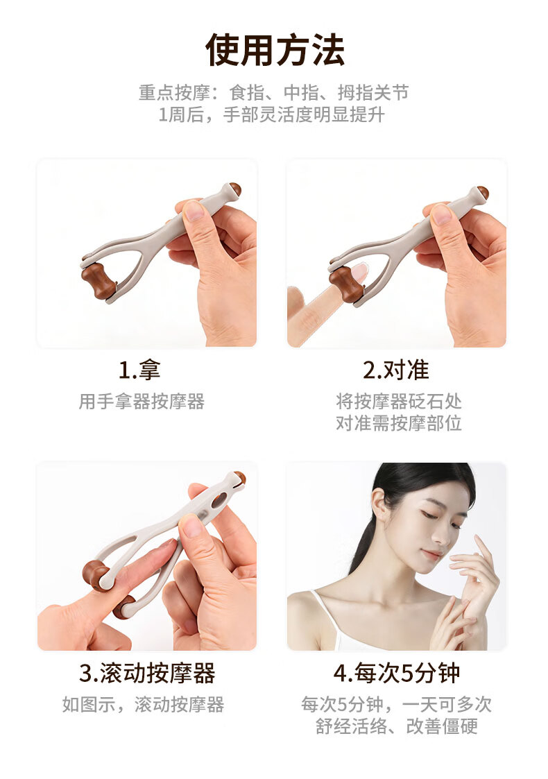 云天开手指按摩器滚轮式经络按摩仪多功能护腕强力放松手指康复训练器 砭石款