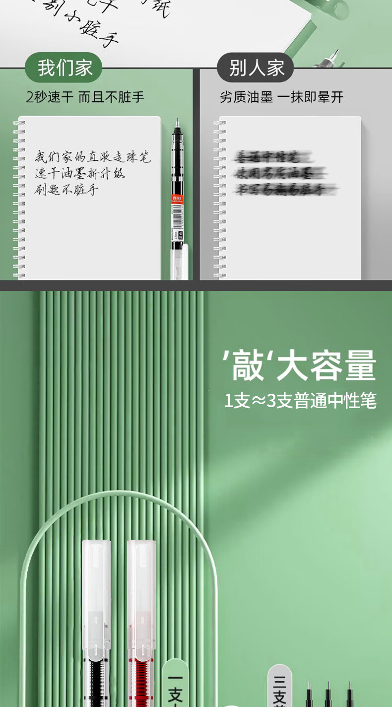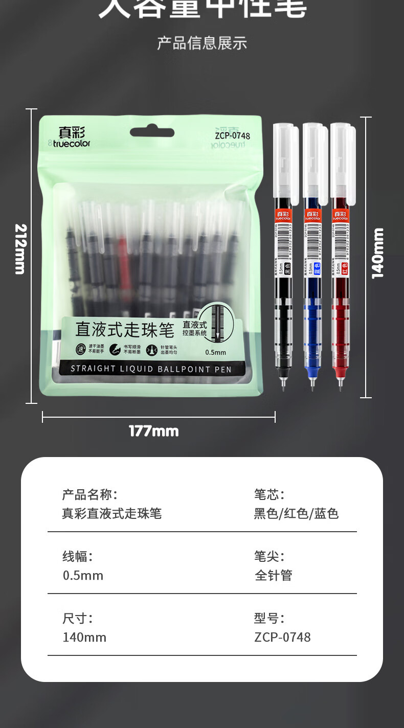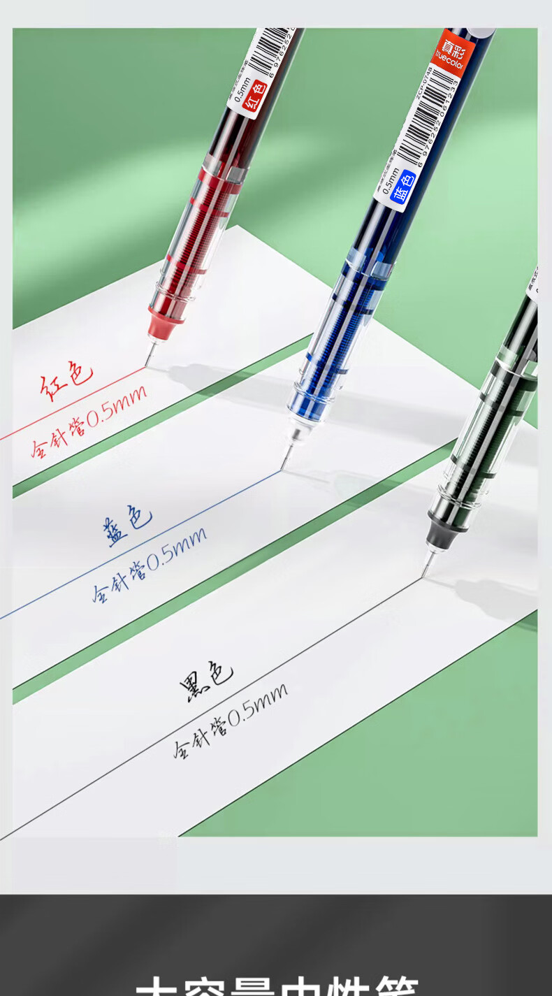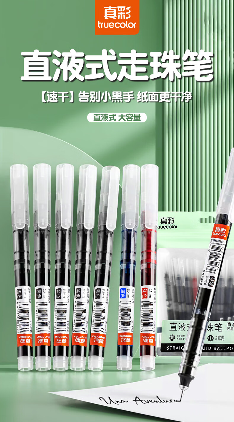 真彩直液式走珠笔速干中性笔黑色笔刷题笔签字笔学生考试老师改作业专用蓝红笔圆珠笔水性大容量巨能写 【速干/大容量】26支-24黑+1红+1蓝 0.5mm